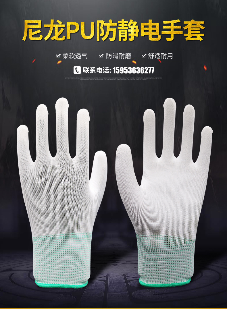 PU 손가락 코팅 손바닥 장갑 정전기 방지 미끄럼 방지 나일론 탄소 섬유 먼지없는 작업 코팅 노동 보호 장갑 도매스토어 가기