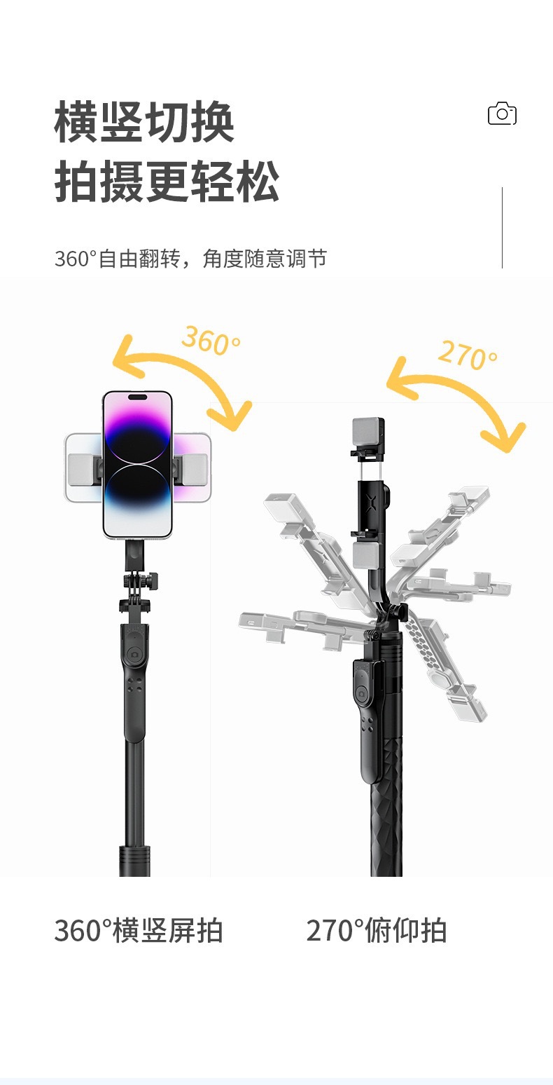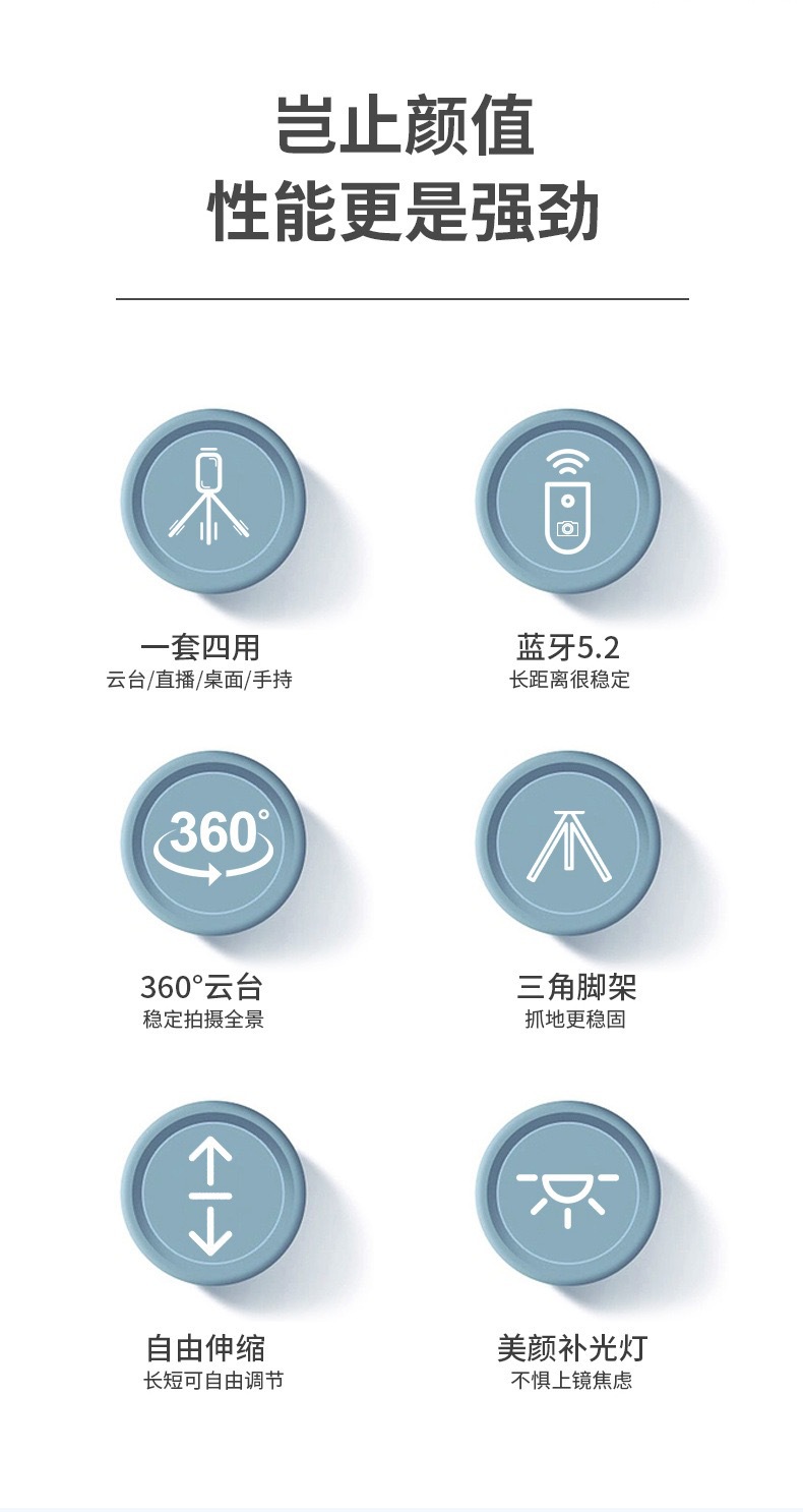 셀카봉, 흔들림 방지, 접이식, 다기능, 블루투스 리모컨, 라이브 방송봉, 삼각대, 휴대폰 거치대, 안정화, 보조광