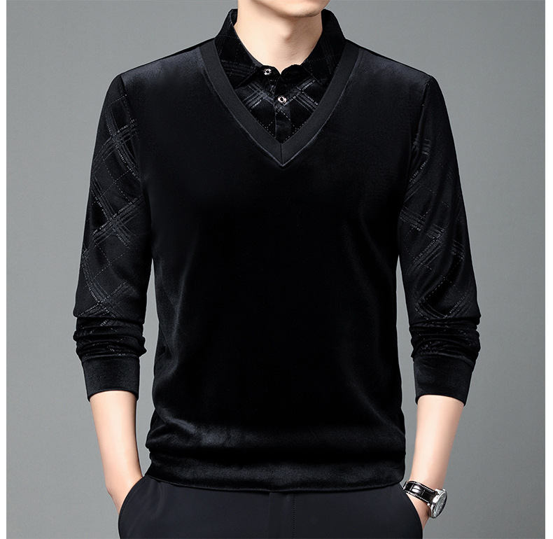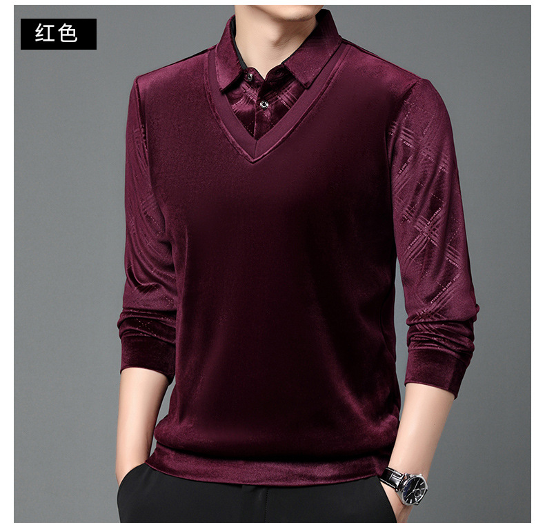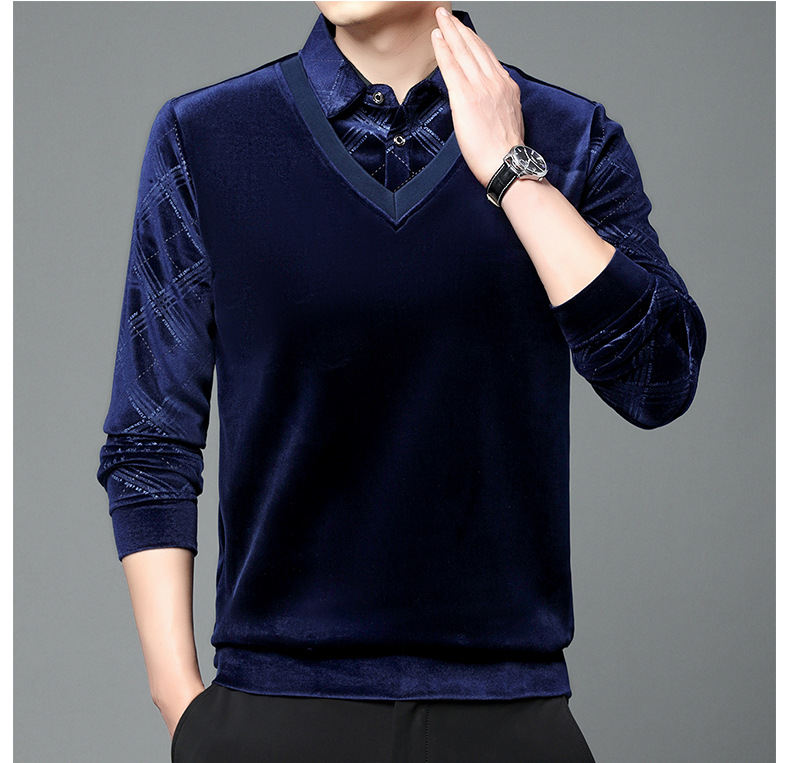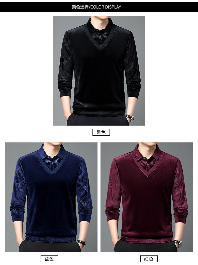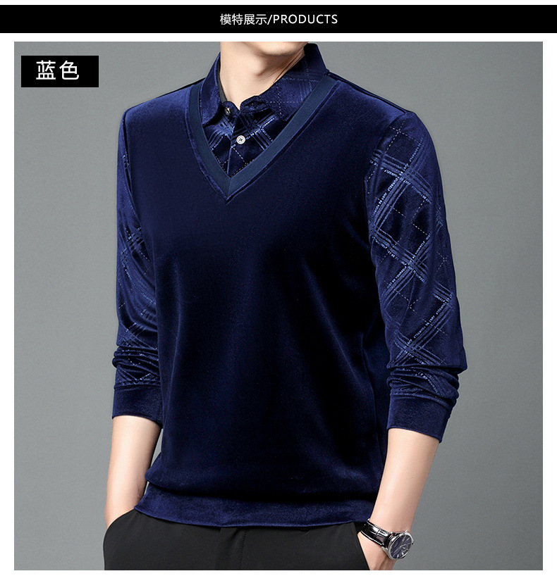 골든 벨벳 남자 가을과 겨울 기모 뜨거운 시추 가짜 2 피스 스티칭 니트 스웨터 중년 기모 유행 올 매치 스웨터스토어 가기