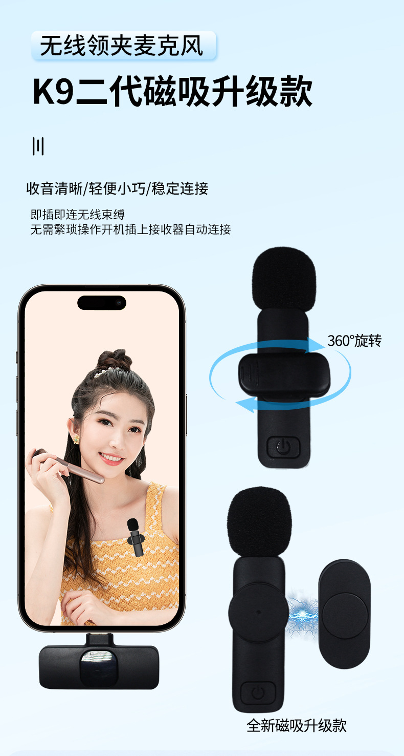 프라이빗 모델 k9 2세대 라이브 방송 소음 감소 자석 360도 회전 k1 틱톡 크로스보더 무선 라발리에 마이크