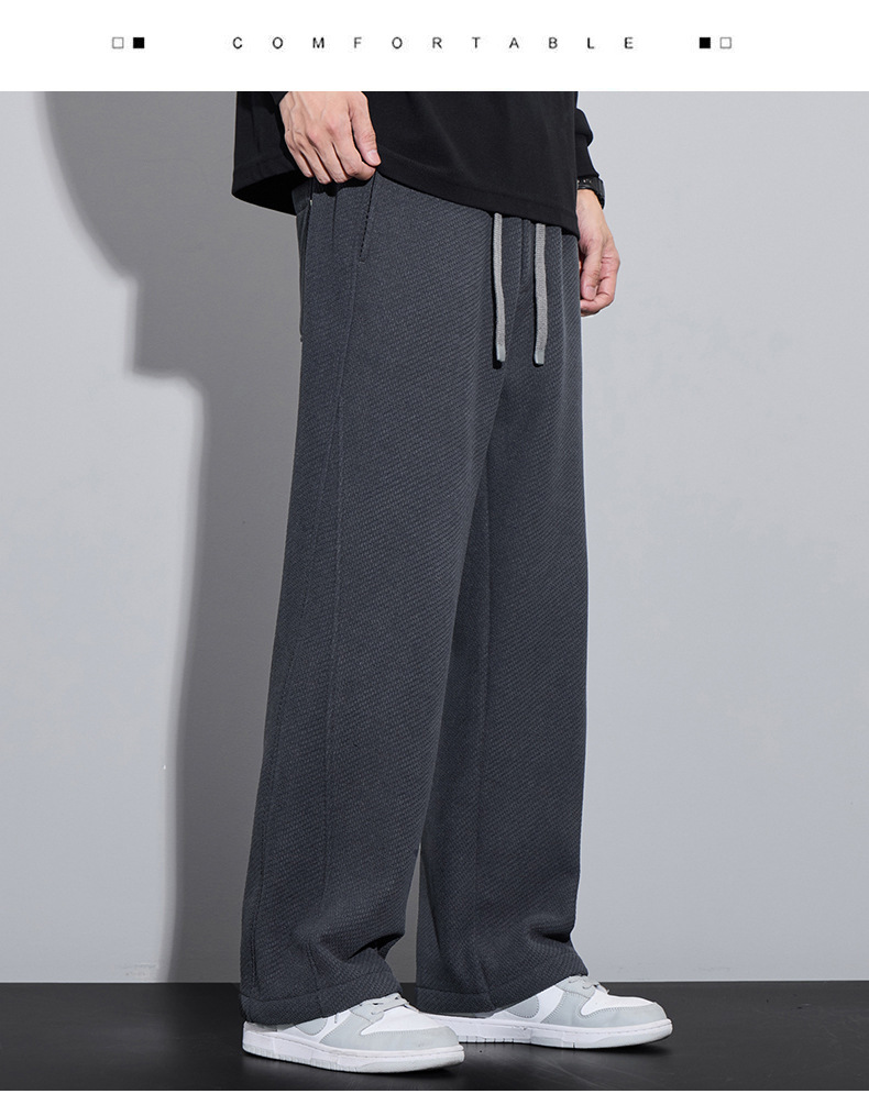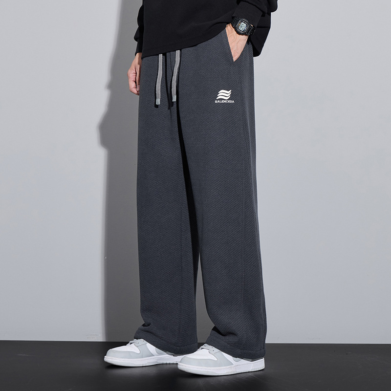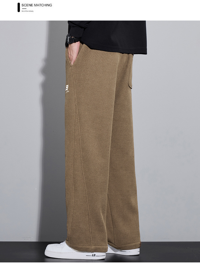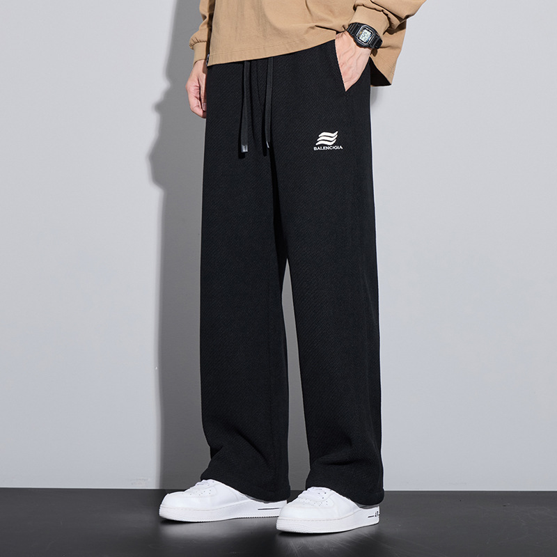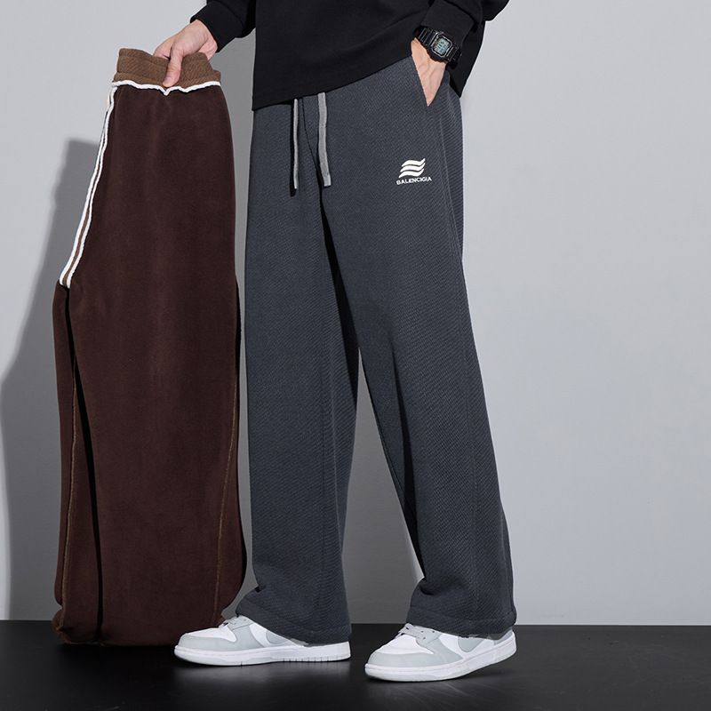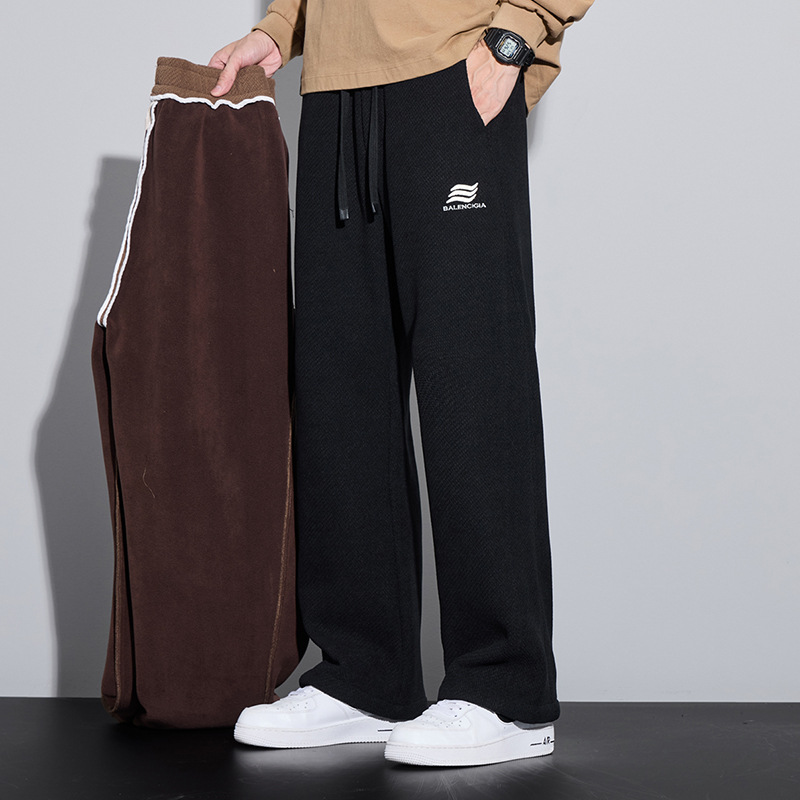 [기모 정사이즈 옵션] 남성용 캐주얼 바지 기본 조커 가을과 겨울 새로운 수직 느낌 조수 브랜드 자수 스트레이트 팬츠