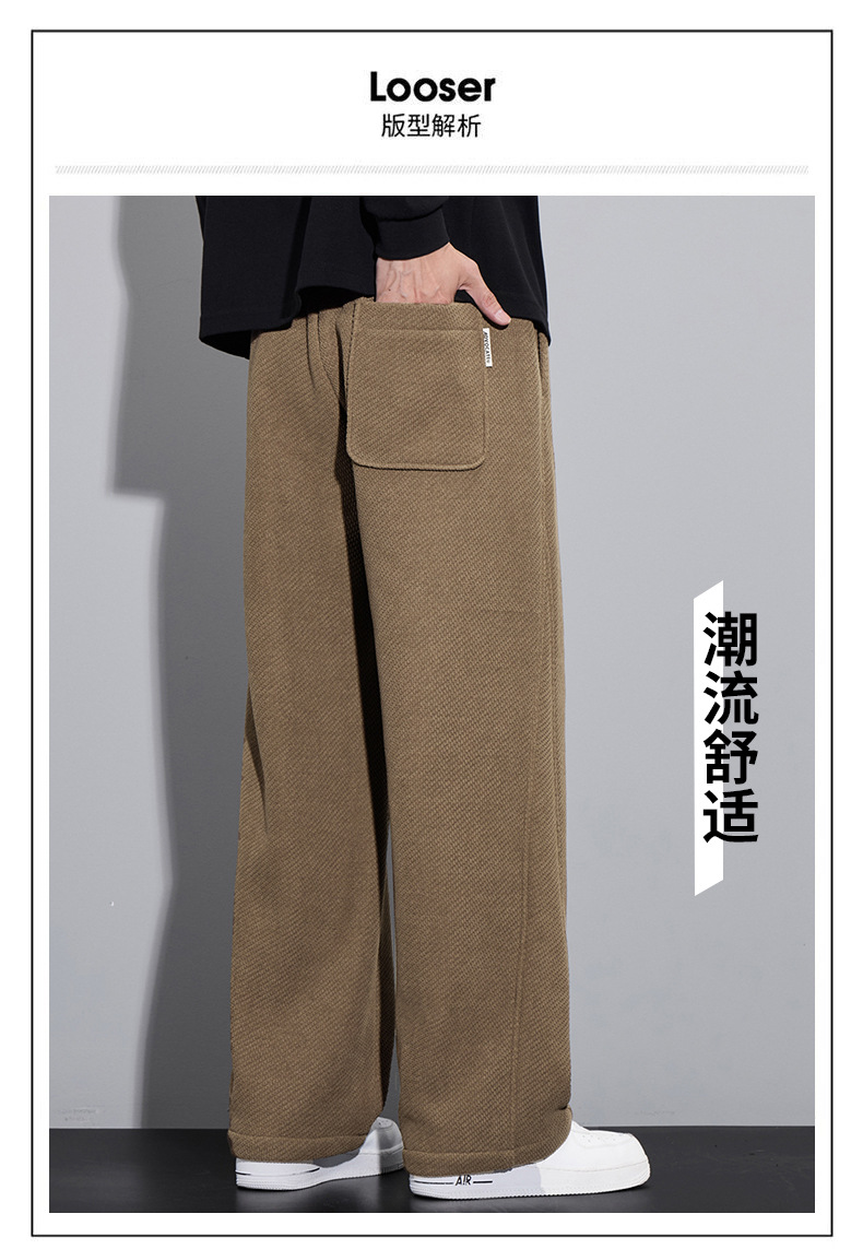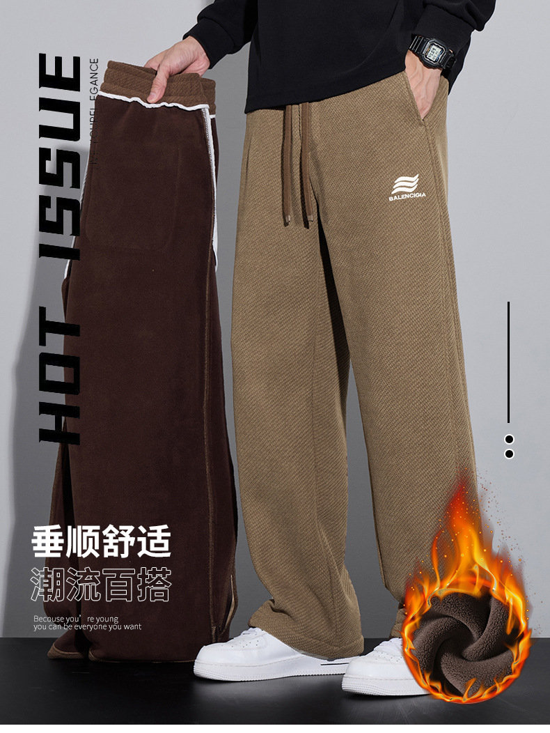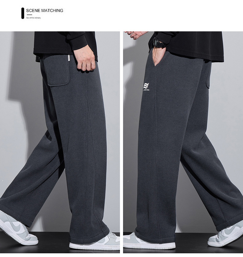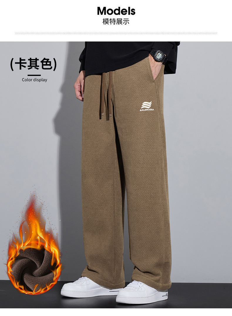 [기모 정사이즈 옵션] 남성용 캐주얼 바지 기본 조커 가을과 겨울 새로운 수직 느낌 조수 브랜드 자수 스트레이트 팬츠스토어 가기