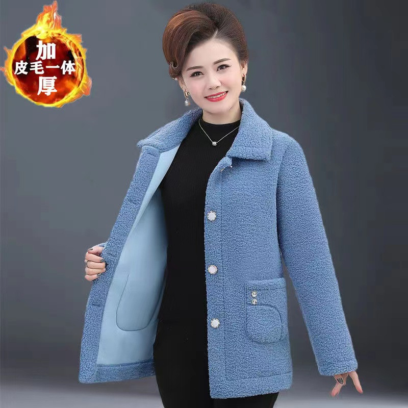 국경 간 기모 두껍게 양고기 방지 코트 여성의 2024 겨울 어머니의 원피스 벨벳 따뜻한 코트 도매