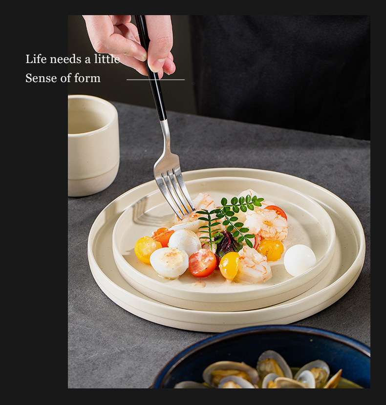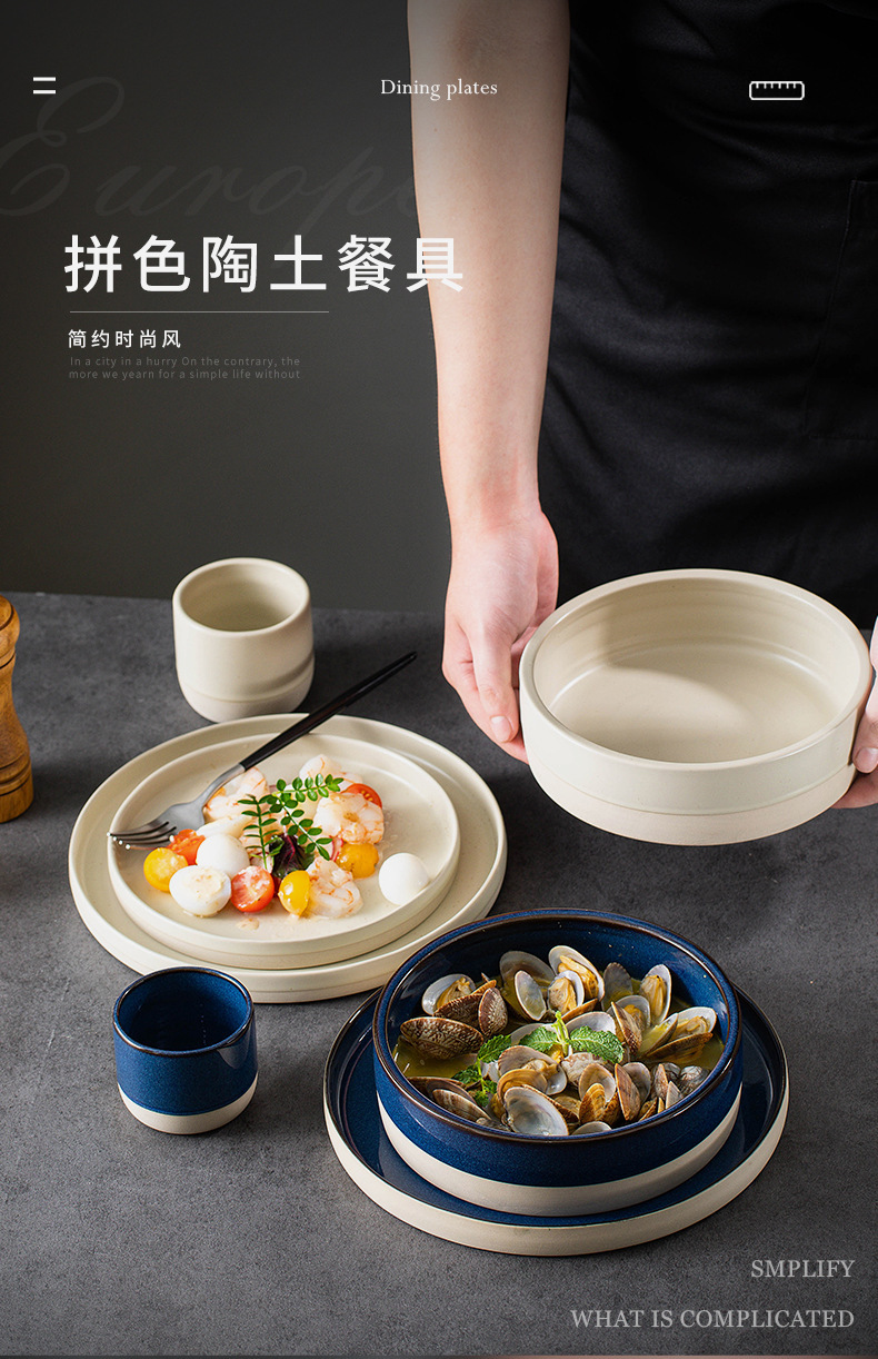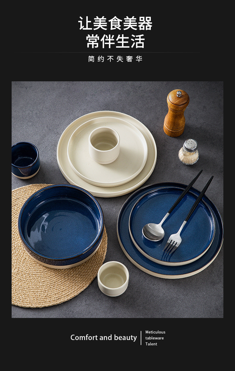 국경 간 일본식 세라믹 가정용 세트 플레이트 크리에이티브 호텔 식기 조잡한 도자기 플레이트 가마 변화 딥 플레이트 볶음 플레이트