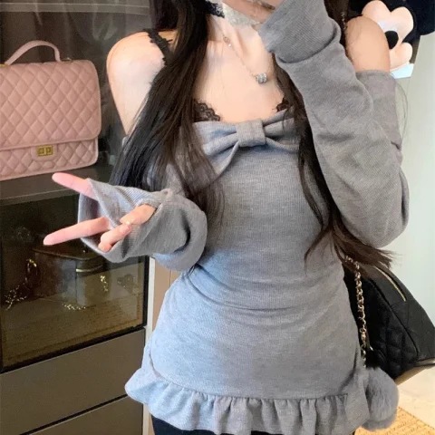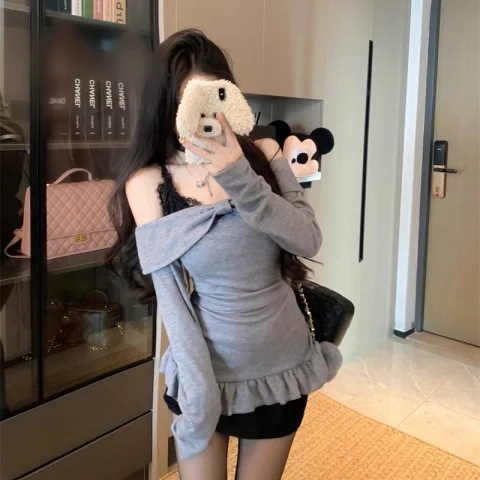 2024 가을 순수한 욕망 어깨 대조 레이스 슬링 원피스 여성 초가을 스파이스 소녀 힙합 스커트 투피스 세트스토어 가기