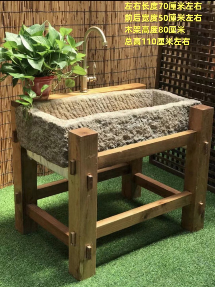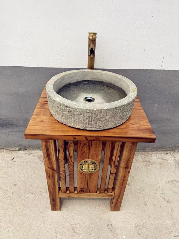오래된 돌로고, 어항, 물고기 사료통, 말 사료통, 돼지 사료통, 세면대, 나무 선반, 수도꼭지, 안뜰 발코니, 흐르는 물 풍경스토어 가기