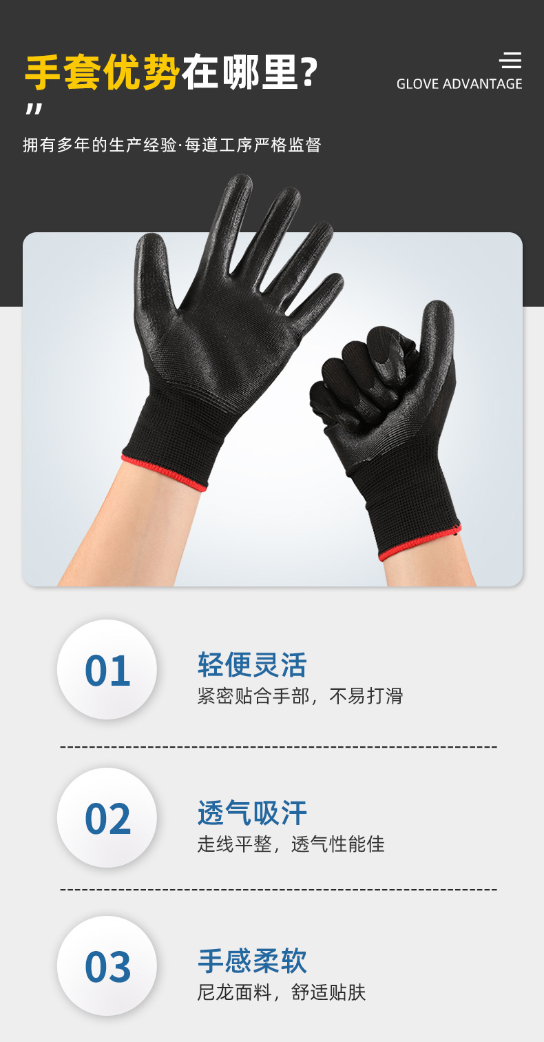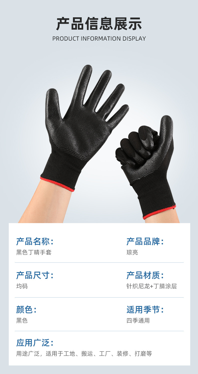 • 42g Qiongliang 검정색 나일론 니트릴 장갑