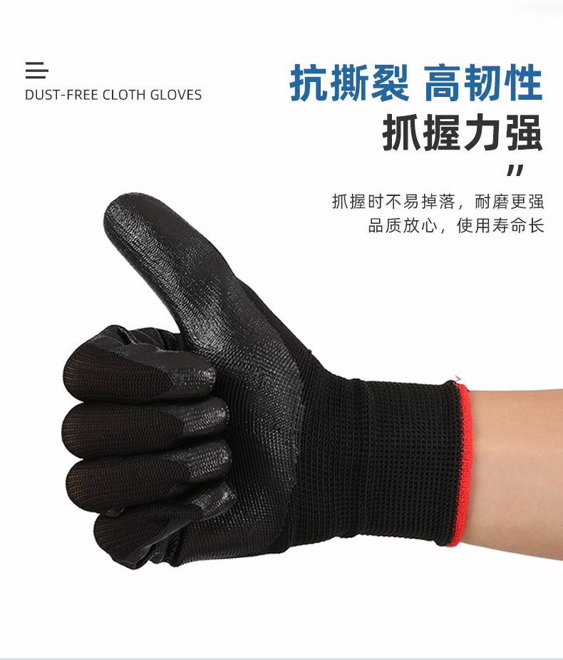 블랙 딩 청 장갑 13 핀 나일론 장갑 건설 현장 장갑 접착제 코팅 보호 노동 장갑 용 미끄럼 방지 장갑
