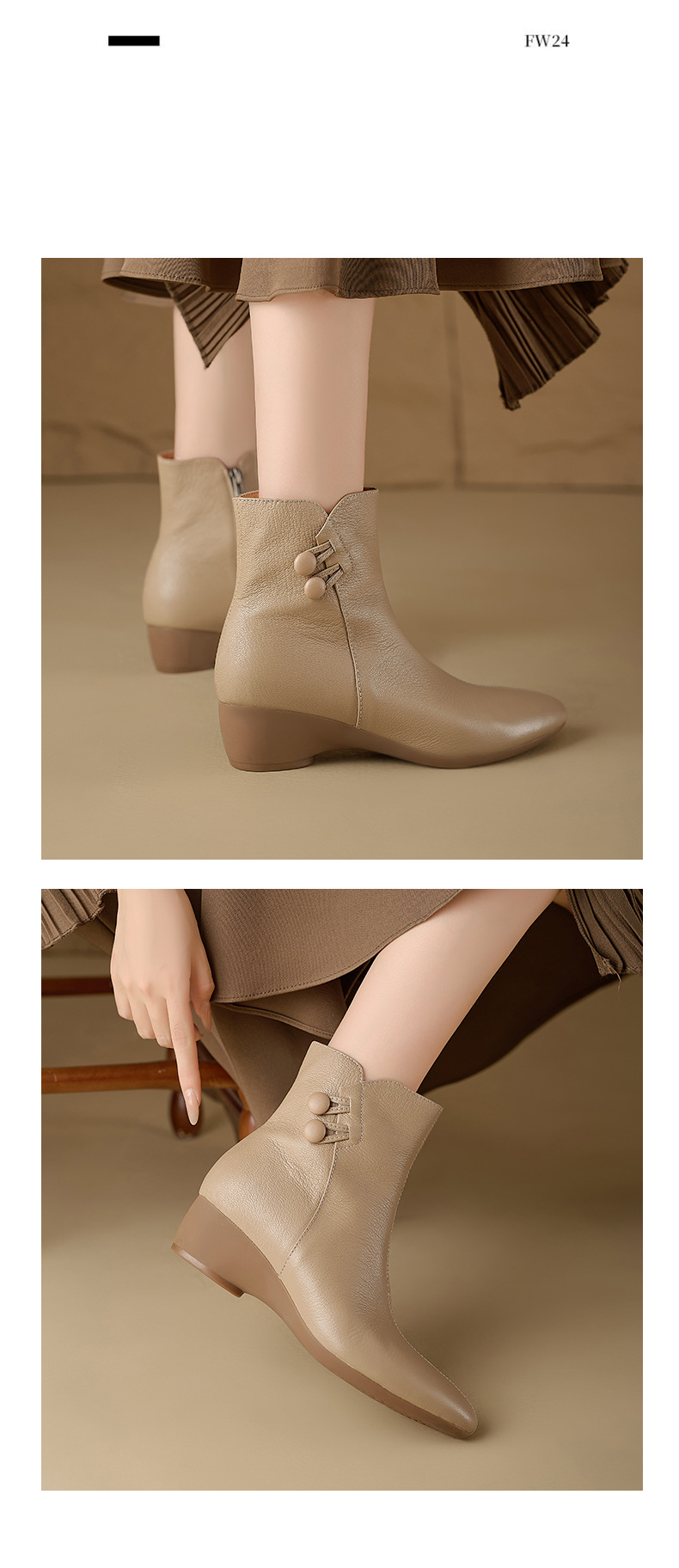 하이 퀄리티 양가죽 짧은 부츠 여성 봄과 가을 2024 새로운 프랑스 소프트 가죽 싱글 부츠 여성용 레트로 소프트 하단 리얼 가죽 부츠스토어 가기
