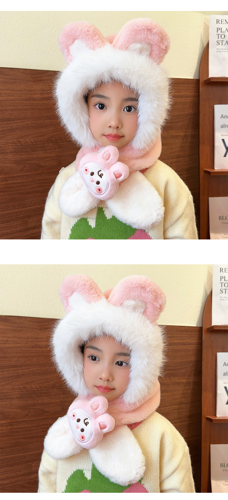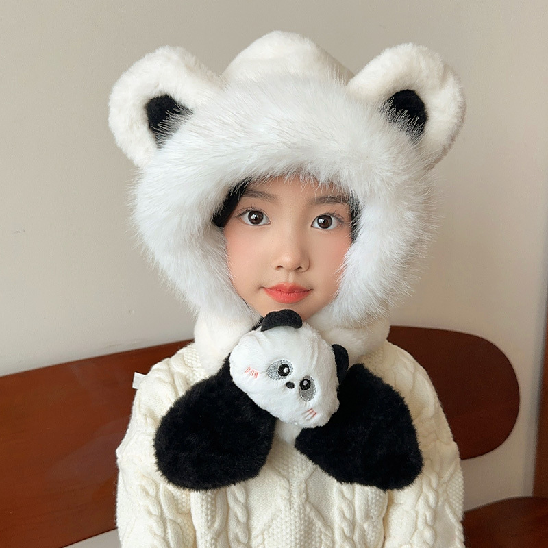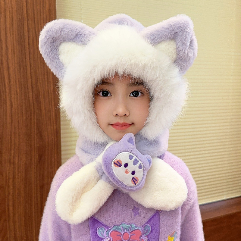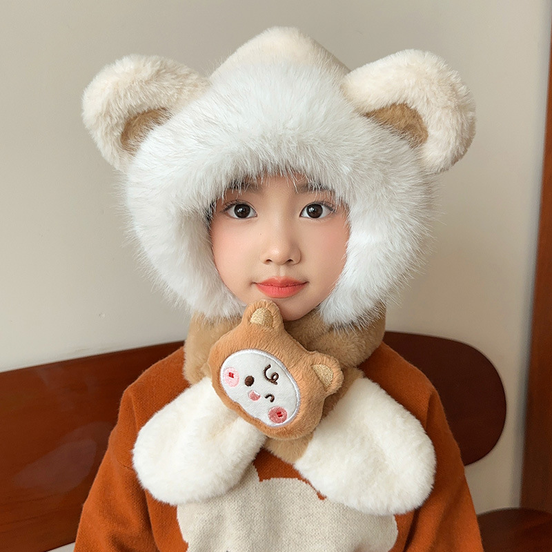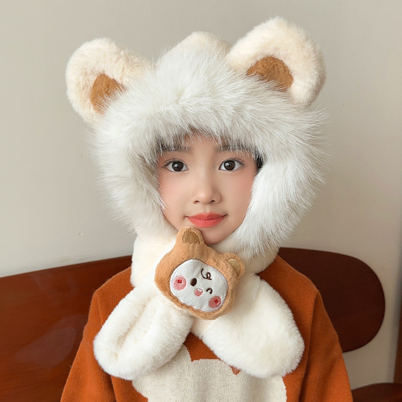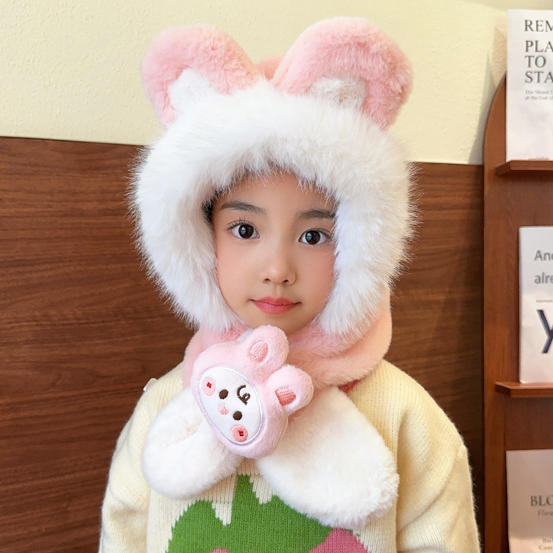 어린이 모자 스카프 통합 모자 가을과 겨울 귀여운 소녀 봉제 따뜻한 방풍 귀 보호 모자 아기 스카프