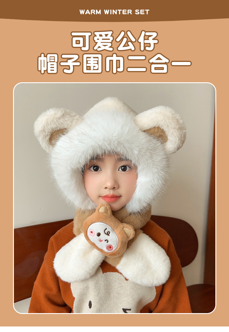 어린이 모자 스카프 통합 모자 가을과 겨울 귀여운 소녀 봉제 따뜻한 방풍 귀 보호 모자 아기 스카프스토어 가기