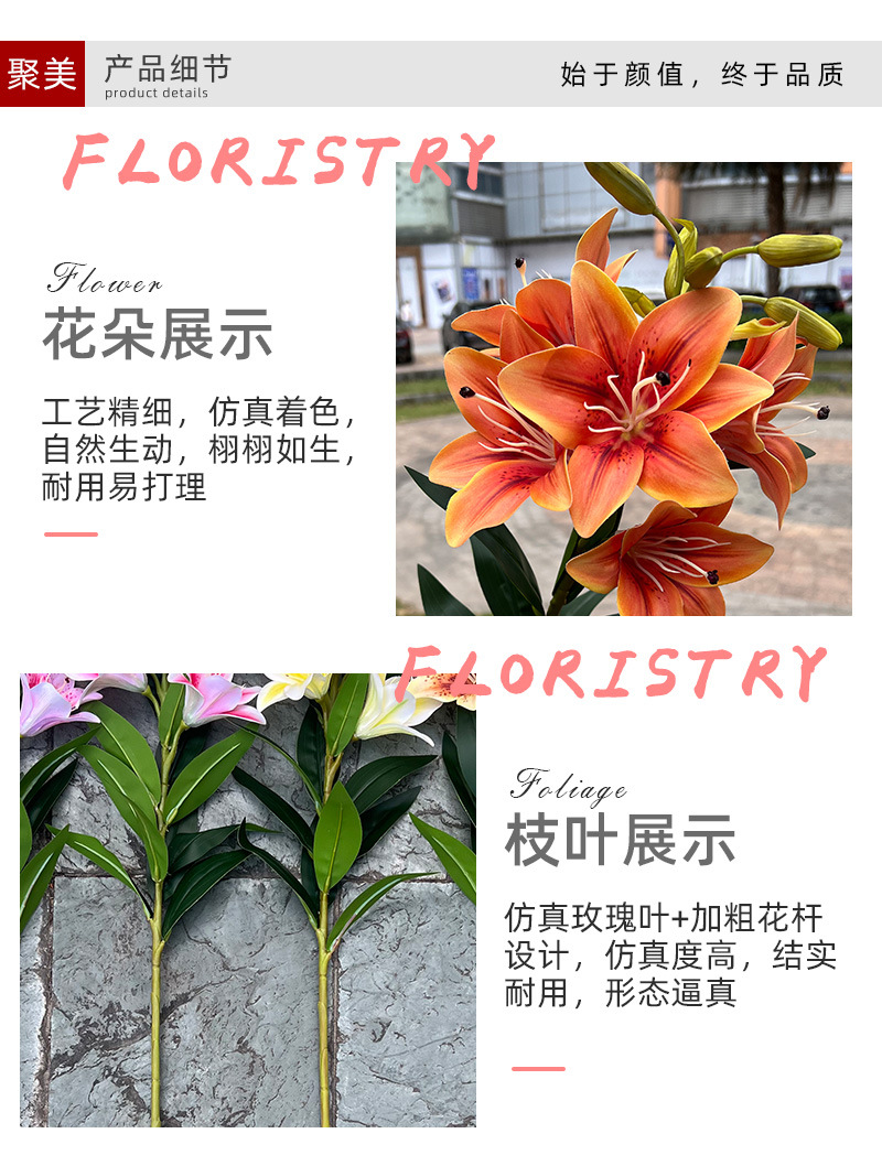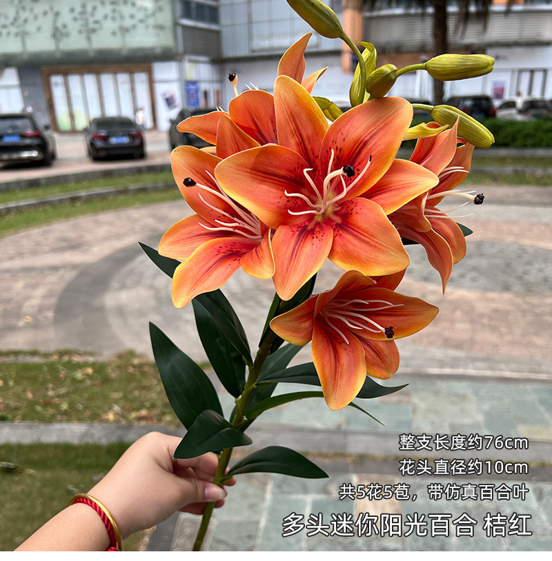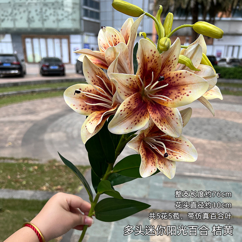 대외 무역 흰색 백합 가정 장식 멀티 헤드 미니 햇살 백합 새해 꽃 결혼식 부드러운 가짜 꽃 도매스토어 가기