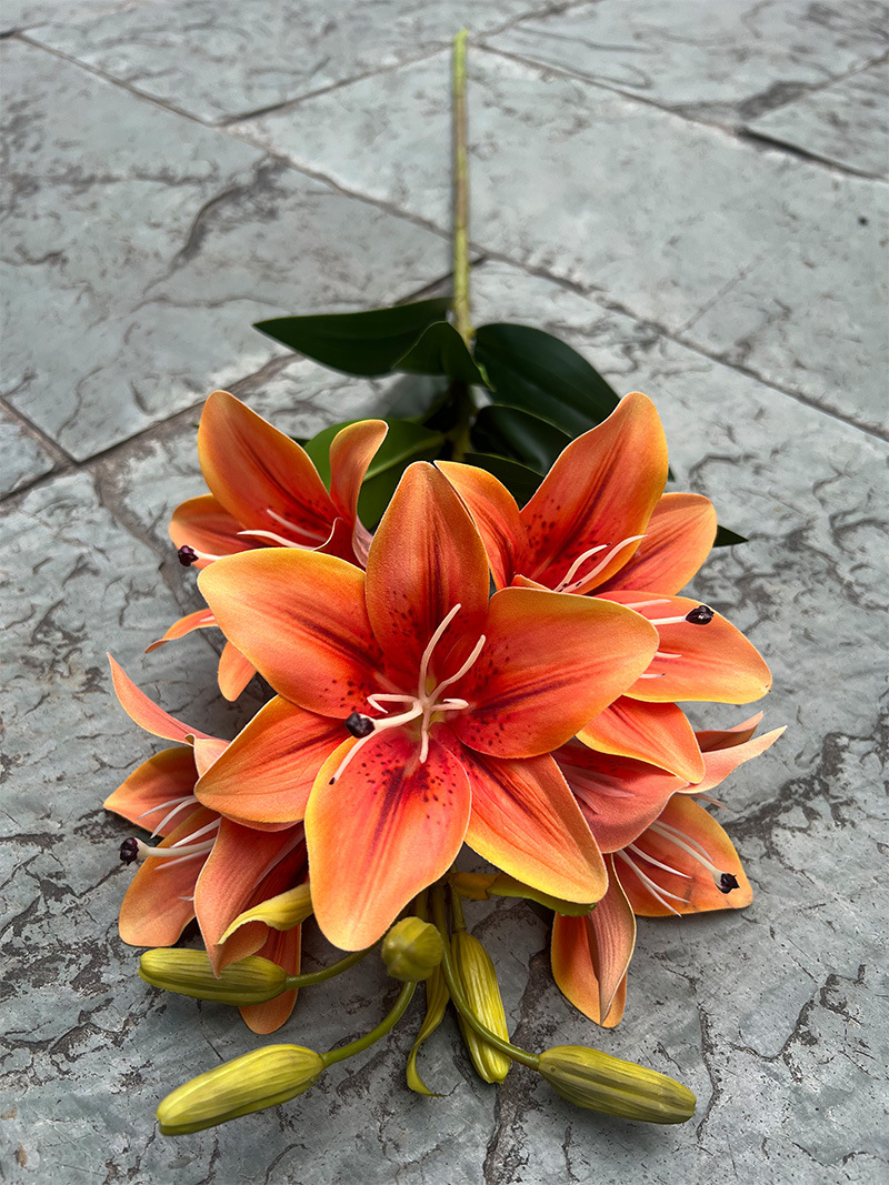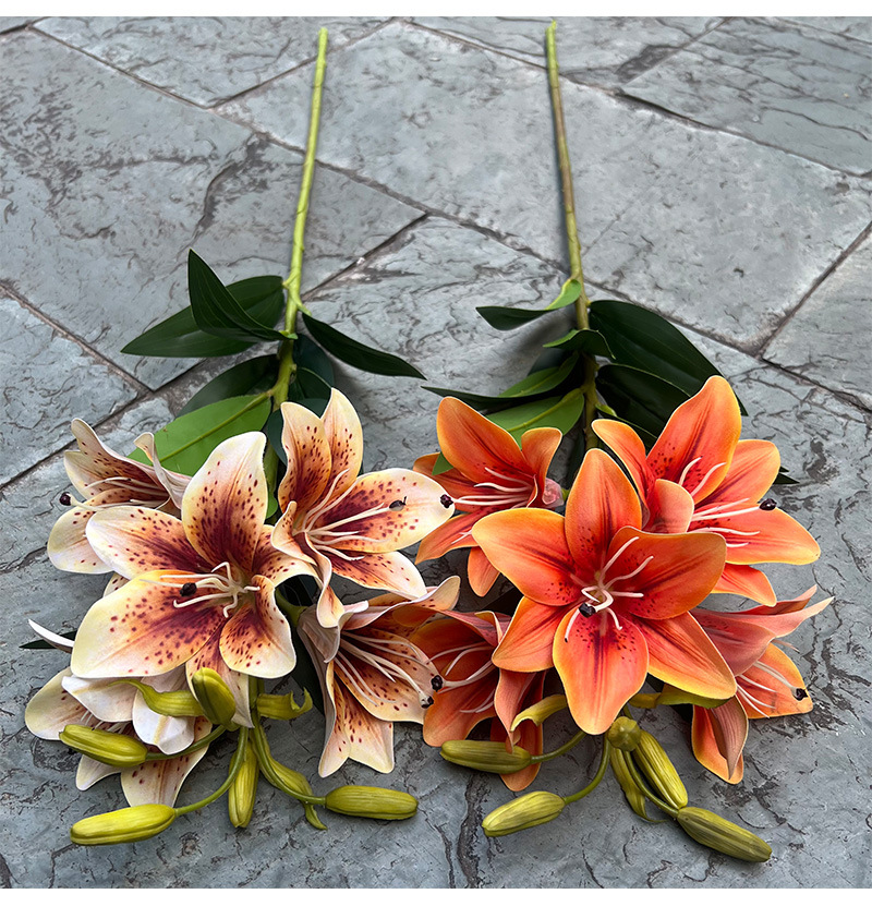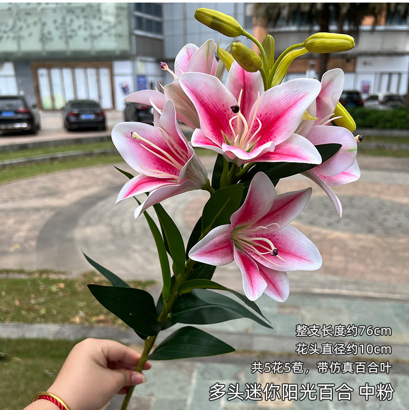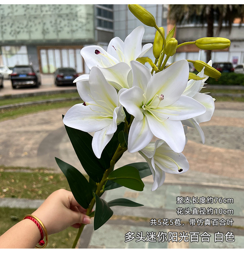 대외 무역 흰색 백합 가정 장식 멀티 헤드 미니 햇살 백합 새해 꽃 결혼식 부드러운 가짜 꽃 도매