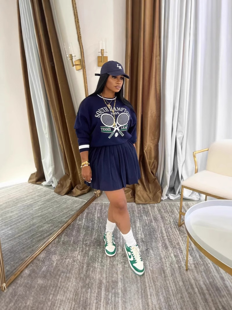 OL6164 새로운 국경 공급 가을 여자 야구 세트 땀 세트 주름 치마 투피스 세트