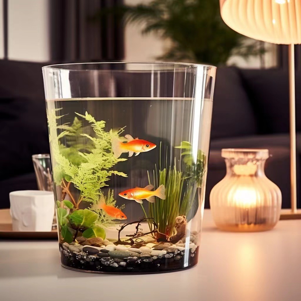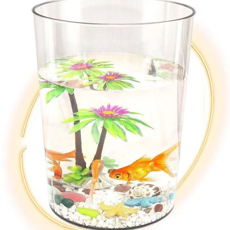 투명한 원통형 작은 금붕어 탱크 아크릴 직선 원통형 바닥 거실 둥근 물고기 탱크 휴지통