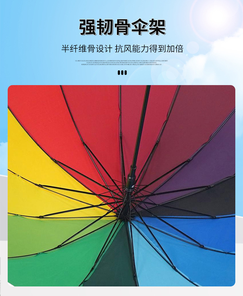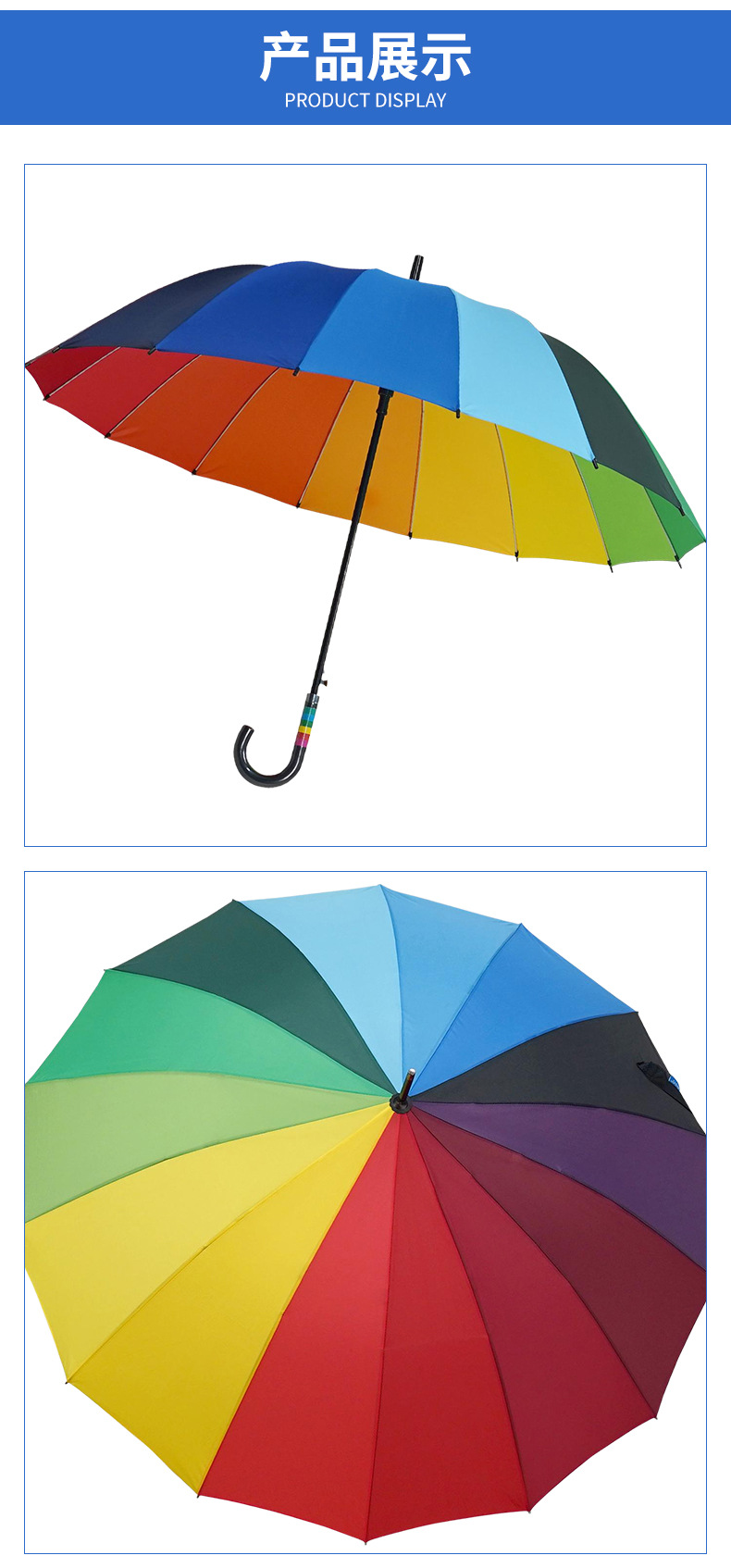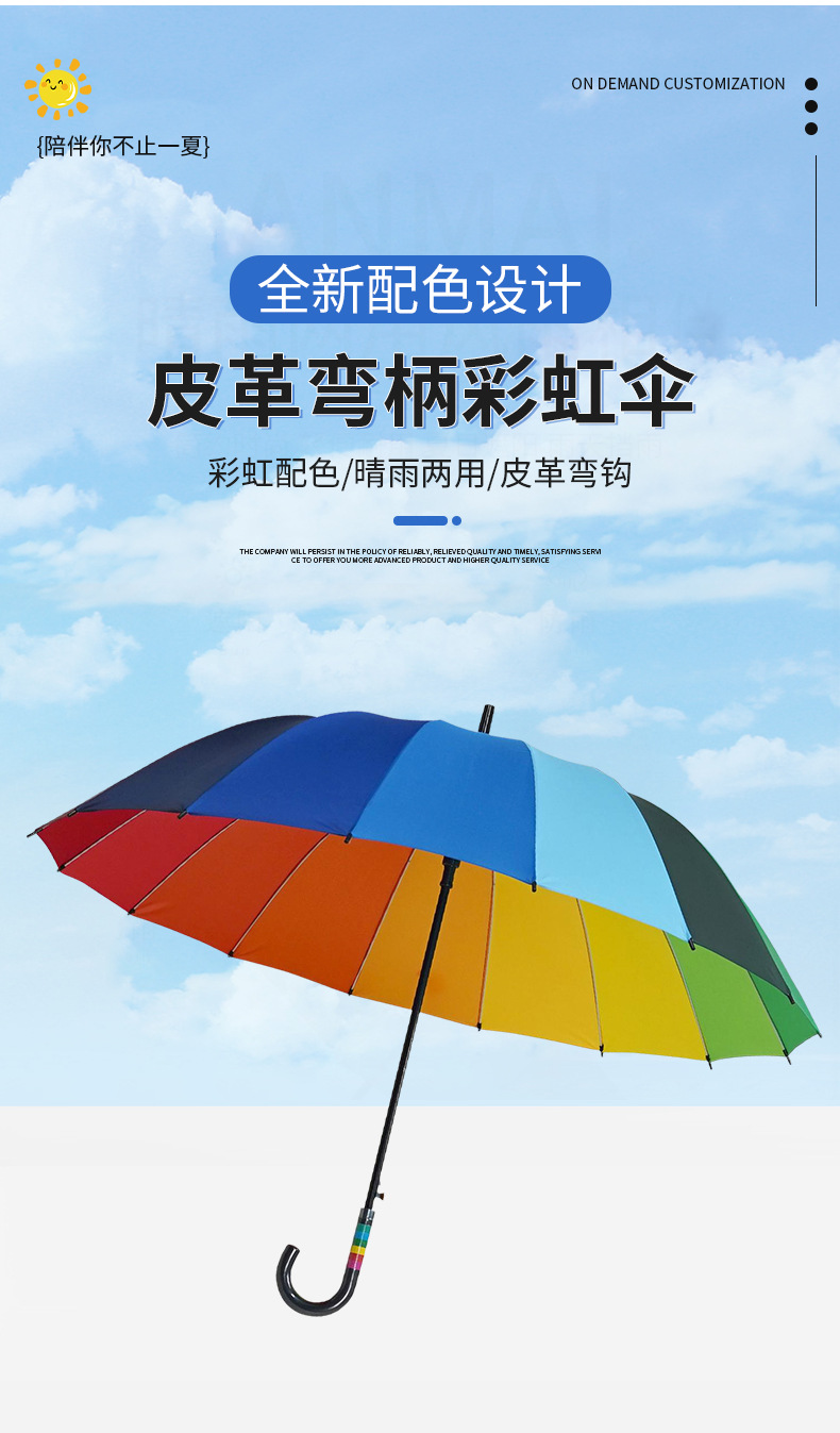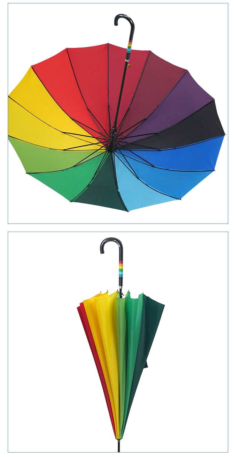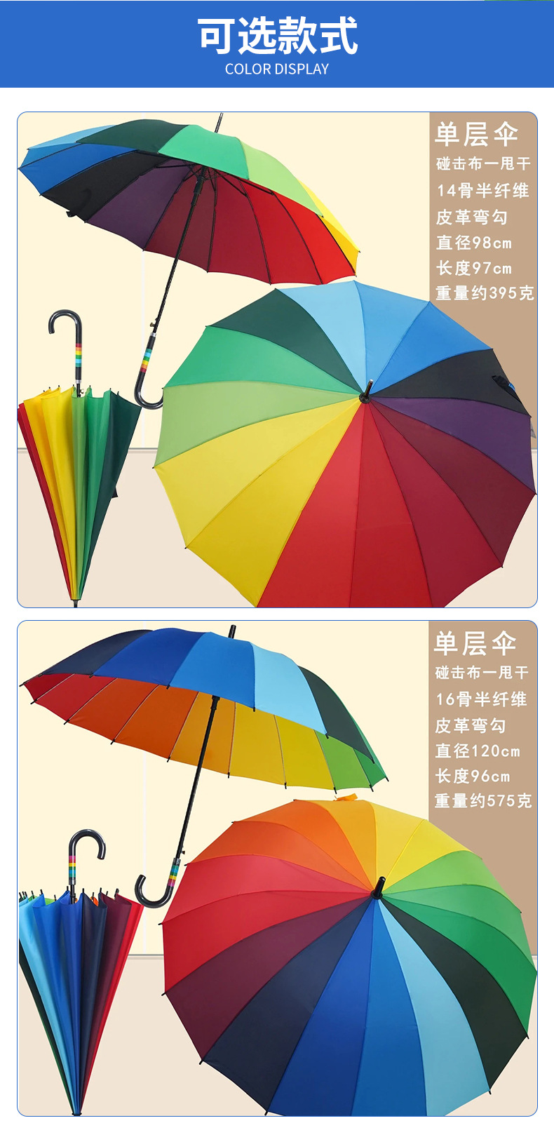 공장 도매 가죽 핸들 무지개 우산 긴 핸들 후크 증가 더블 우산 인쇄 도매 자동 우산 16 뼈스토어 가기