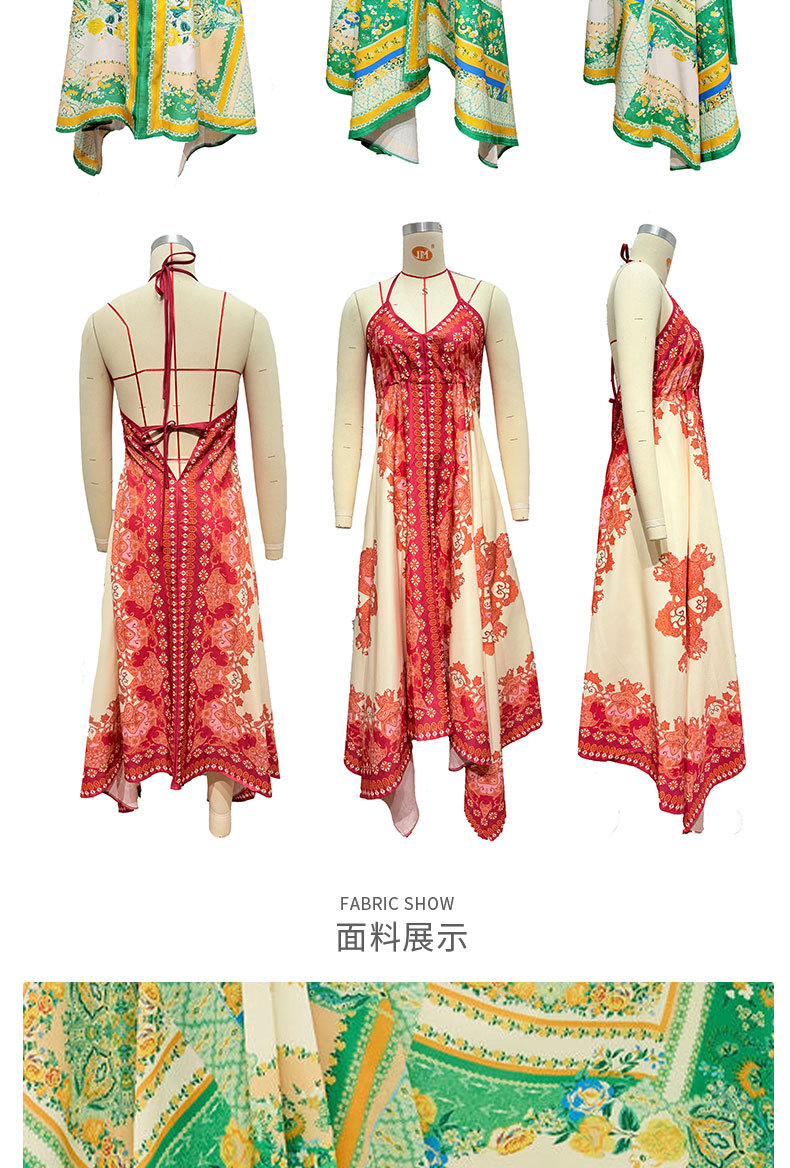 2025 새로운 봄과 여름 어깨 V-목 여성의 슬링 인쇄 요정 스타일 여성을위한 큰 원피스 긴 우아한 원피스스토어 가기