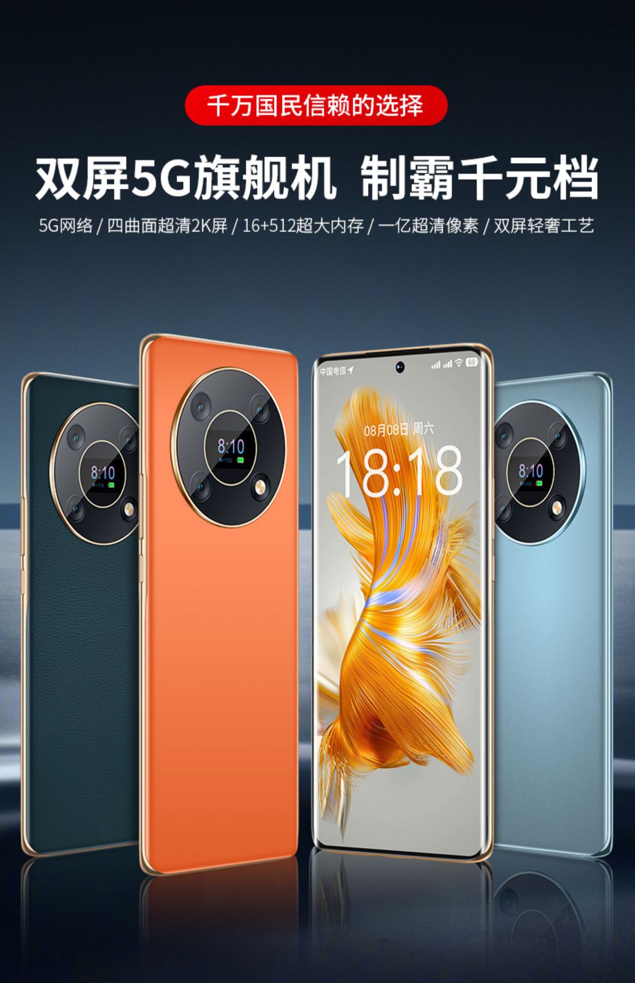 듀얼 스크린 휴대 전화 6.9 "대형 화면 512G 풀 넷콤 5G 게임 듀얼 카드 안드로이드 스마트 폰 세대