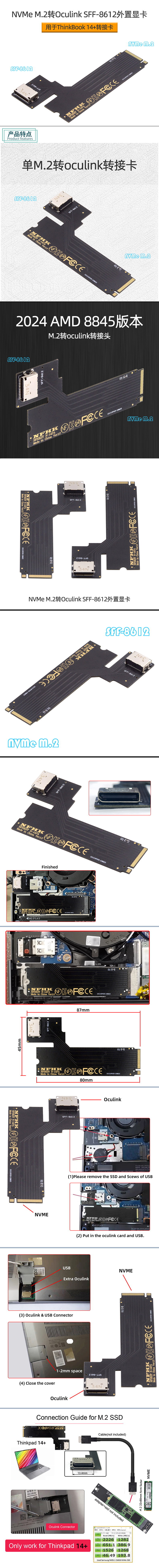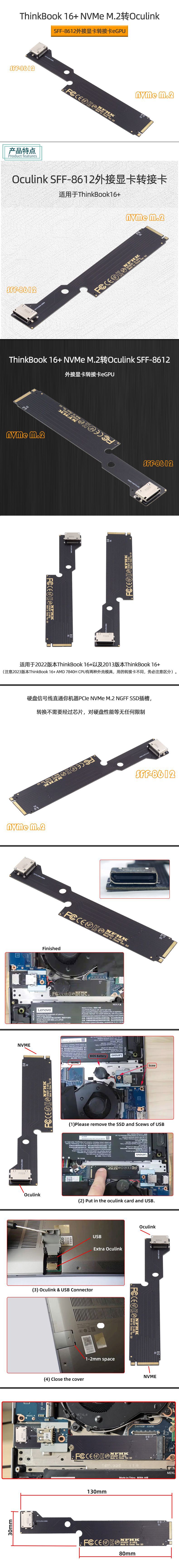 지원 AMD ThinkBook 14 16 M.2 포트 Oculink SFF8612 외부 그래픽 카드 전송
