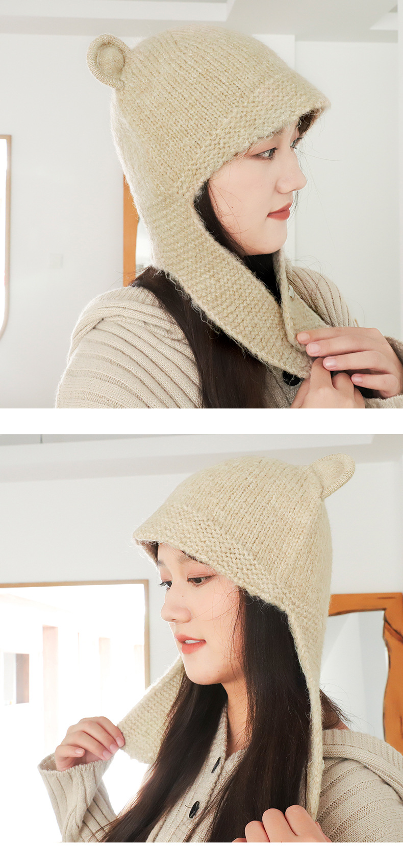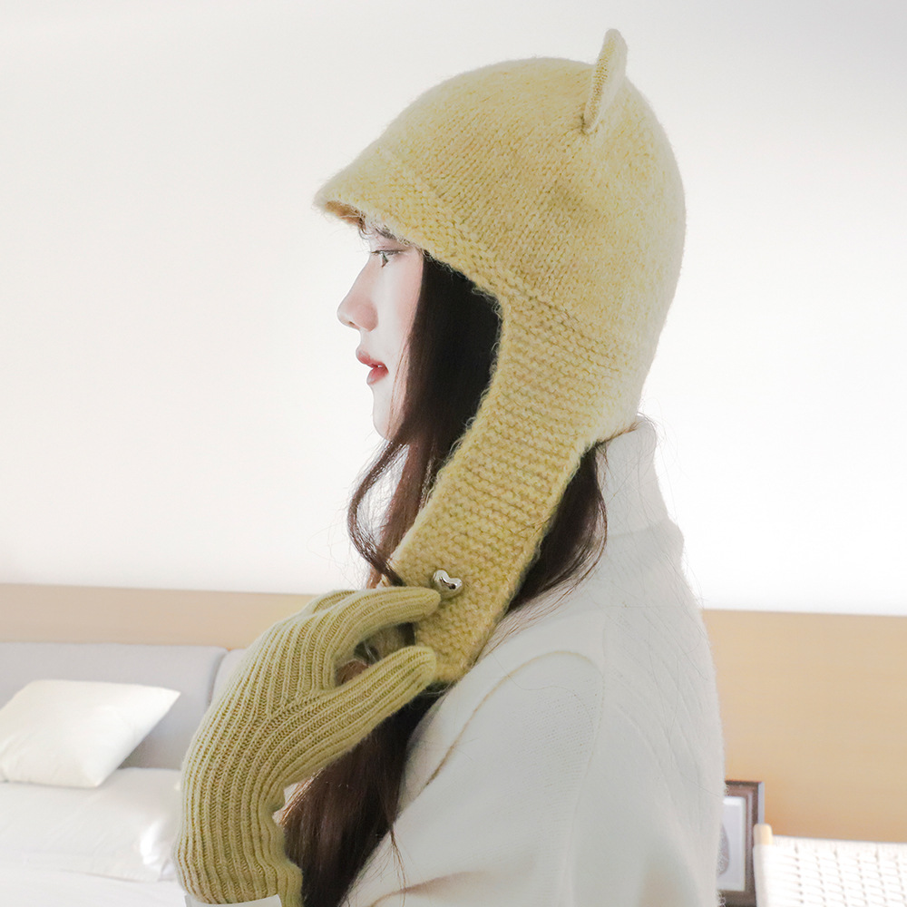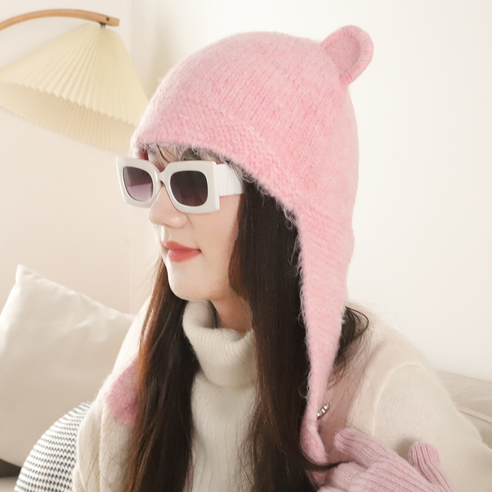 가을과 겨울 패션 따뜻한 방풍 올매치 양모 니트 모자 여성의 콜드 인 스타일 달콤한 귀 보호 모자스토어 가기