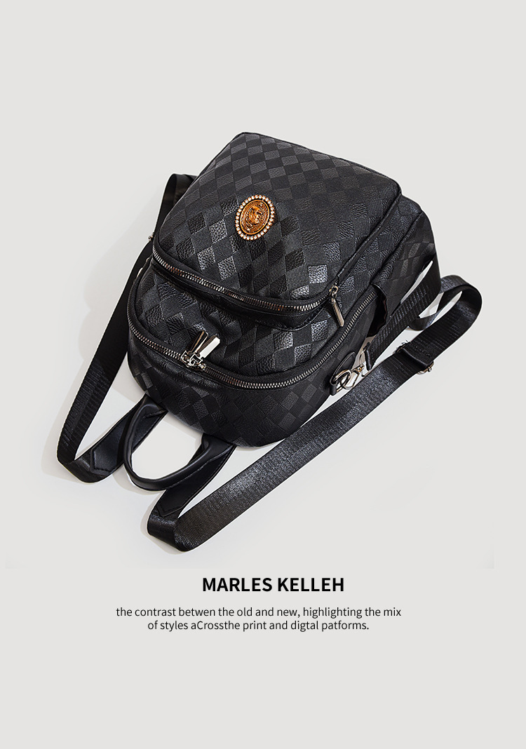 2024 유행 한국 스타일 인터넷 인기있는 체커 보드 백팩 유행 간단한 대용량 여성 레저 여행 가방
