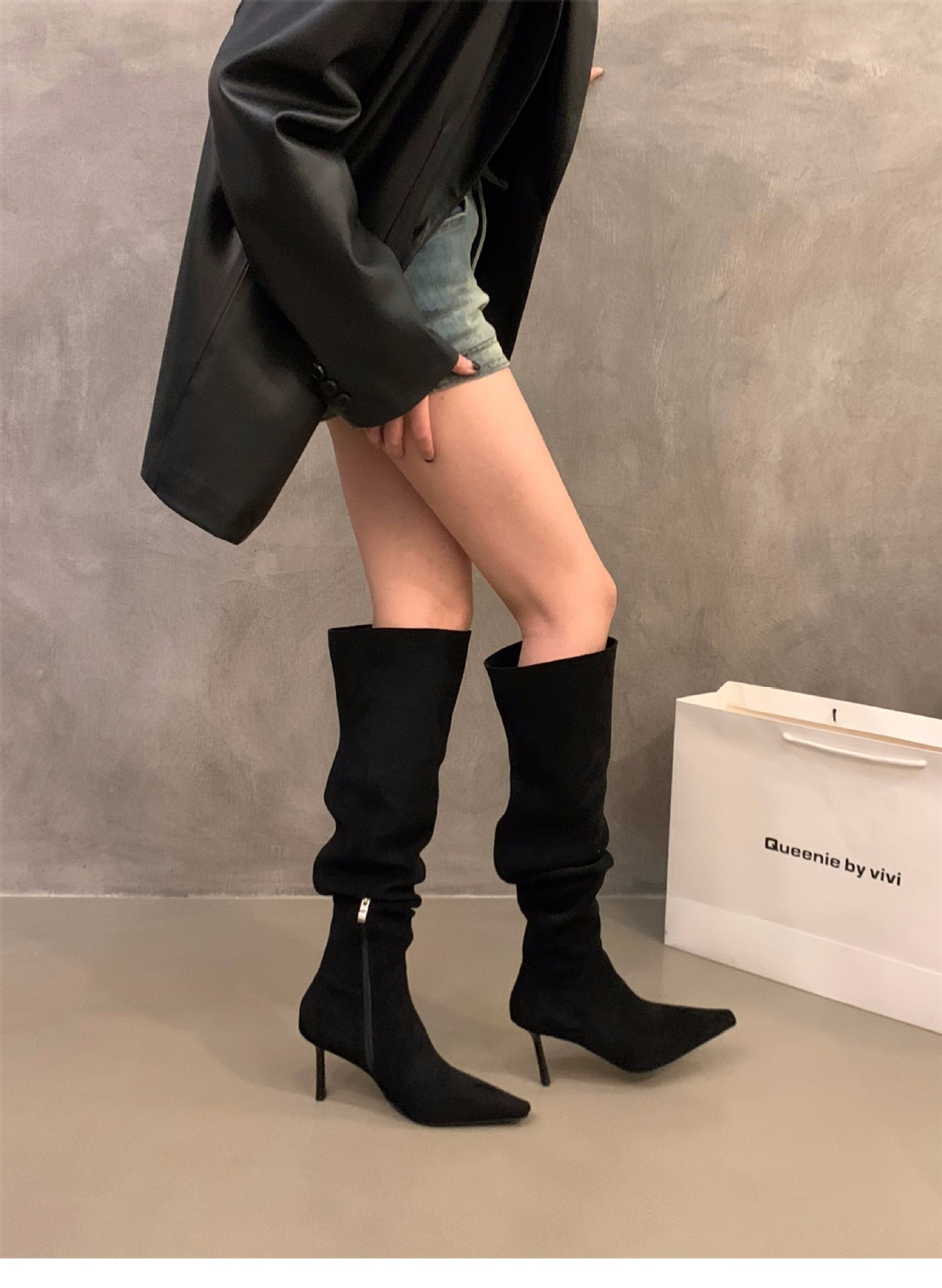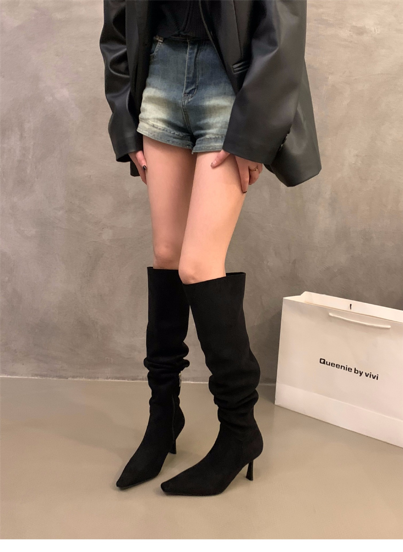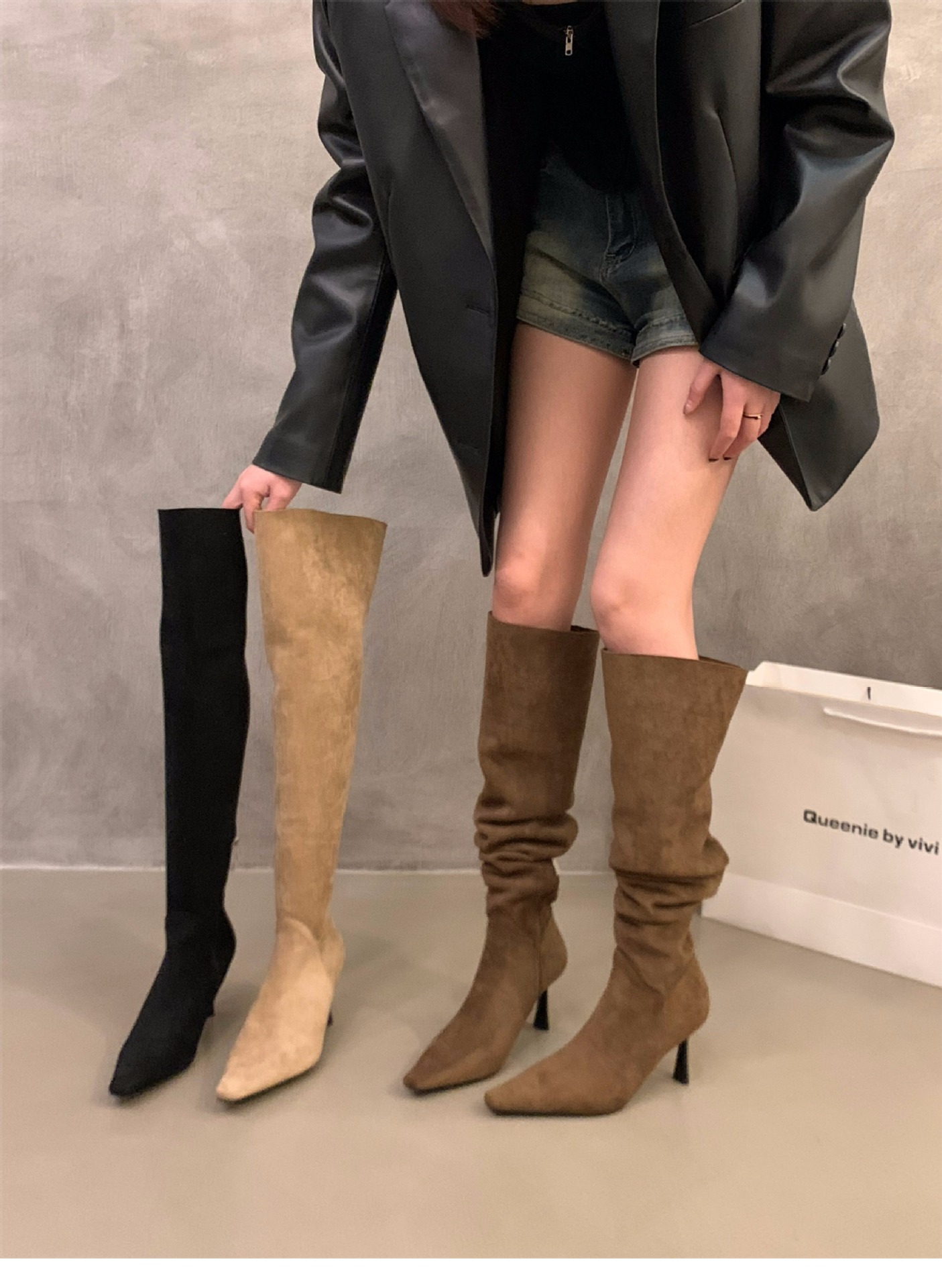 여성용 하이힐 스웨이드 슬림 니하이 부츠 2025 신상 가을 겨울 카키색 롱 라이더 부츠스토어 가기