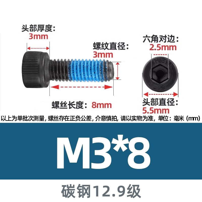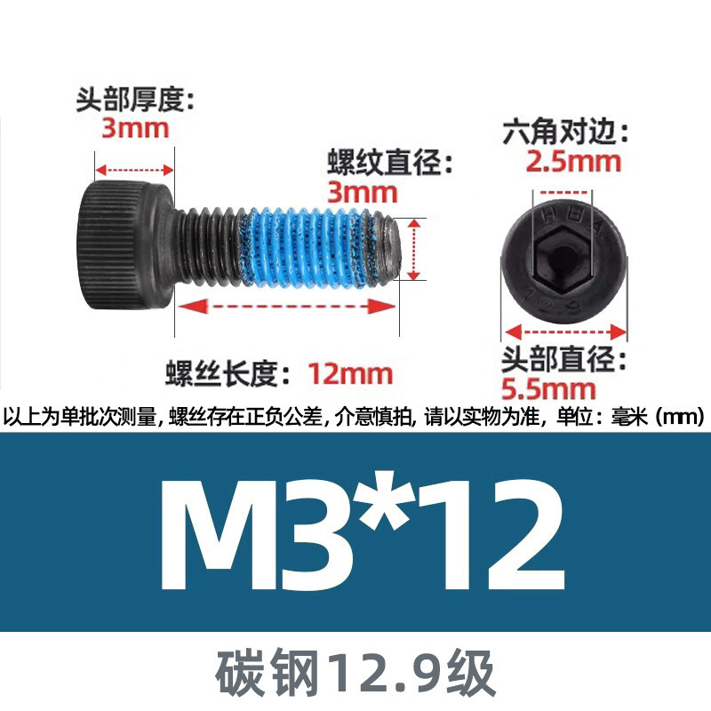 M3-m24 탄소 강철 실린더 헤드 분배 미끄럼 방지 검은 색 나사 12.9 고강도 컵 헤드 육각형 소켓 나사스토어 가기