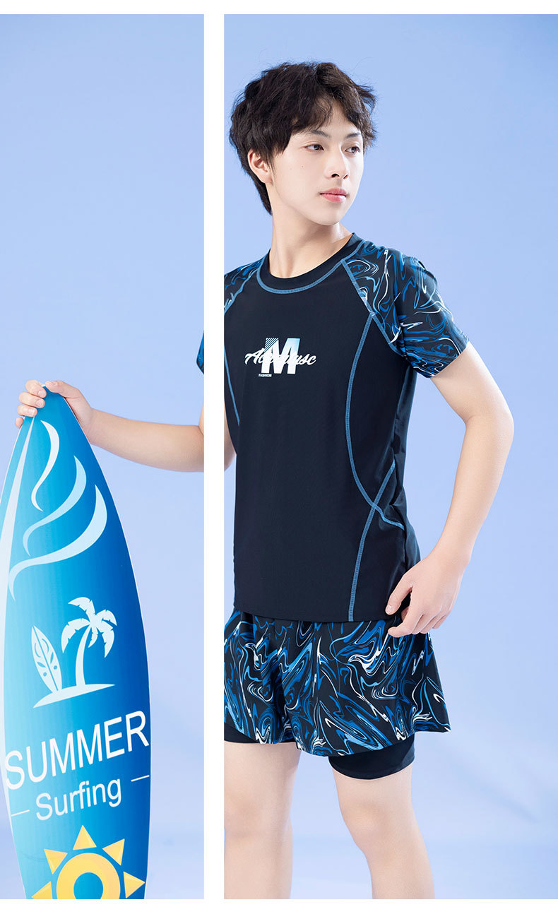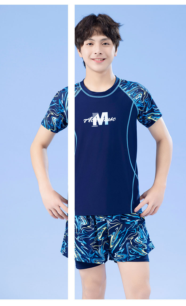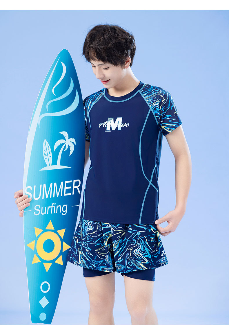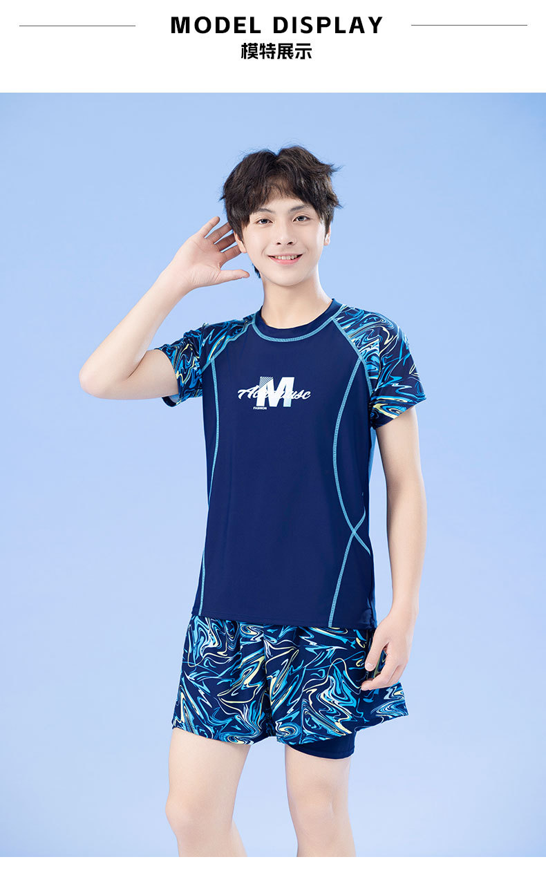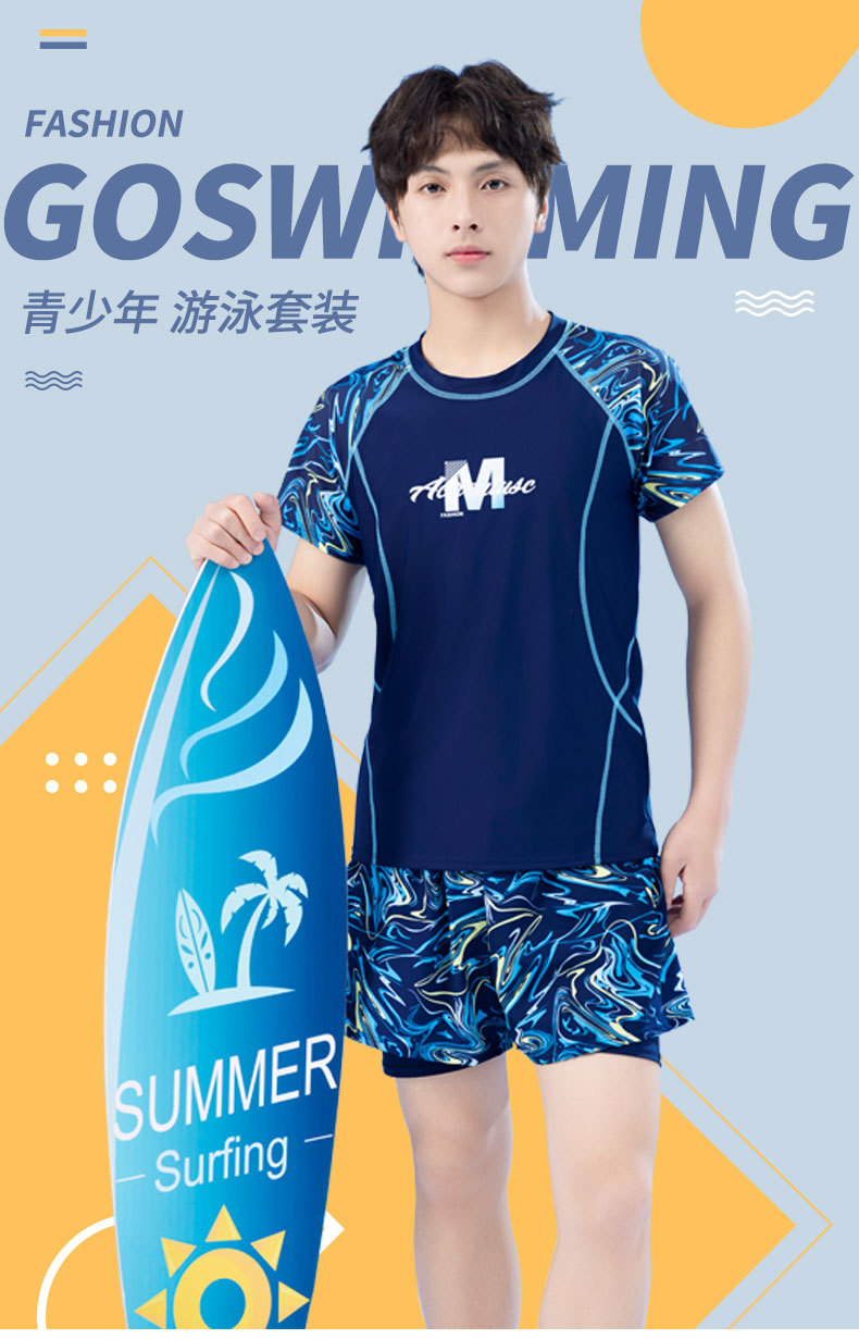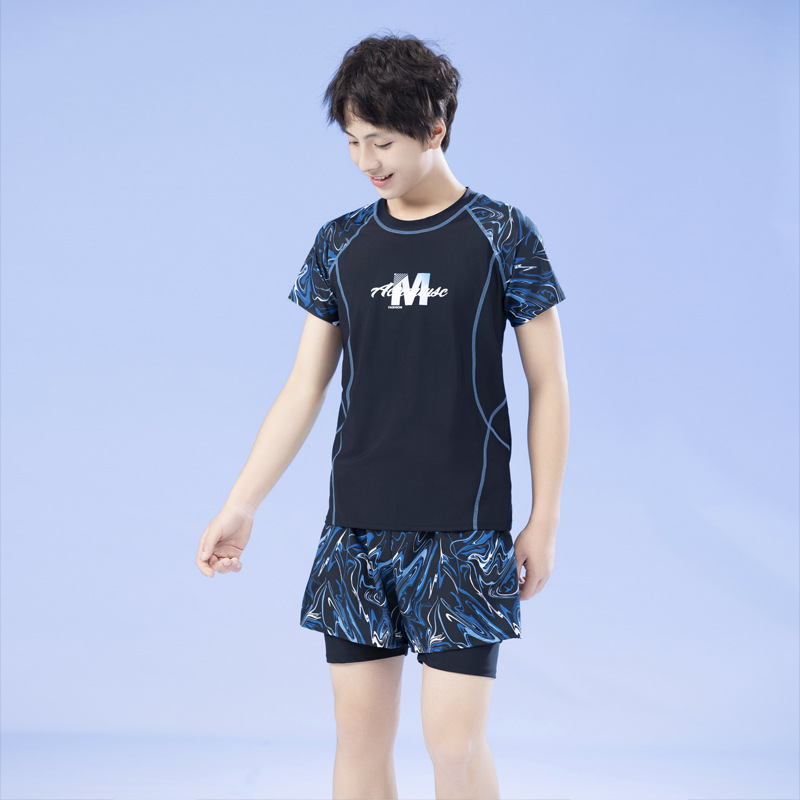 남학생을위한 새로운 청소년 어린이 수영 세트 통통한 소년을위한 중학교 소년 전문 수영 트렁크 세트스토어 가기