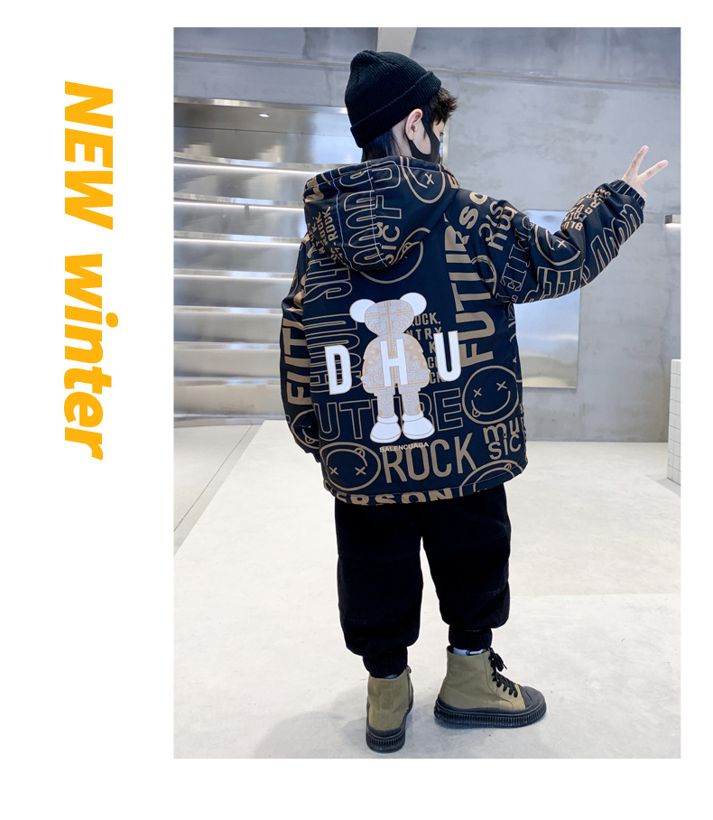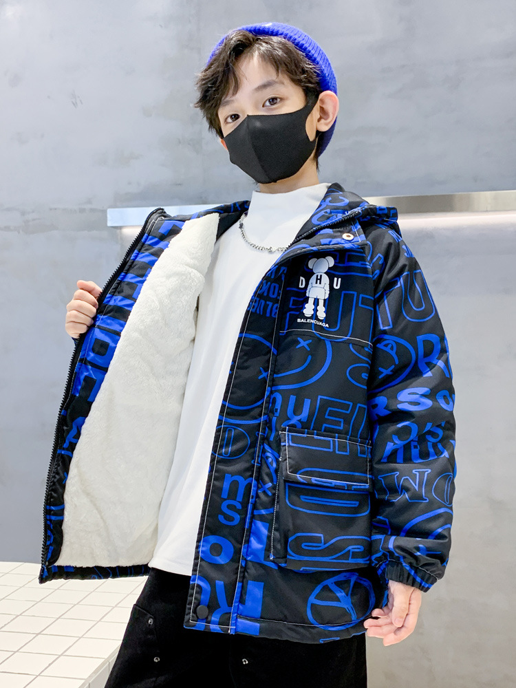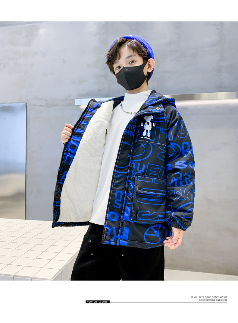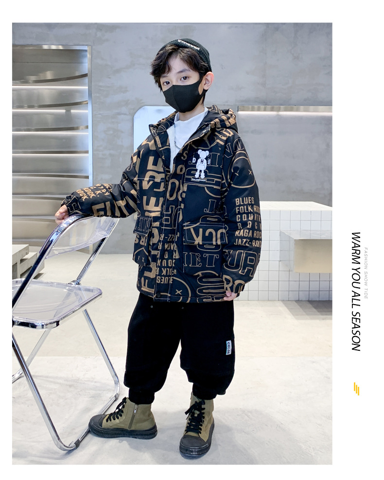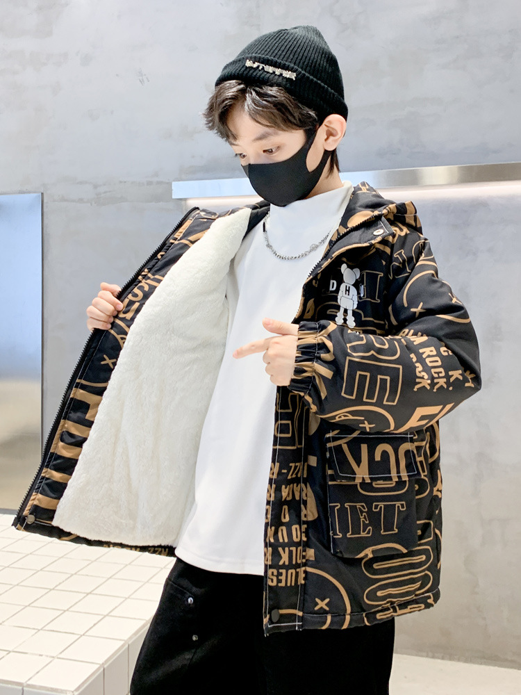 소년 기모 두꺼운 겨울 코트 2024 새로운 중첩 소년 가을 및 겨울 코트 긴 파이크 옷스토어 가기