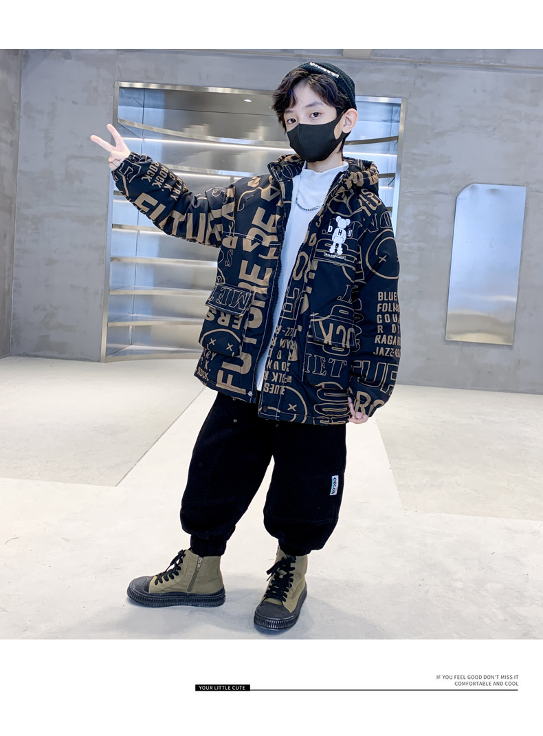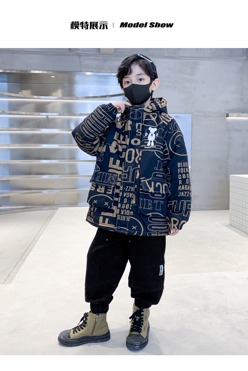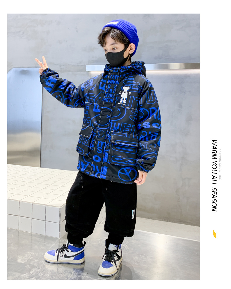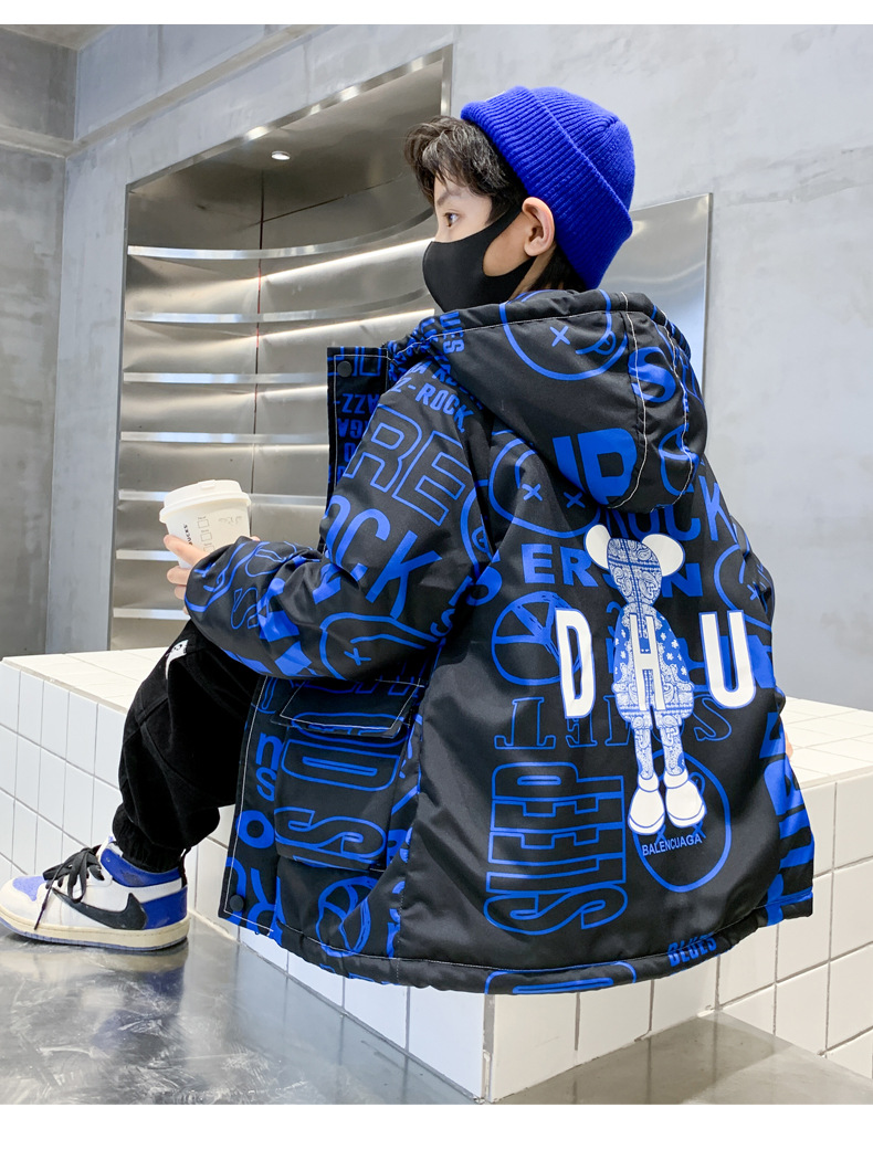 소년 기모 두꺼운 겨울 코트 2024 새로운 중첩 소년 가을 및 겨울 코트 긴 파이크 옷스토어 가기