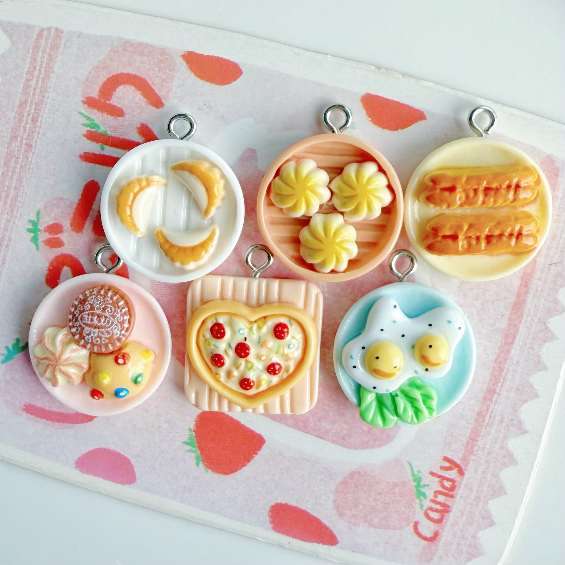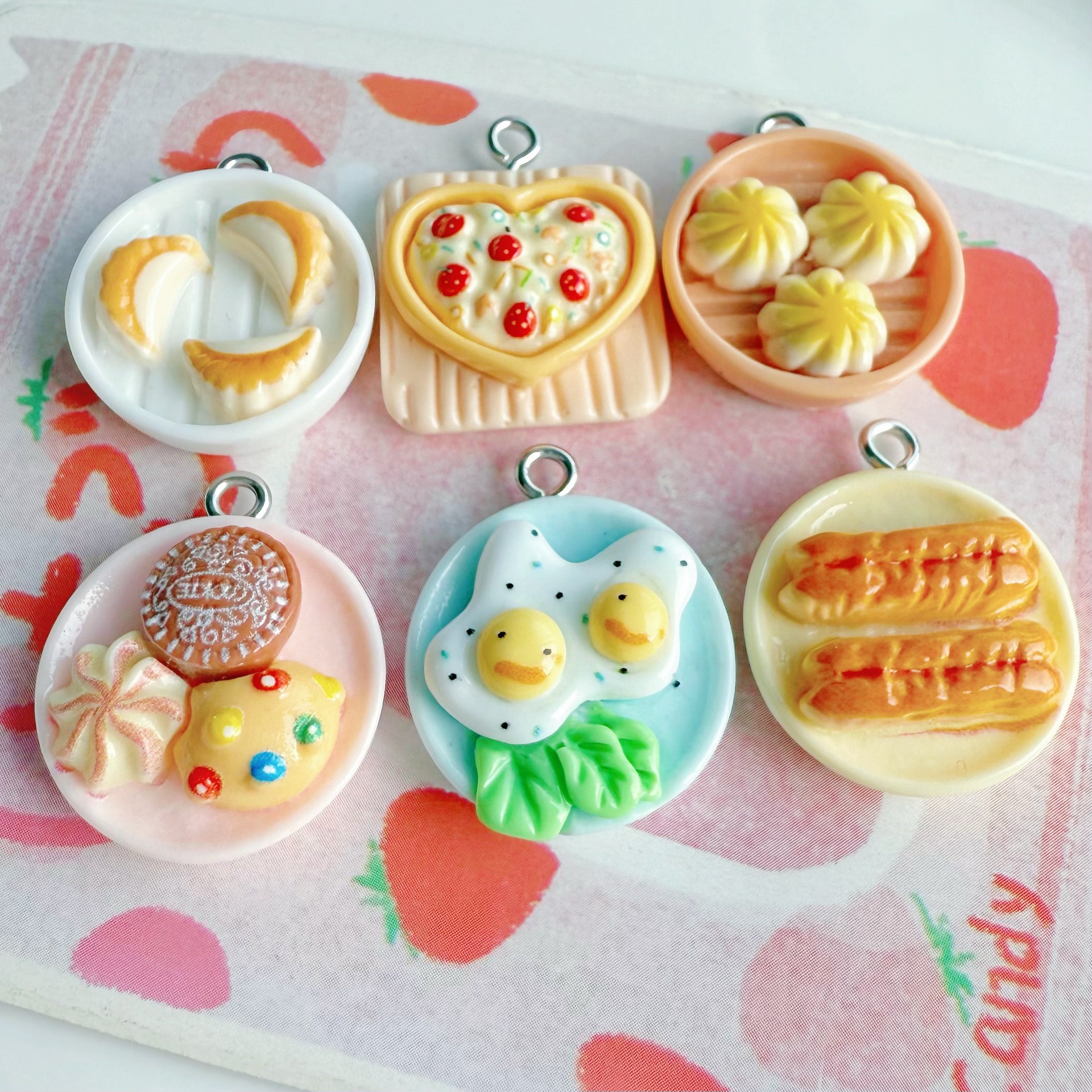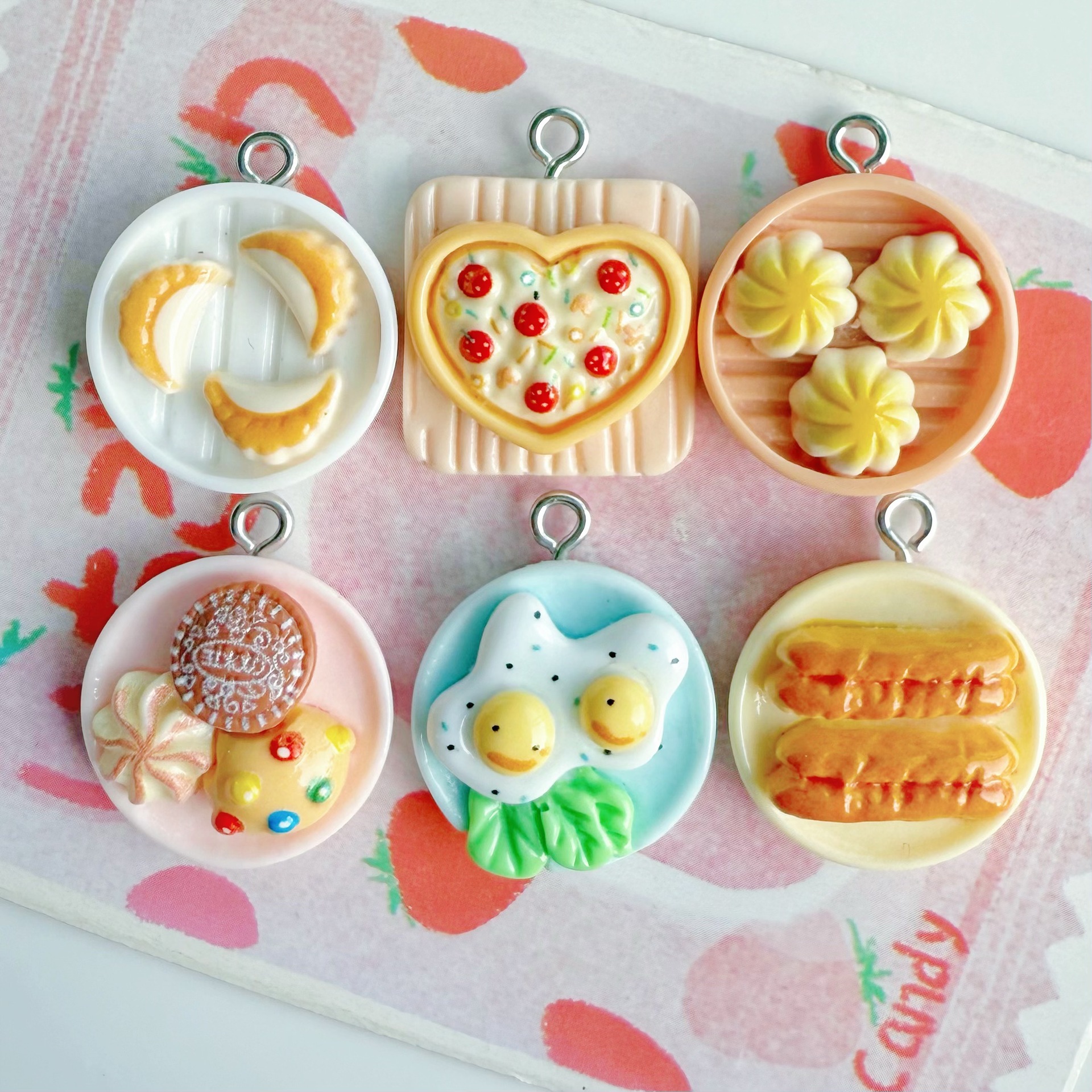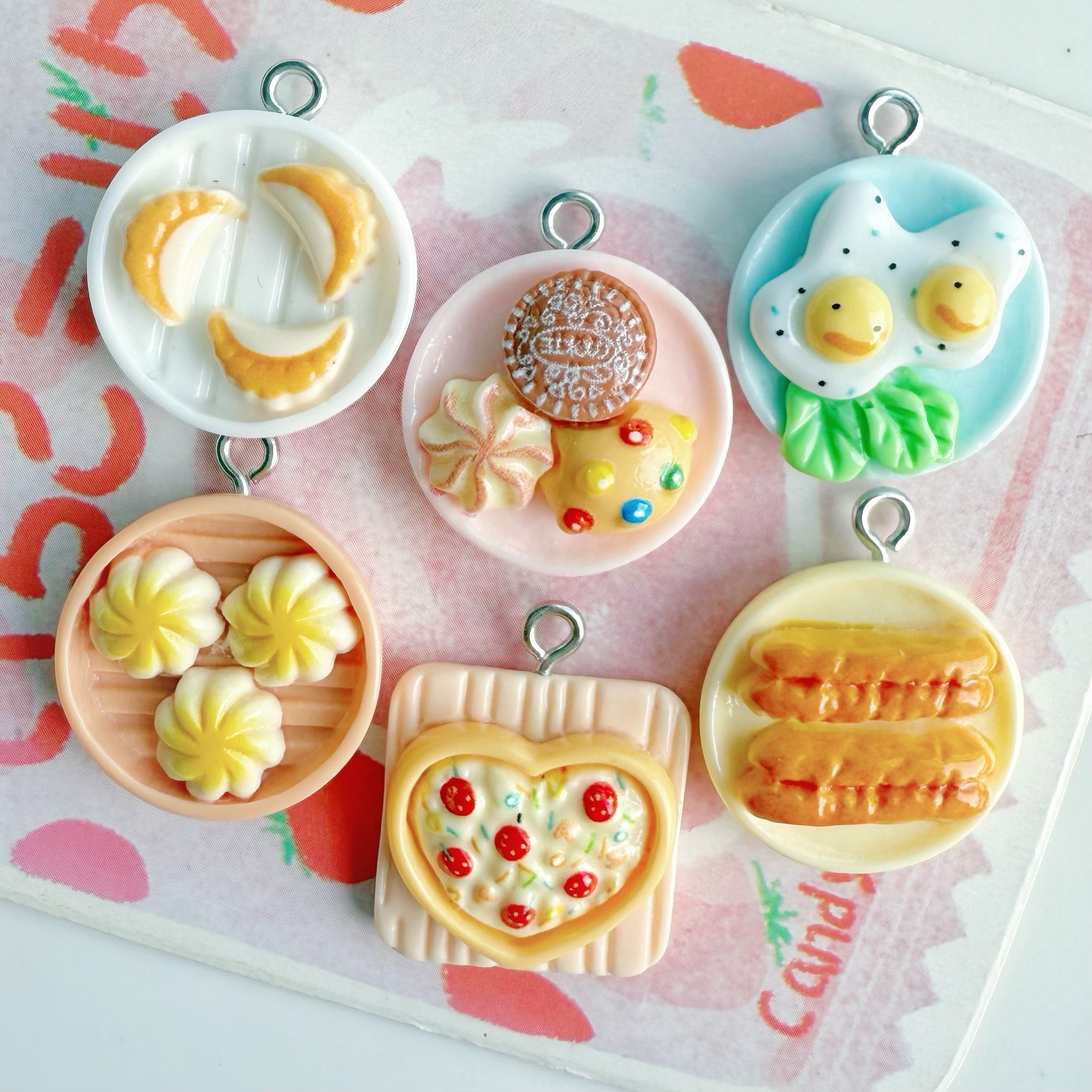 모조 음식과 아침 식사 빵 수지 액세서리 diy 보석 펜던트 펜던트 키 체인 장식 재료 배치