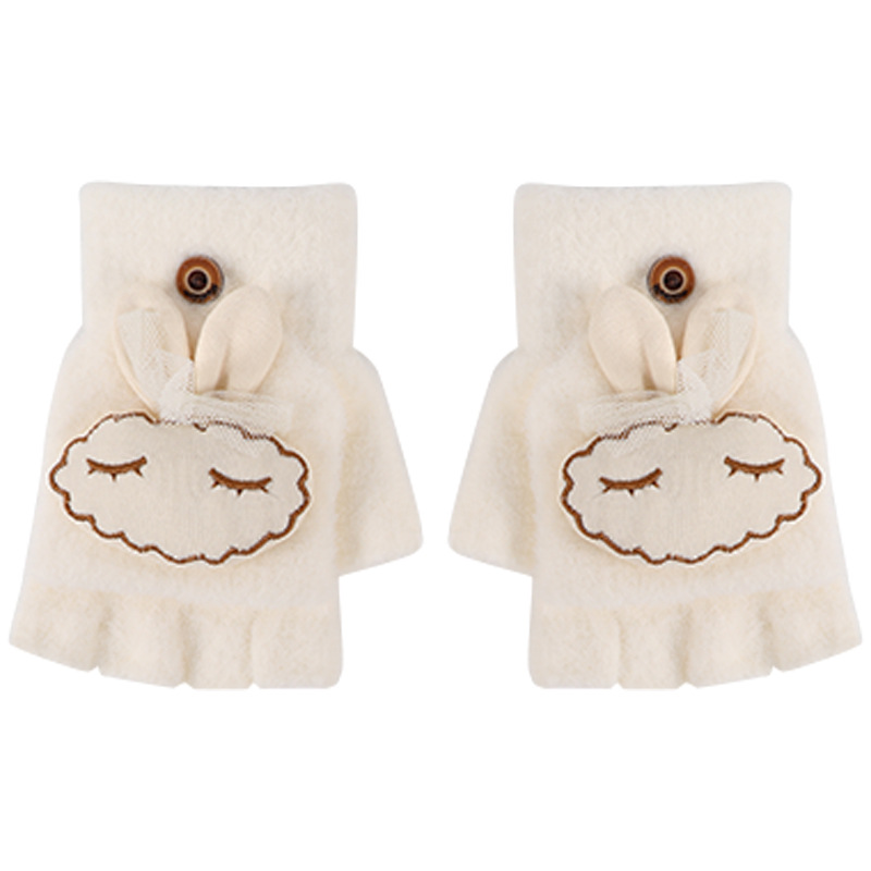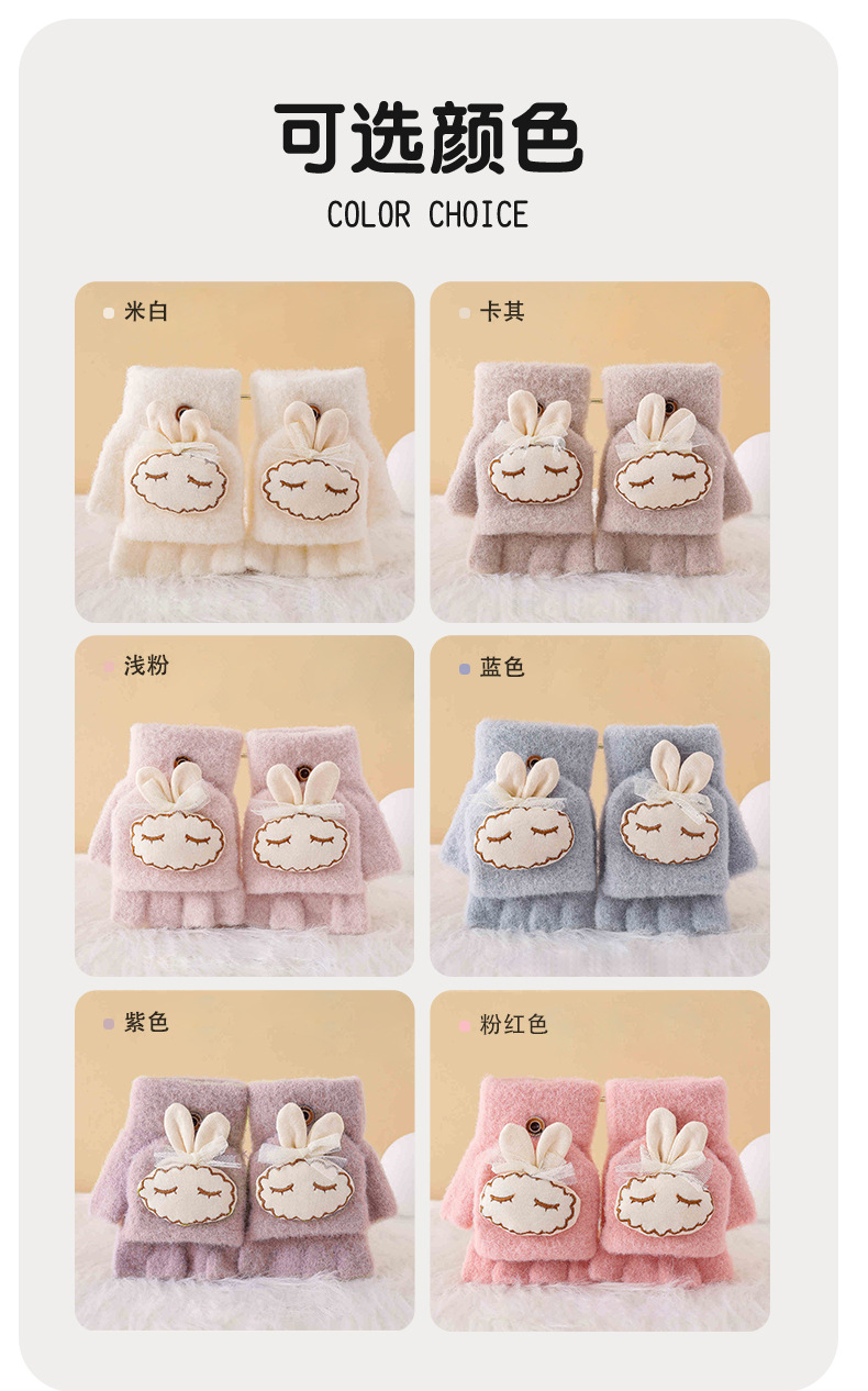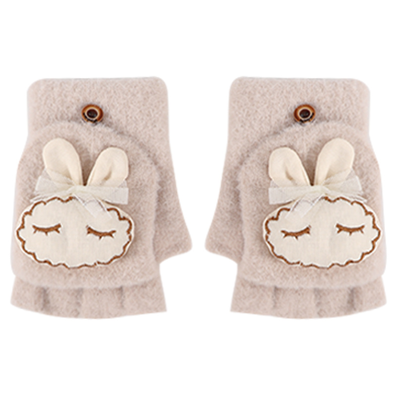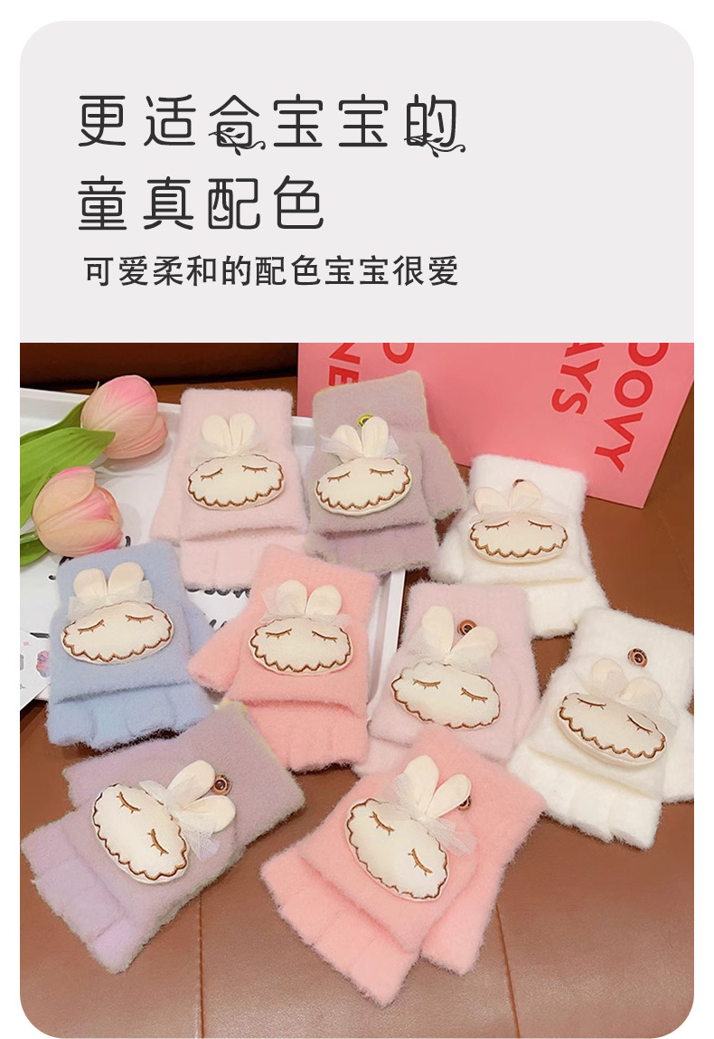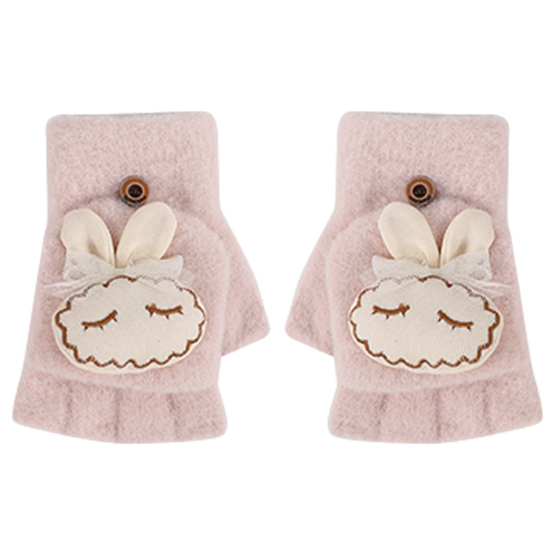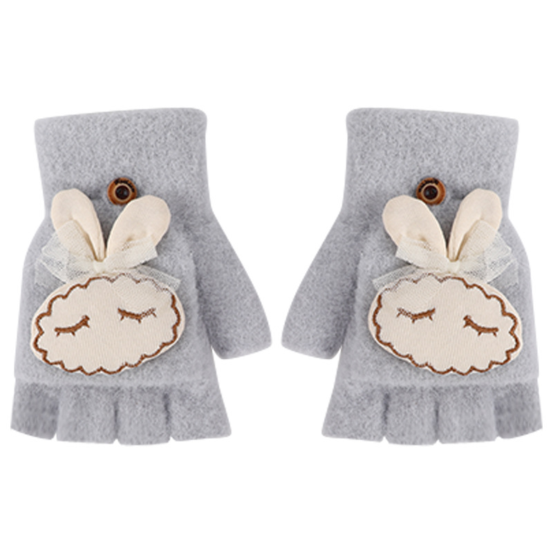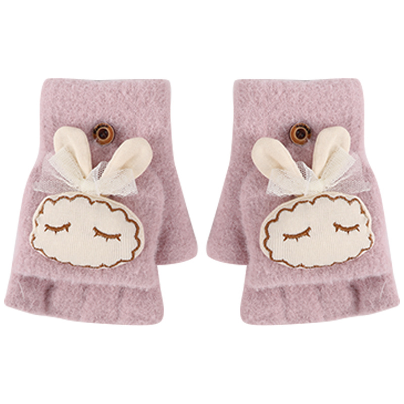 가을과 겨울 반 손가락 플립 어린이 장갑 학생 따뜻한 부동액 귀여운 만화 토끼 손가락 장갑 쓰기스토어 가기