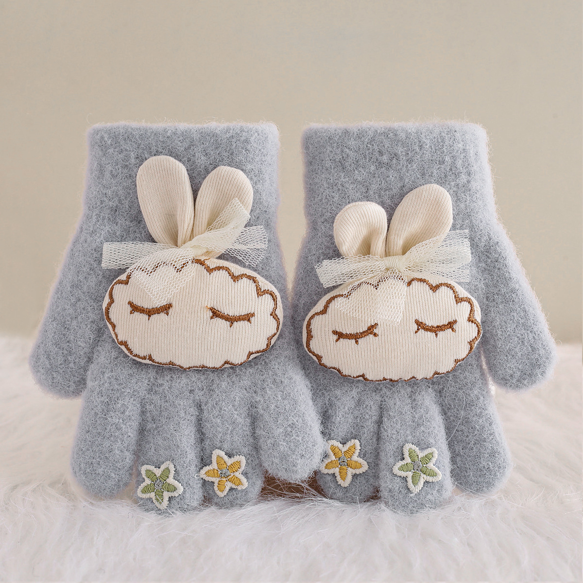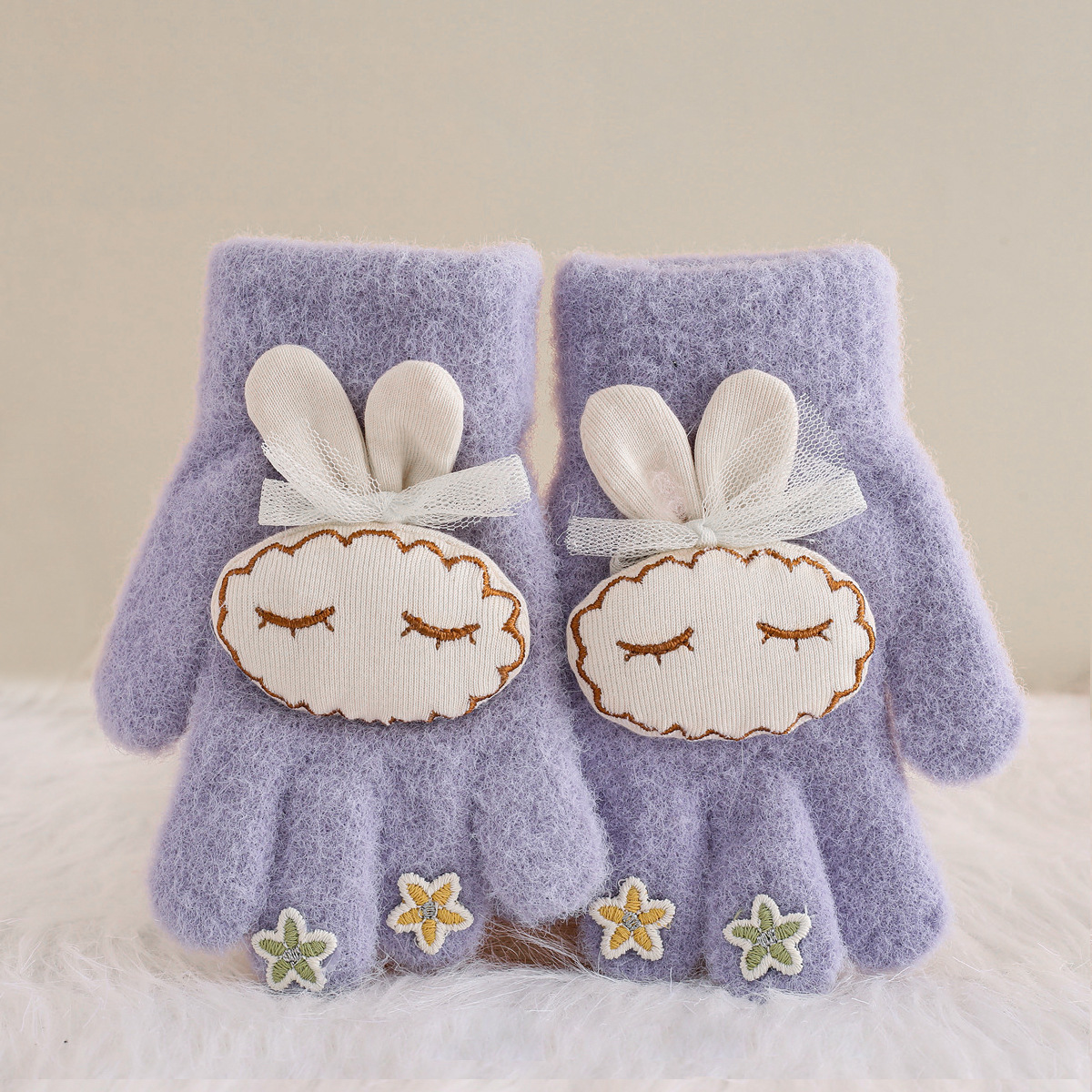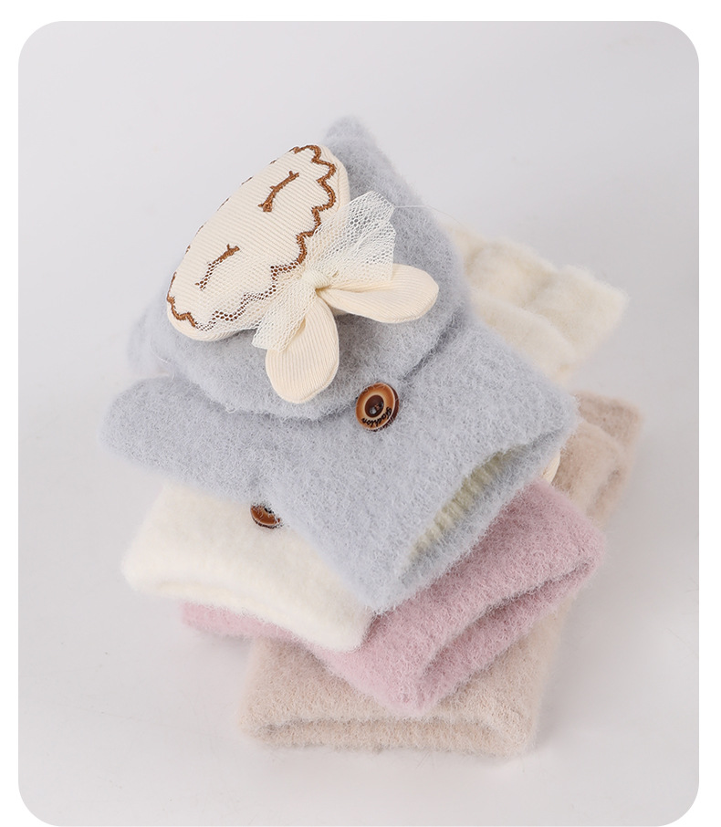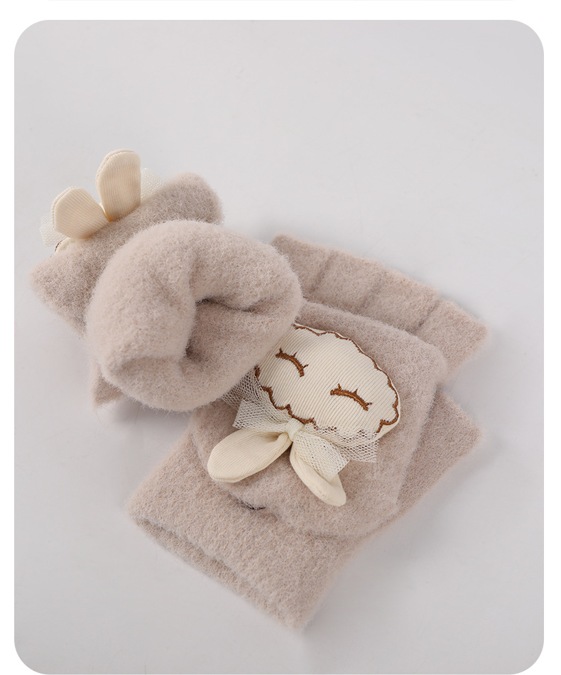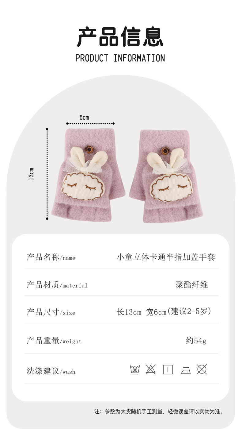 가을과 겨울 반 손가락 플립 어린이 장갑 학생 따뜻한 부동액 귀여운 만화 토끼 손가락 장갑 쓰기스토어 가기