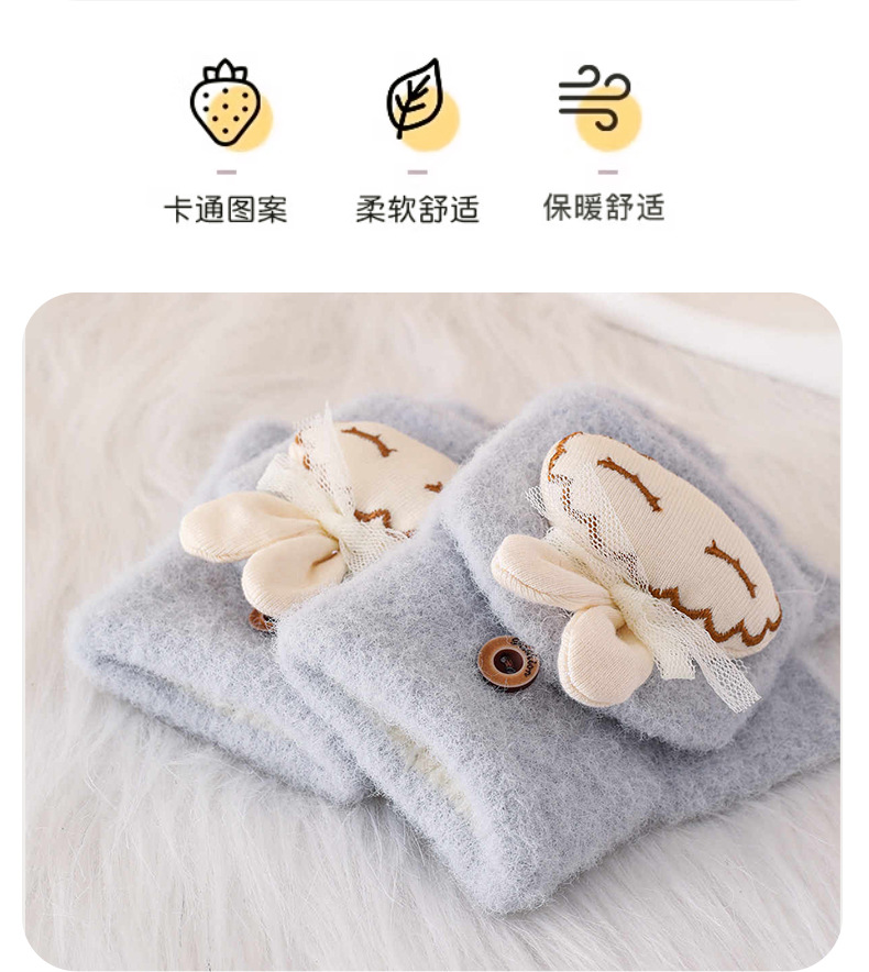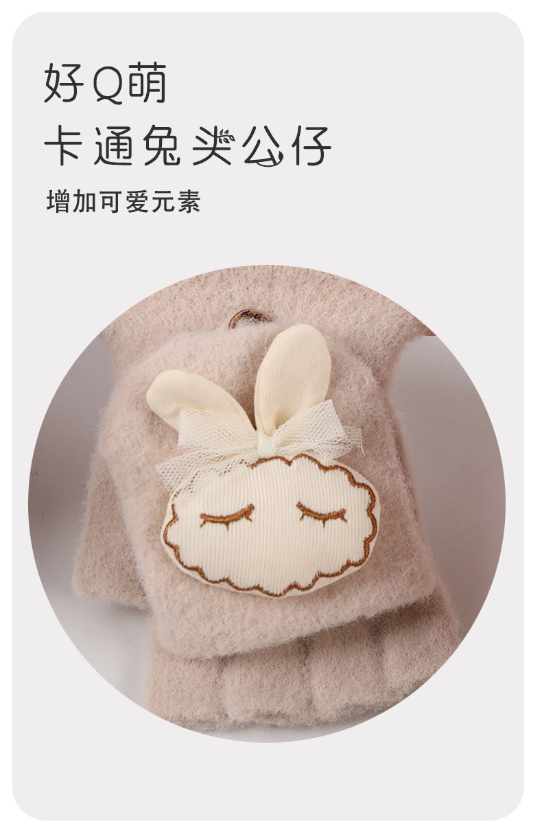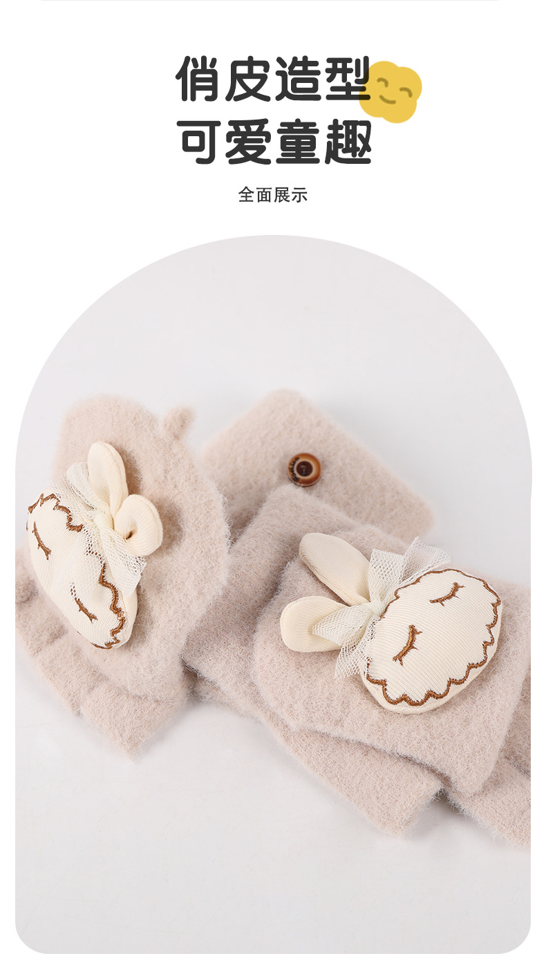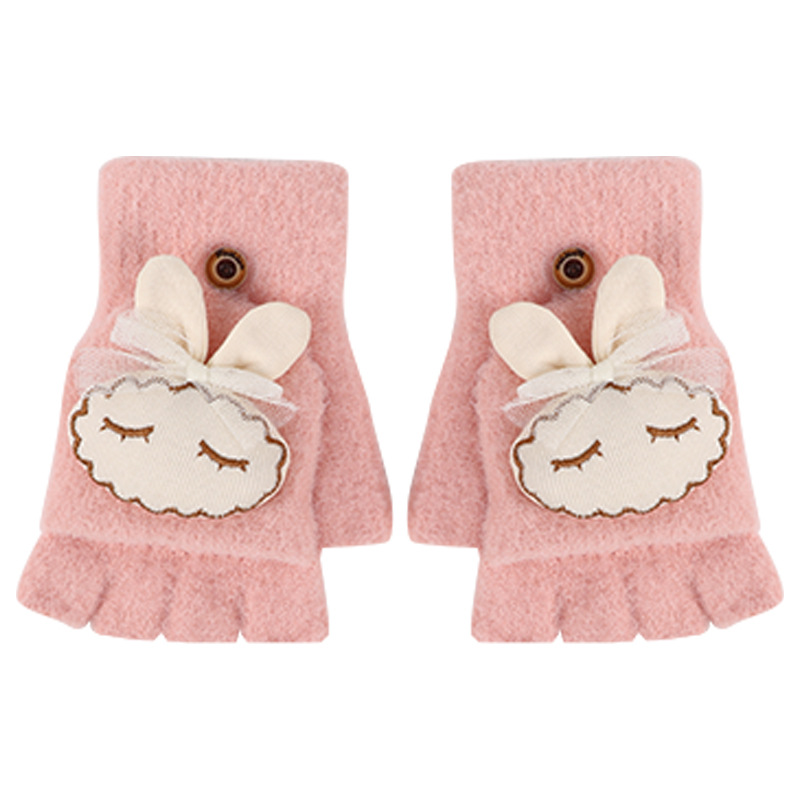 가을과 겨울 반 손가락 플립 어린이 장갑 학생 따뜻한 부동액 귀여운 만화 토끼 손가락 장갑 쓰기