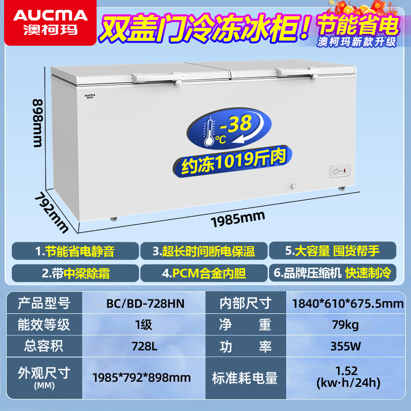 옥마 냉동고 상업용 대용량 전체 냉동고 냉장고 수평 냉장고 단일 온도 냉동 냉장고