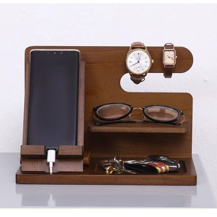 단단한 나무 스토리지 랙 사무실 데스크탑 휴대 전화 홀더 안경 시계 스토리지 랙 크리 에이 티브 간단한 스토리지 랙