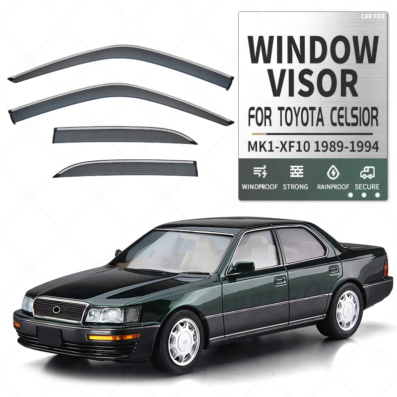 • Toyota Celsior [MK1-XF10 1989-1994] [밝은 스트립 포함] 창문 레인 쉴드