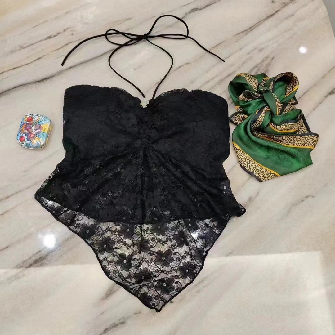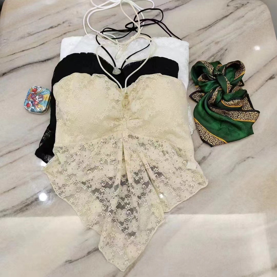 순수한 욕망 섹시한 목 튜브 최고의 여자 조끼 가슴 패드 프랑스 로맨틱 섹시한 백리스 우아한 할로우 레이스 탑스토어 가기