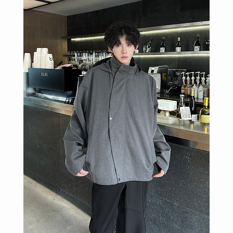 재고! 하이 퀄리티 남성 줄무늬 질감 세트 후드 재킷 코트 JK72-5118스토어 가기