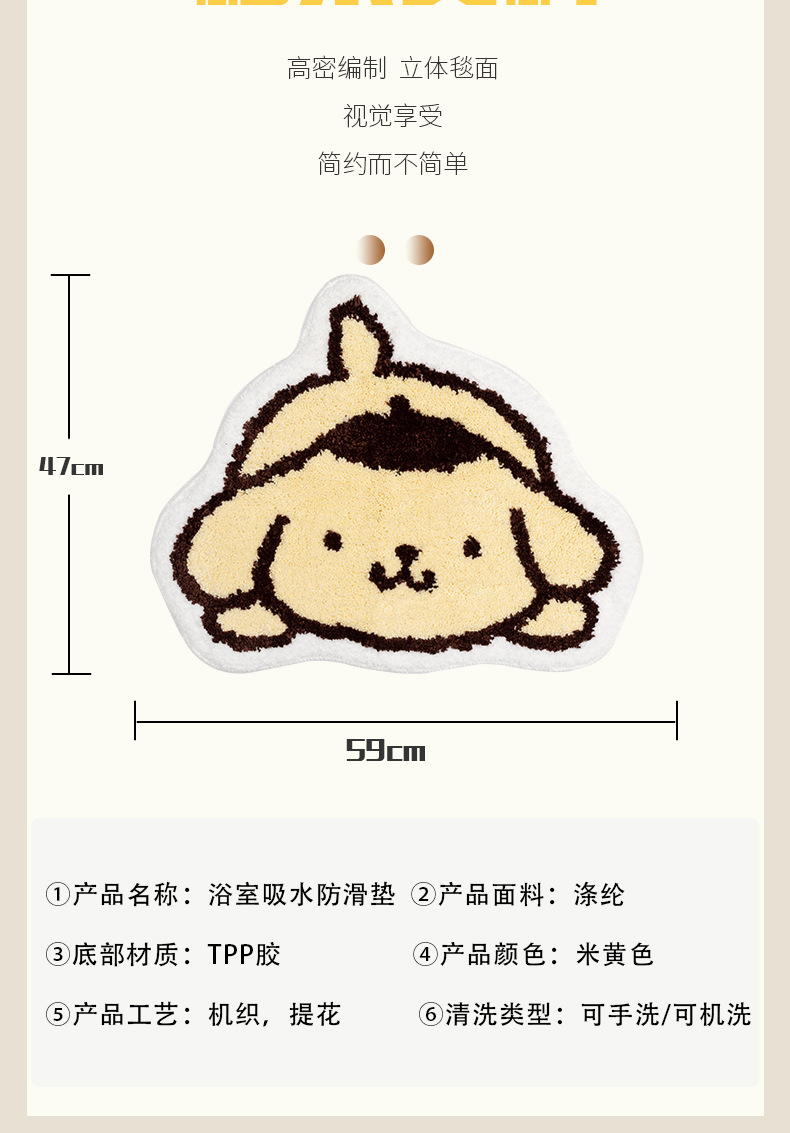 만화 푸딩개 침실 귀여운 바닥매트 욕실 전용 흡수성 플러시 발매트 특수 모양 플러시 카펫 도매