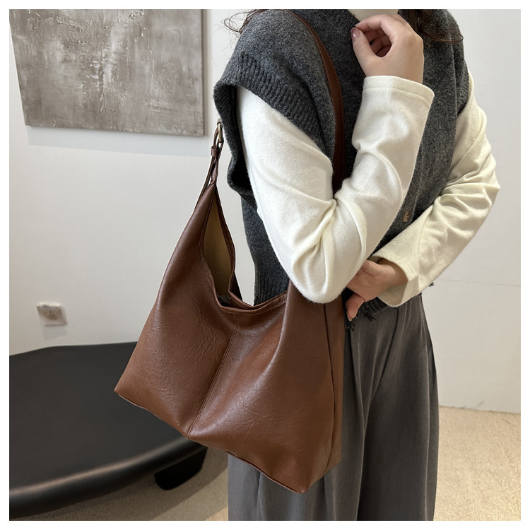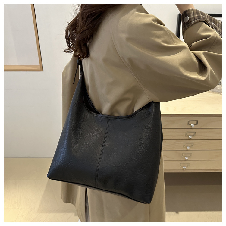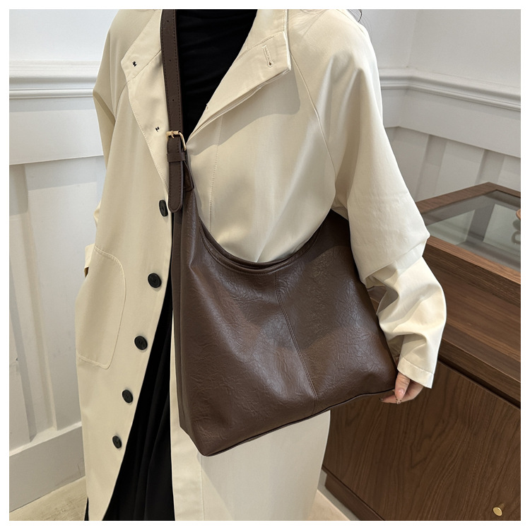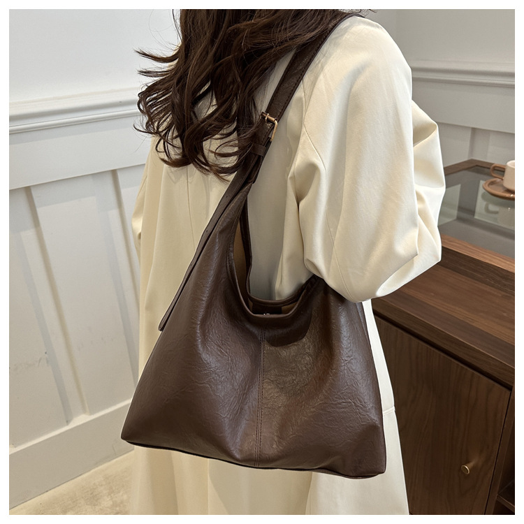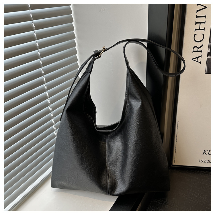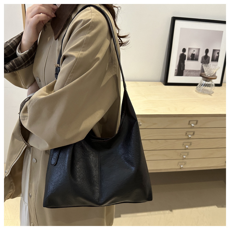 대용량 통근 가방 여성의 2024 가을 및 겨울 새로운 틈새 레트로 어깨 가방 간단한 질감 크로스 바디 토트 백