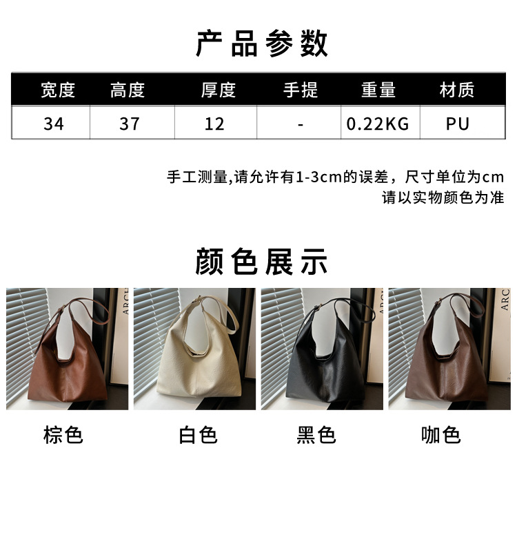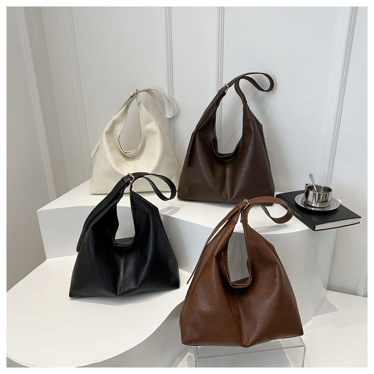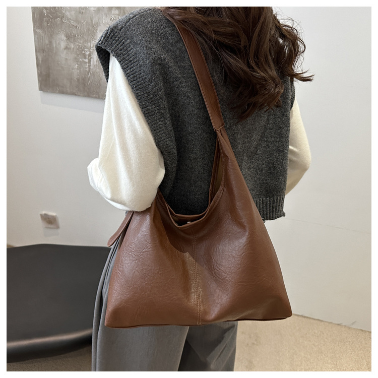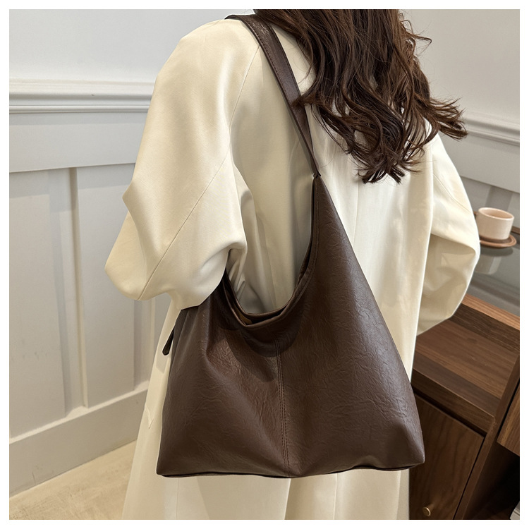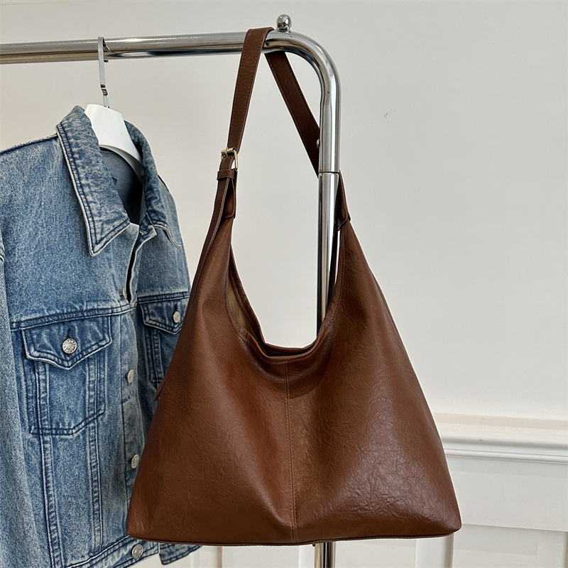 대용량 통근 가방 여성의 2024 가을 및 겨울 새로운 틈새 레트로 어깨 가방 간단한 질감 크로스 바디 토트 백