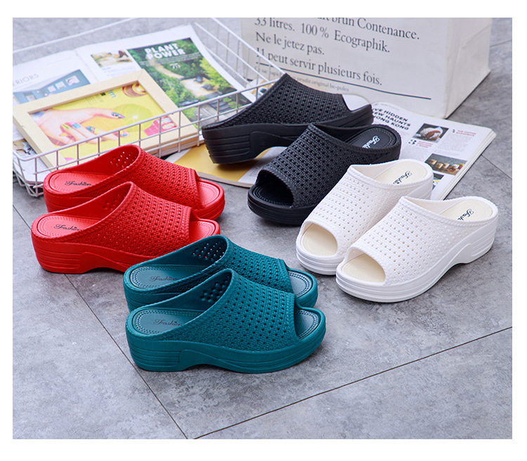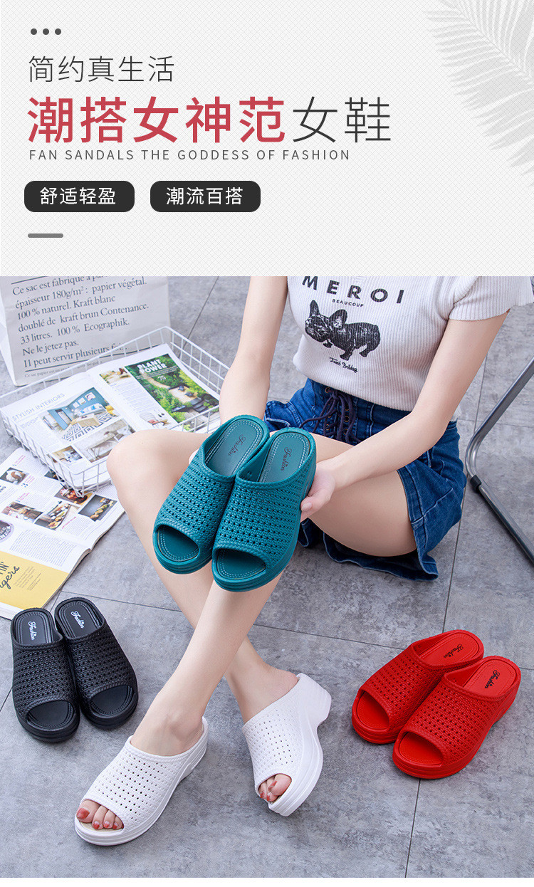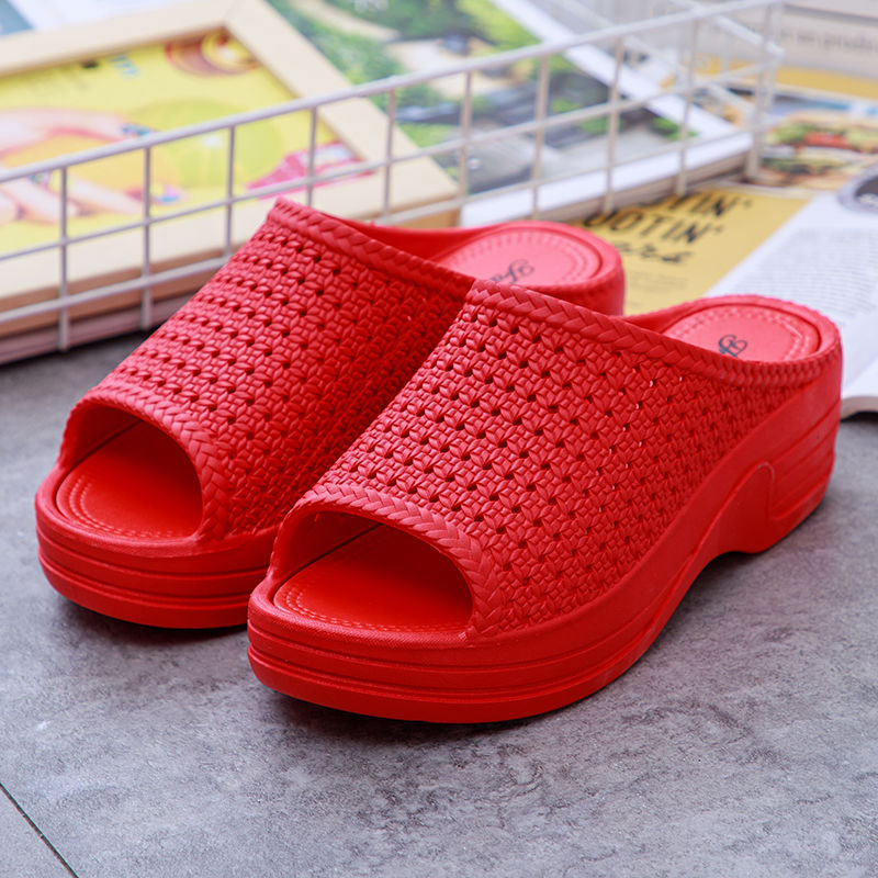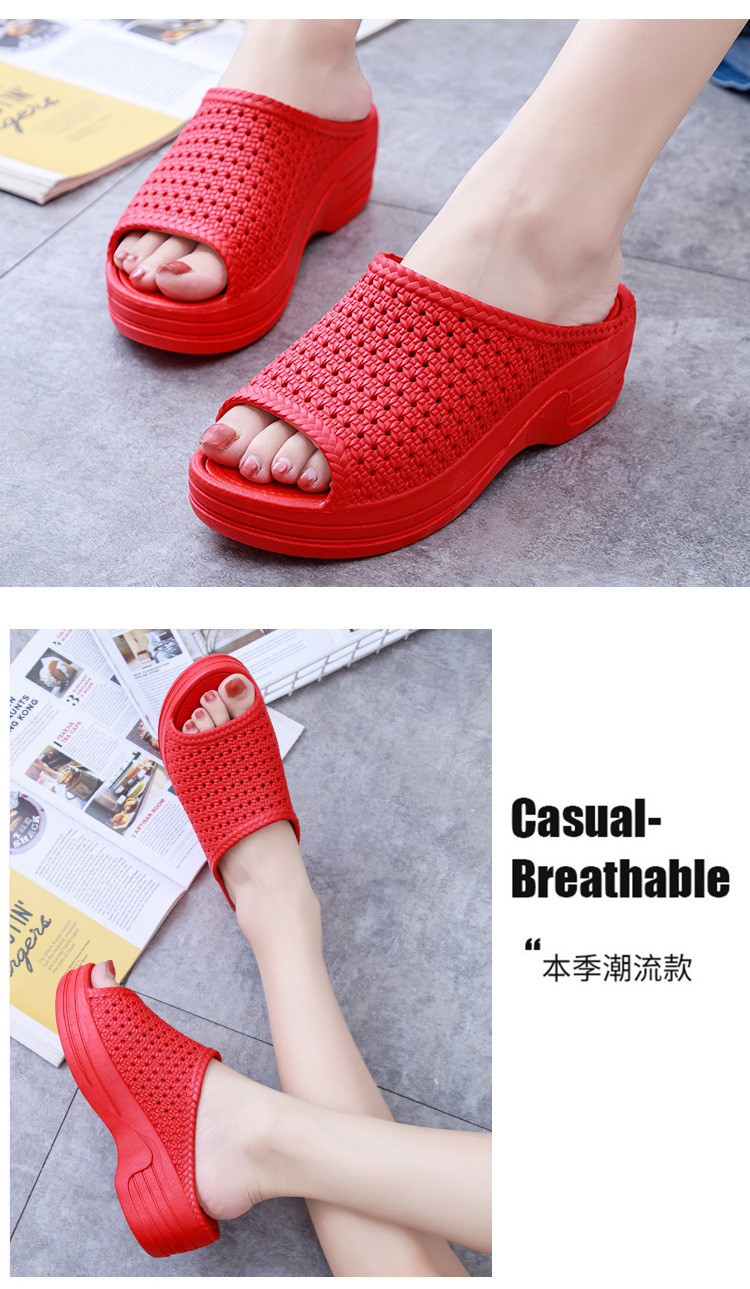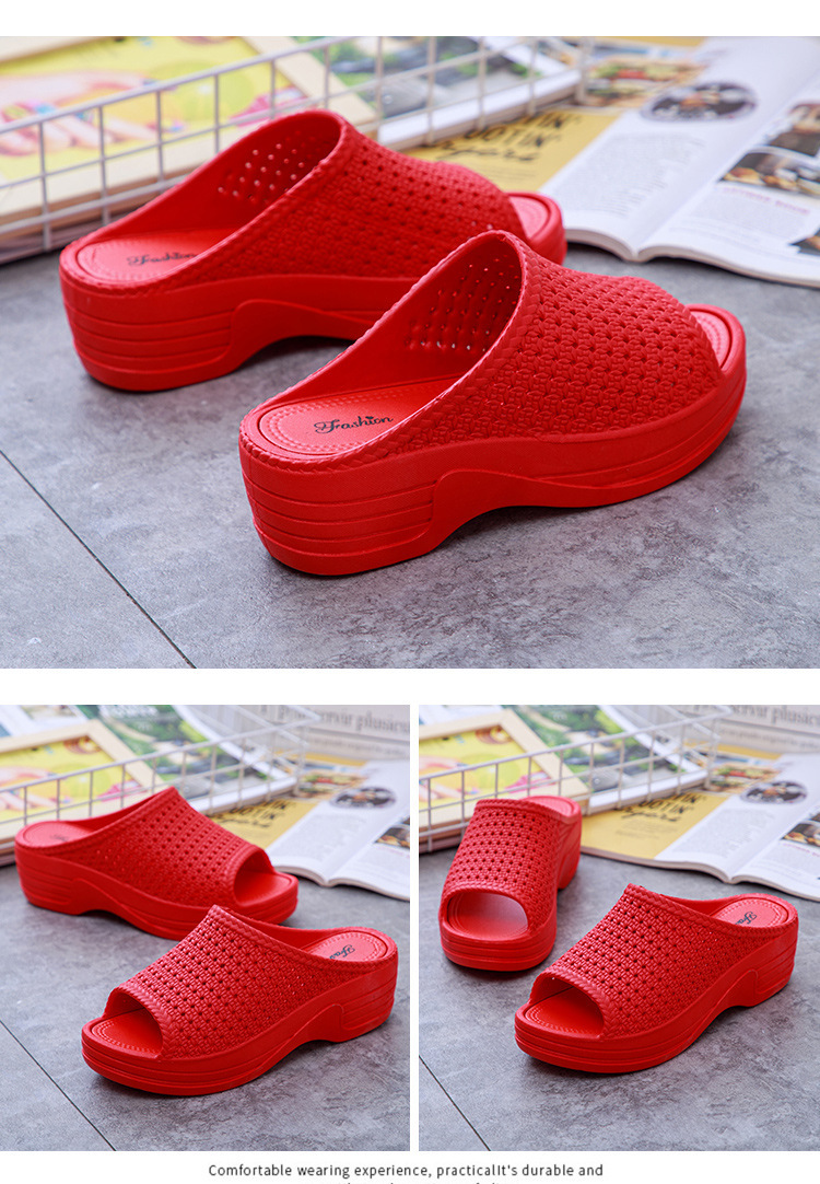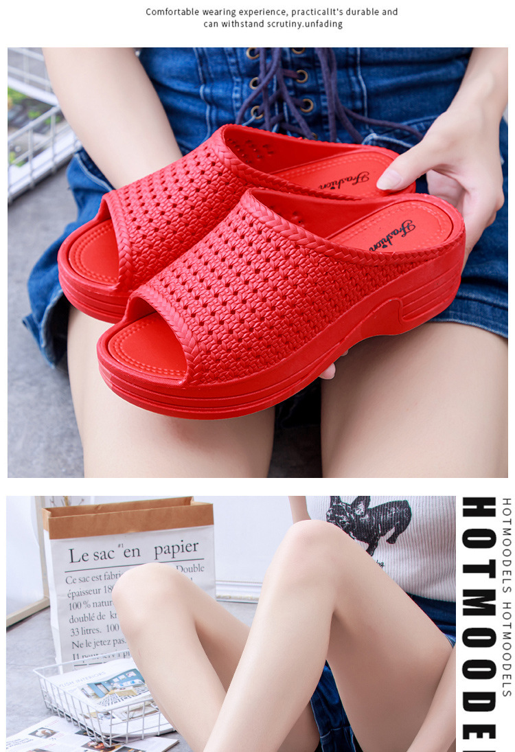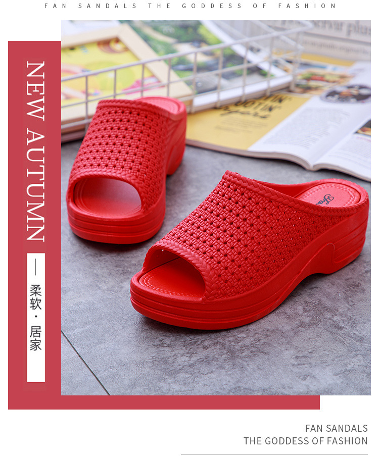아웃웨어 패션 그물 하이힐 미끄럼 방지 여름 실내 플랫폼 신발 여성 슬리퍼 레드 샌들과 슬리퍼 쐐기 올매치스토어 가기