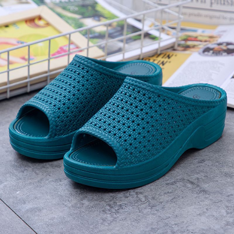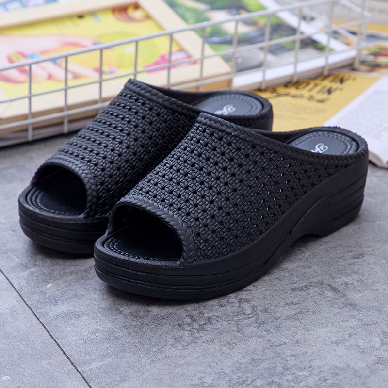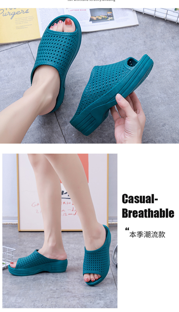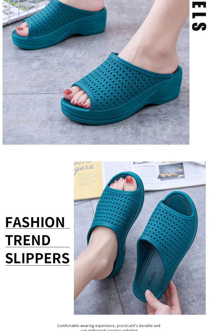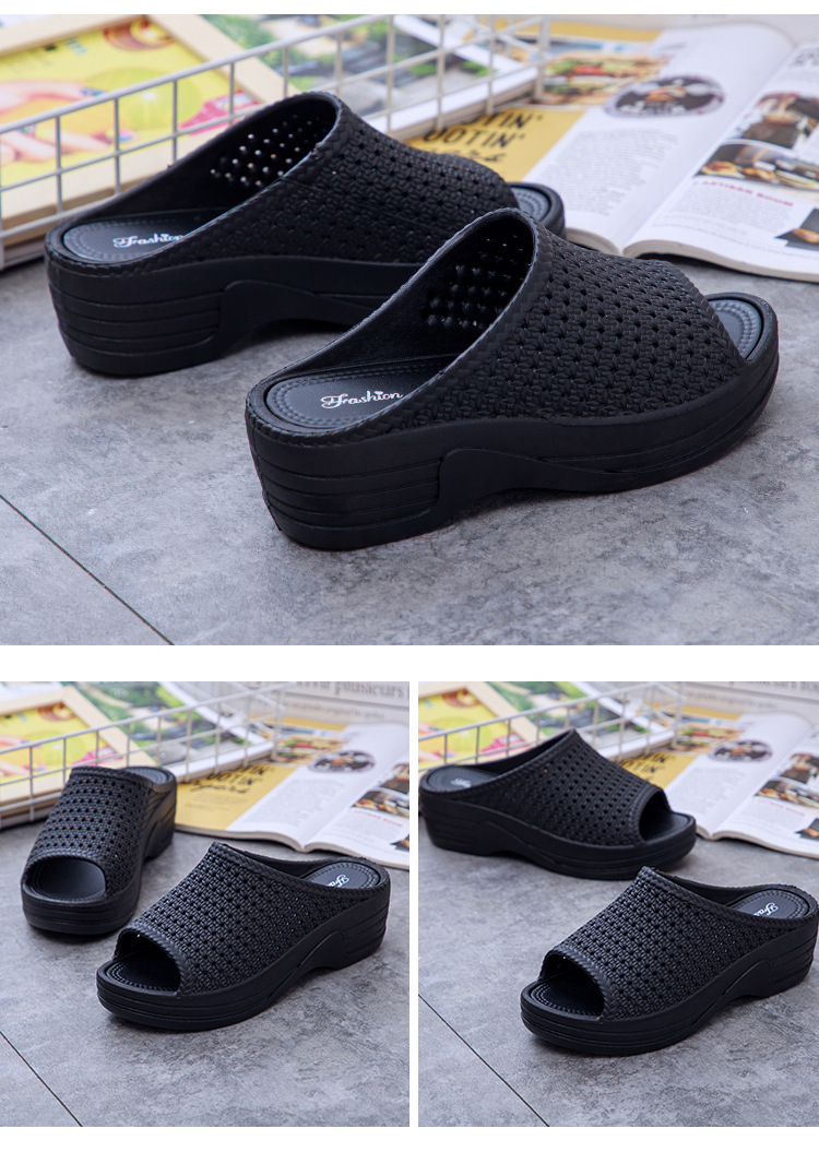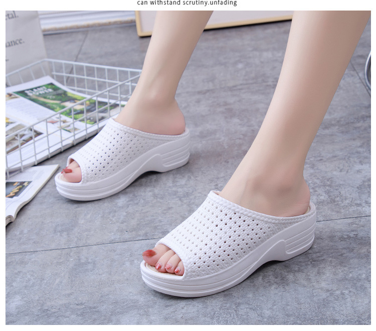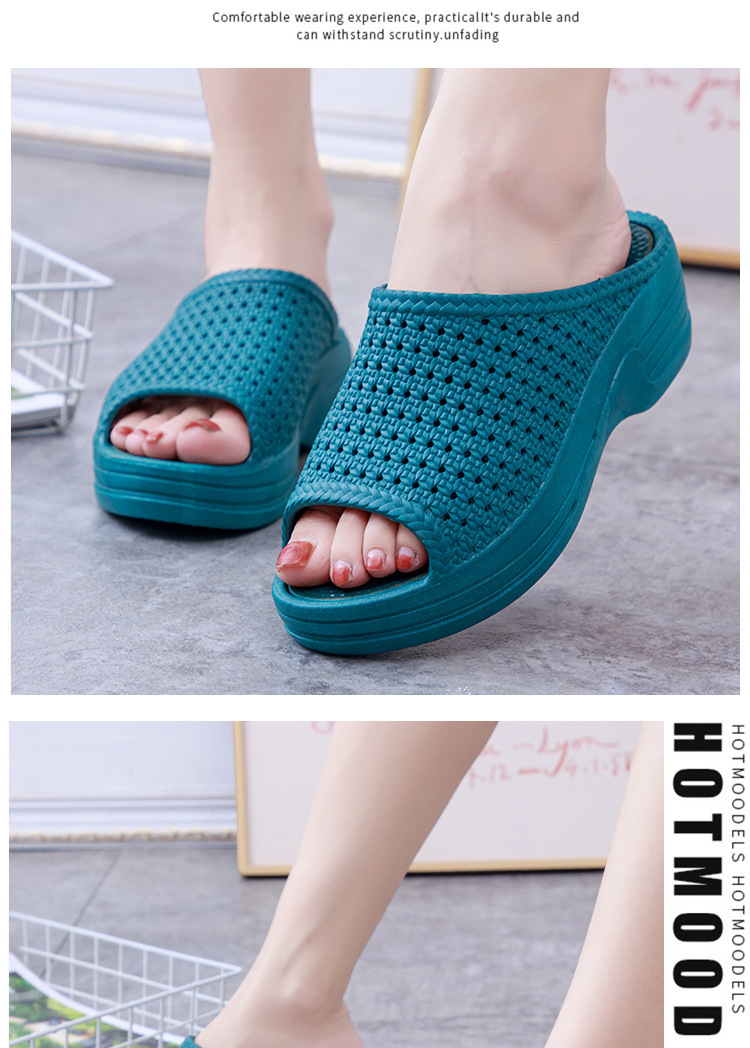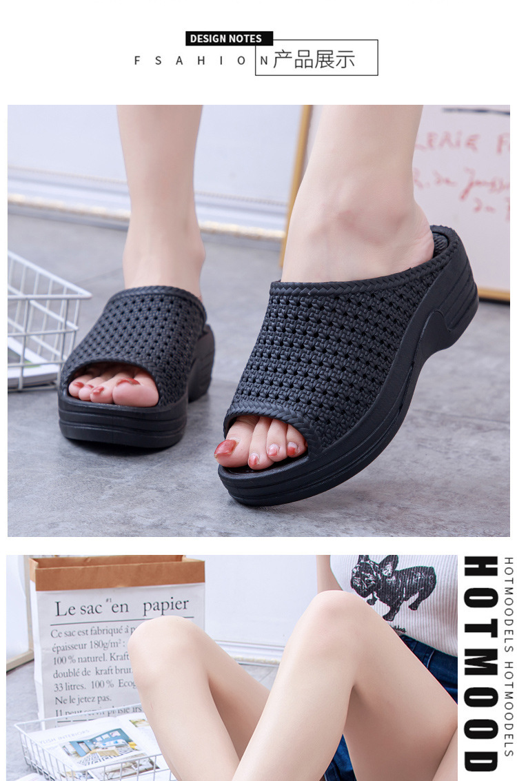 아웃웨어 패션 그물 하이힐 미끄럼 방지 여름 실내 플랫폼 신발 여성 슬리퍼 레드 샌들과 슬리퍼 쐐기 올매치스토어 가기