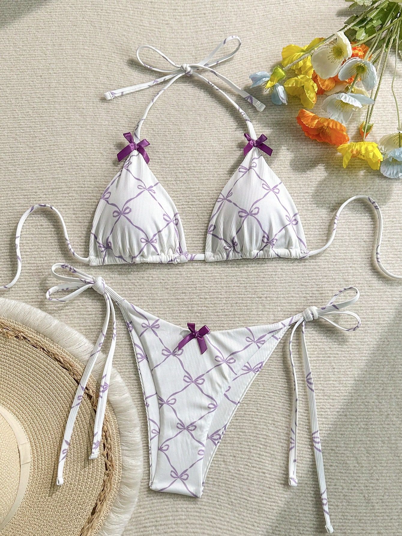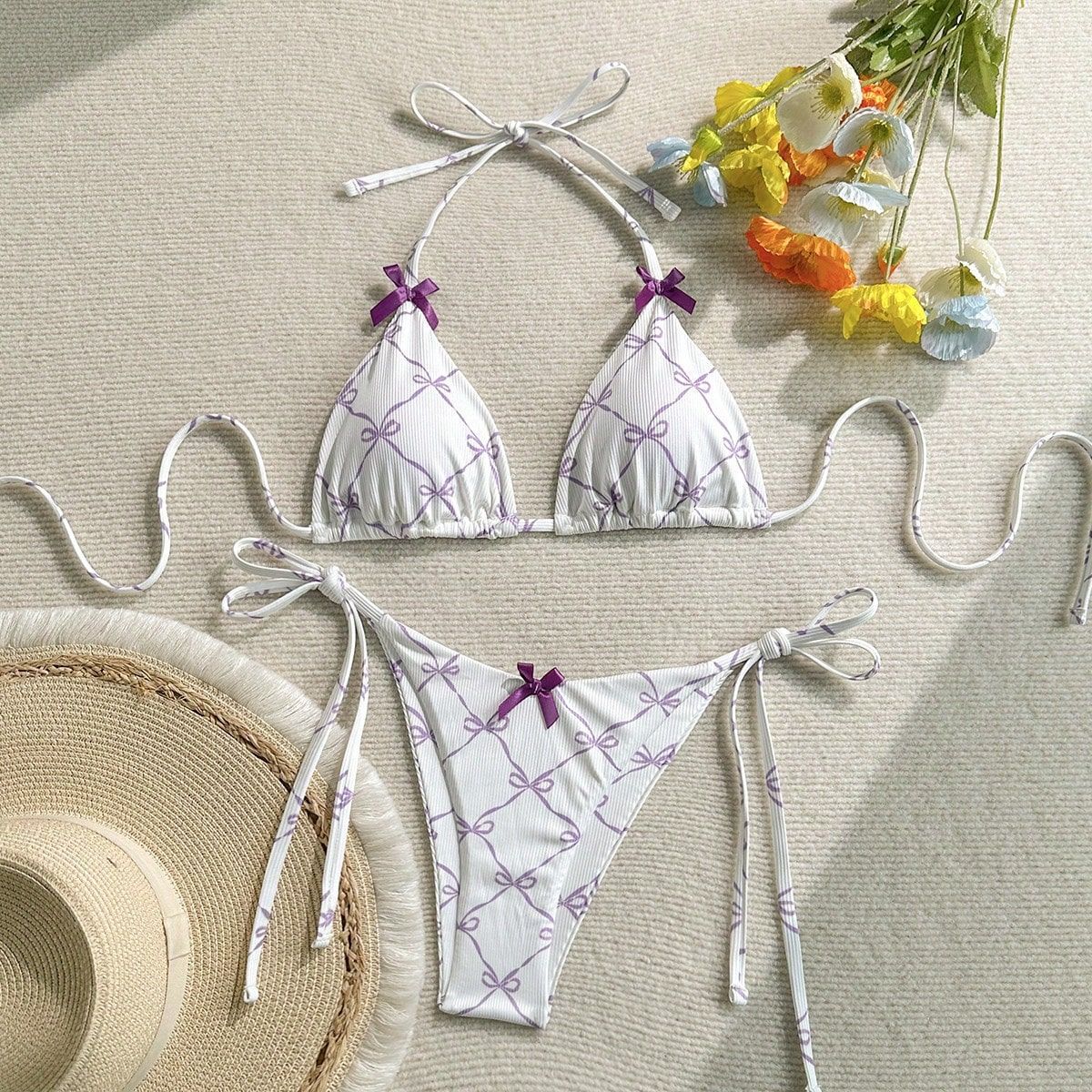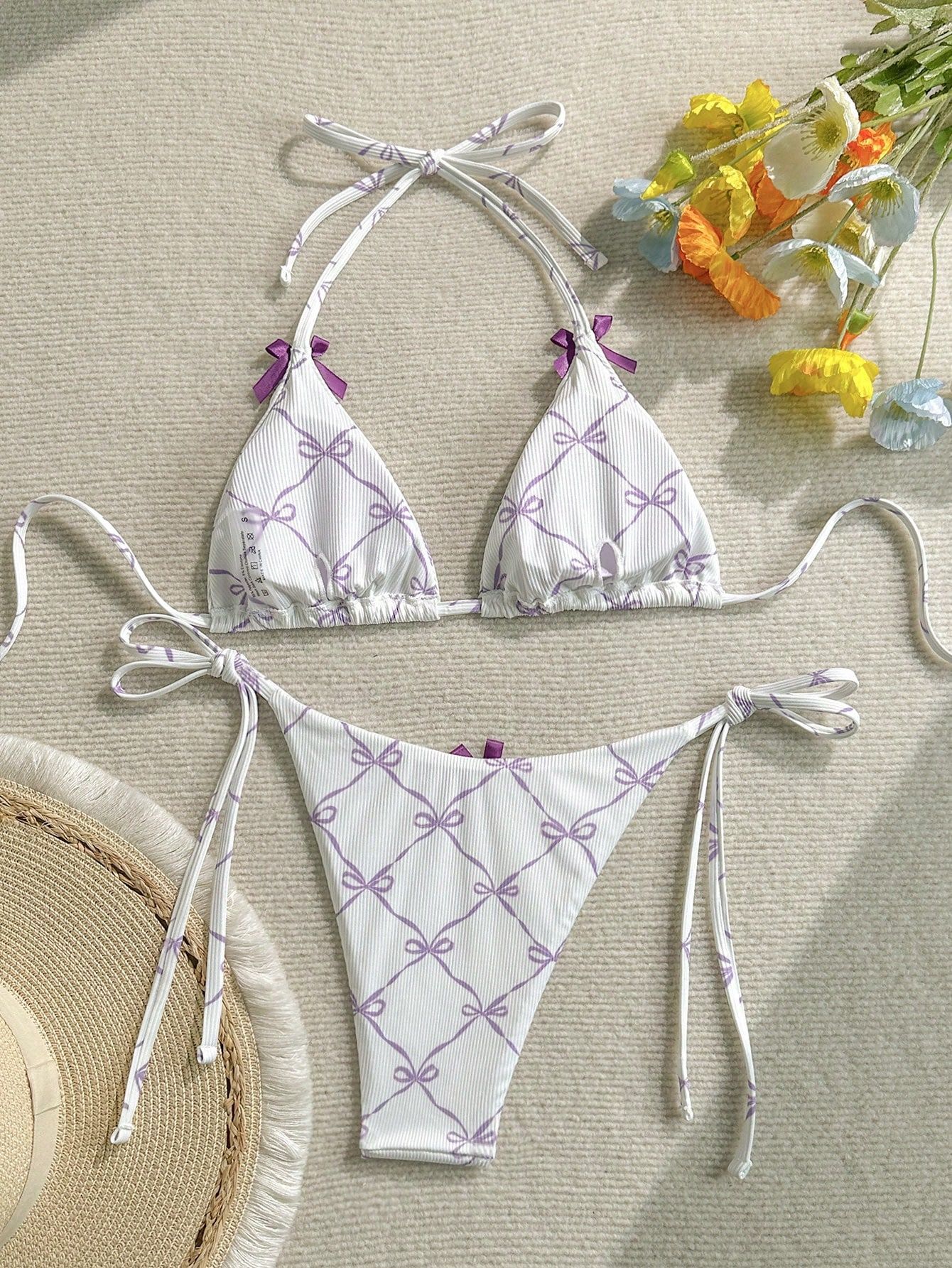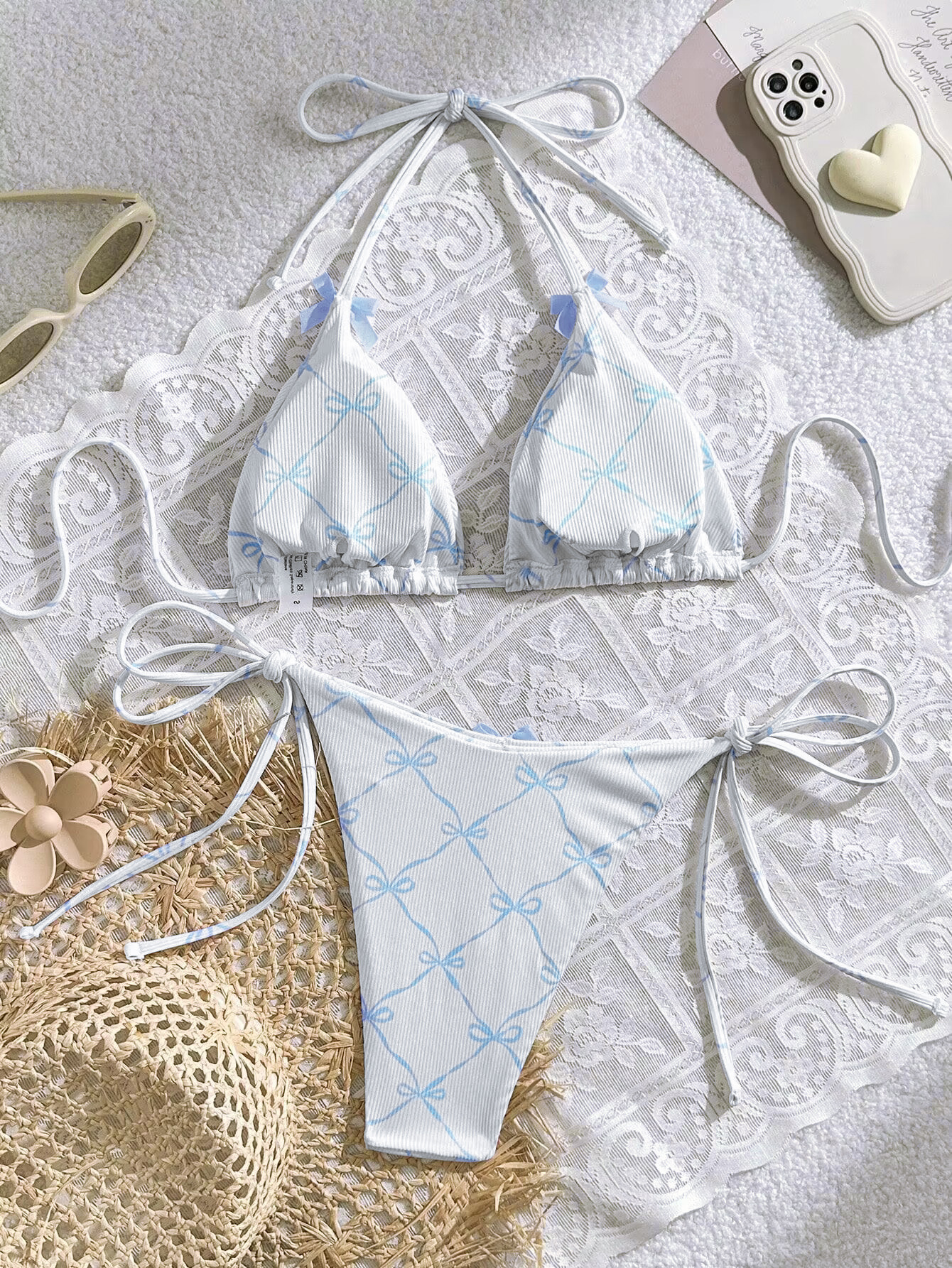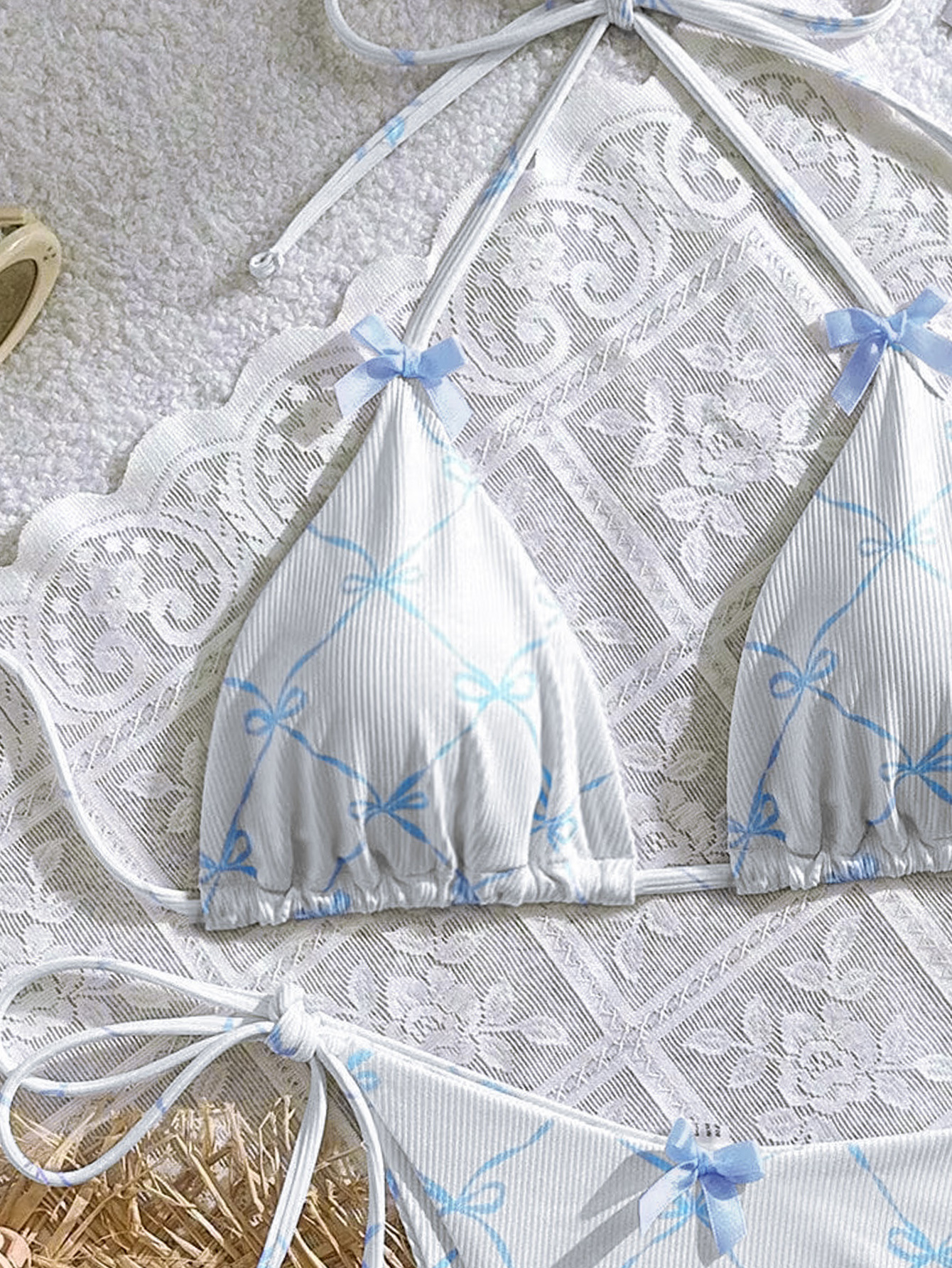 2024 수영복 새로운 섹시한 레이스 업 넥 유럽과 미국 비키니 여성 활 신선한 분할 수영복스토어 가기