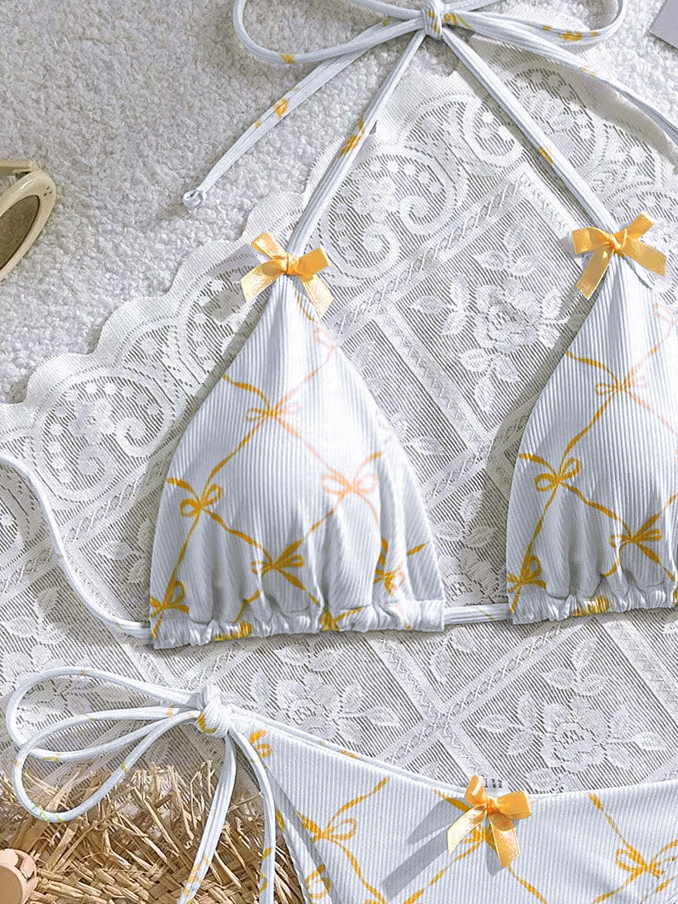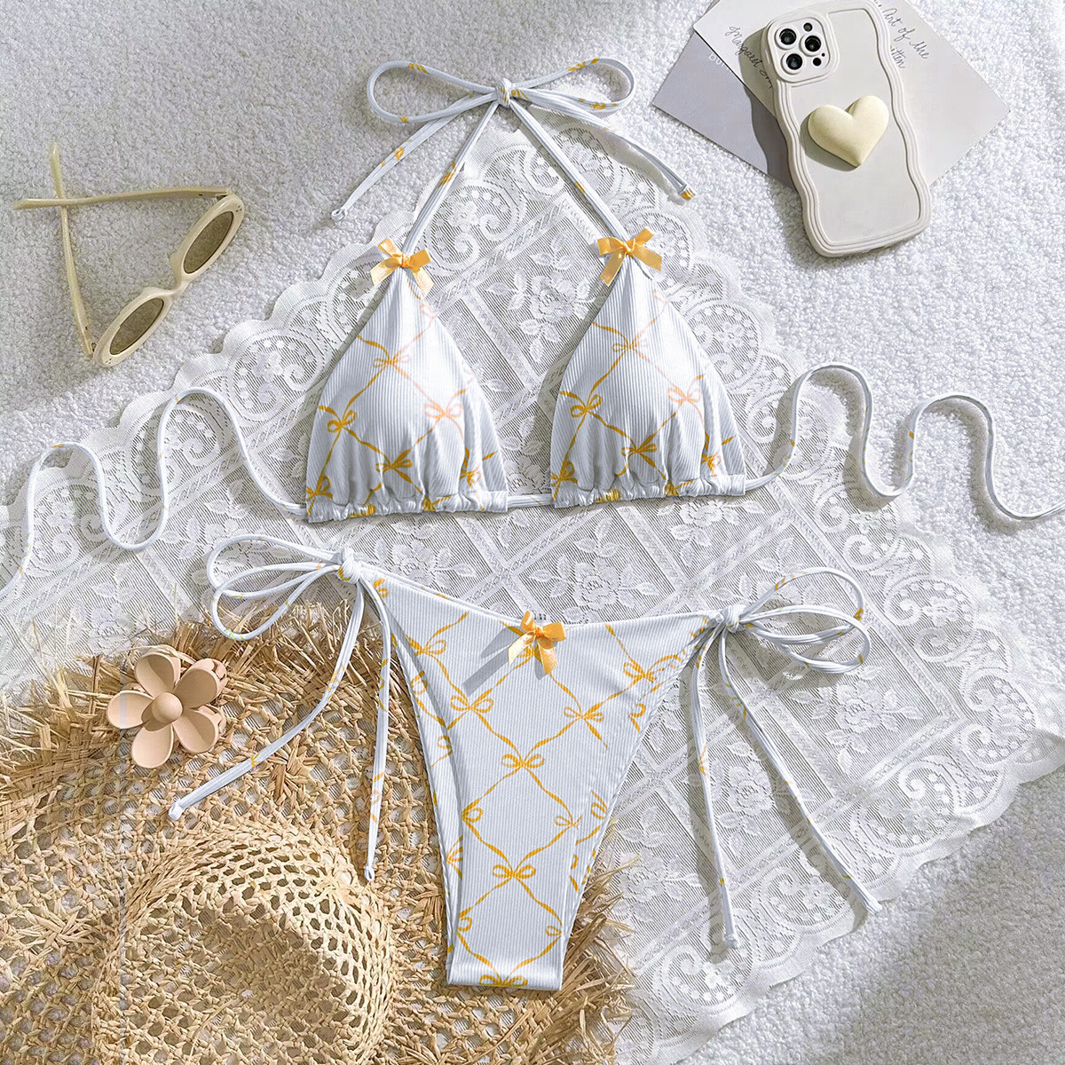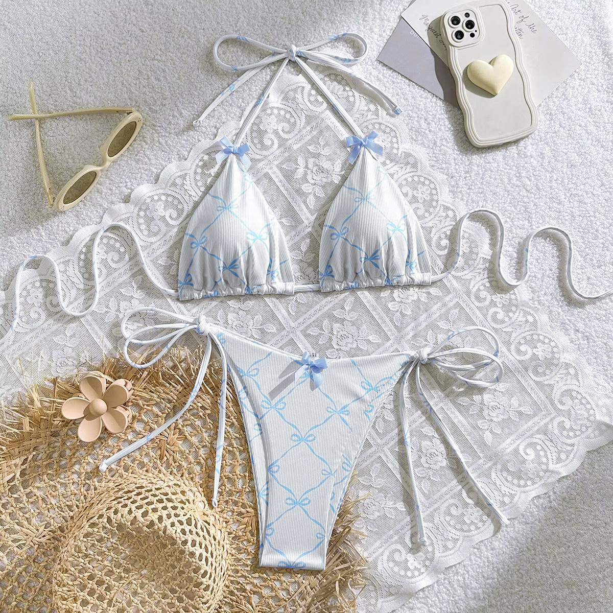 2024 수영복 새로운 섹시한 레이스 업 넥 유럽과 미국 비키니 여성 활 신선한 분할 수영복