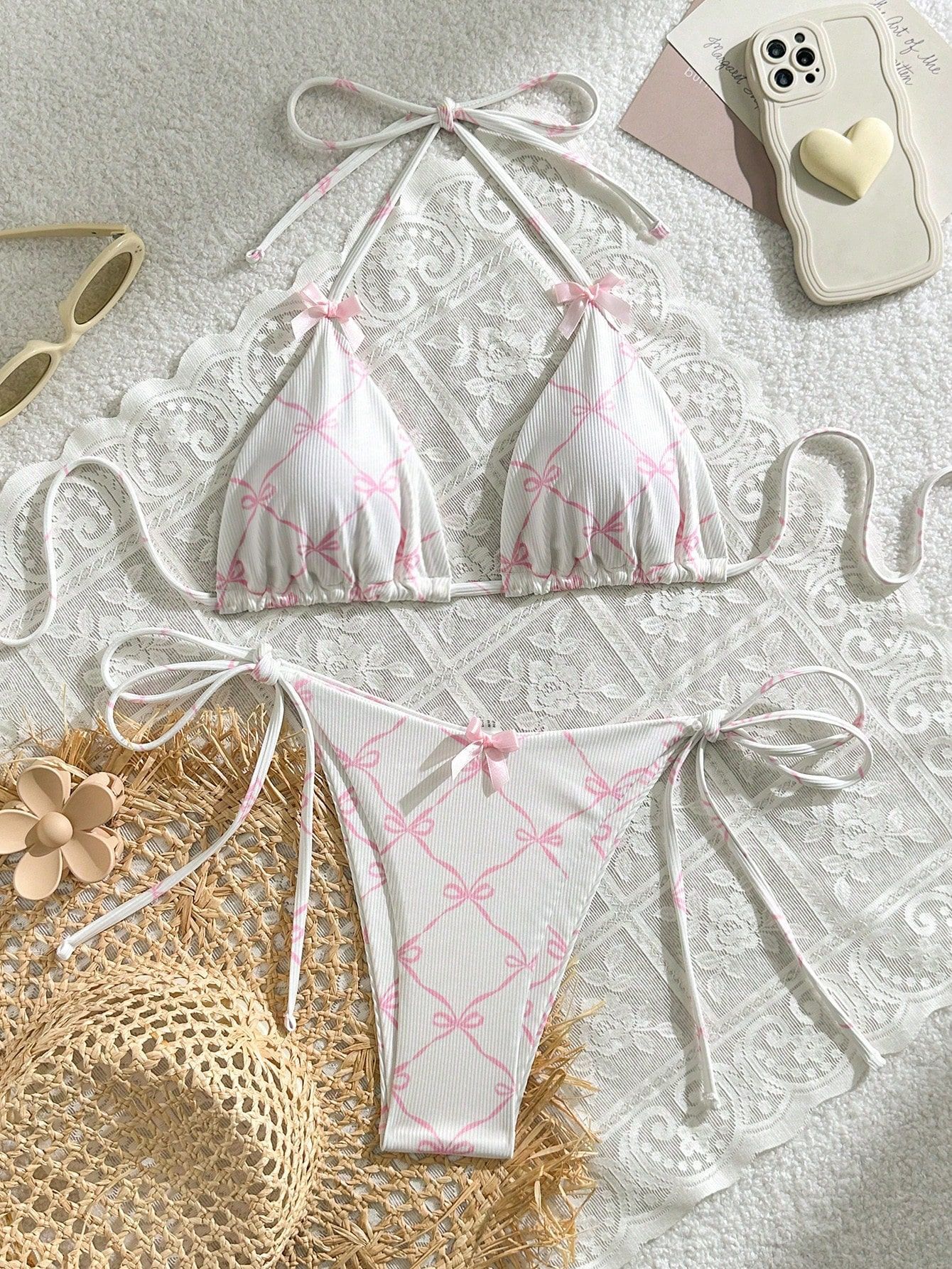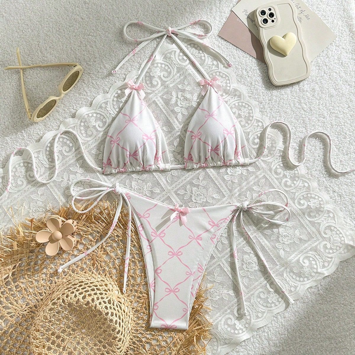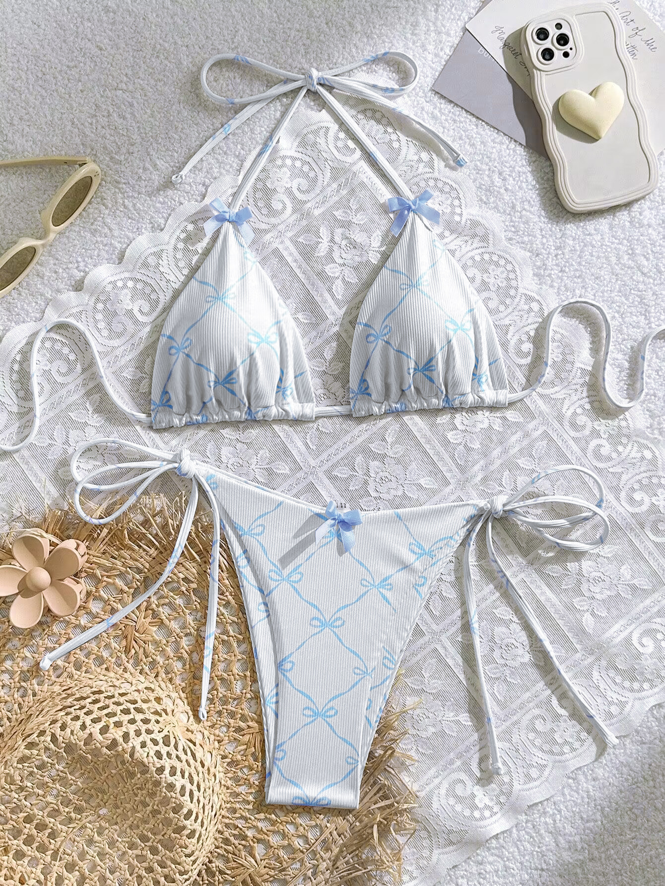2024 수영복 새로운 섹시한 레이스 업 넥 유럽과 미국 비키니 여성 활 신선한 분할 수영복