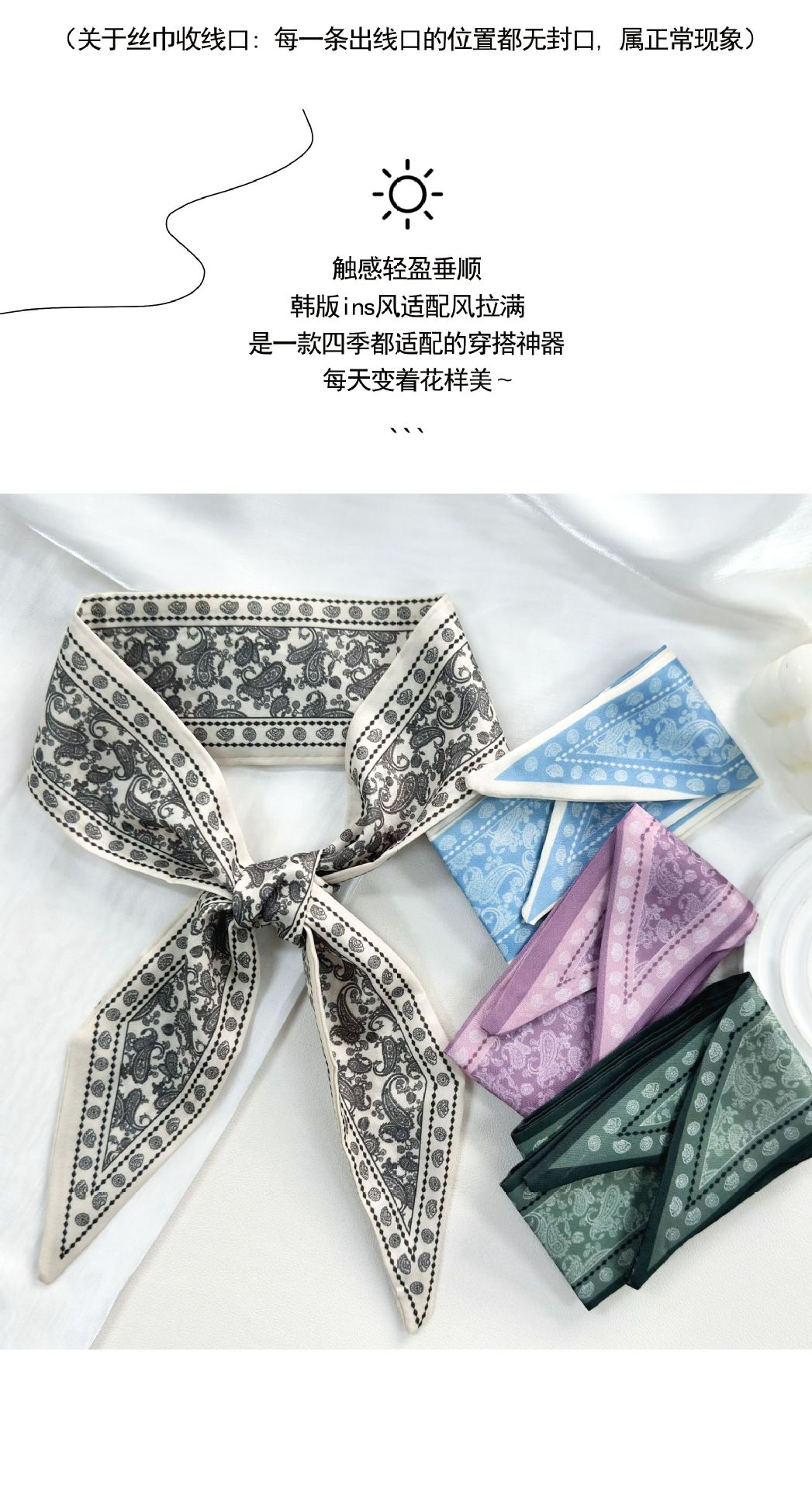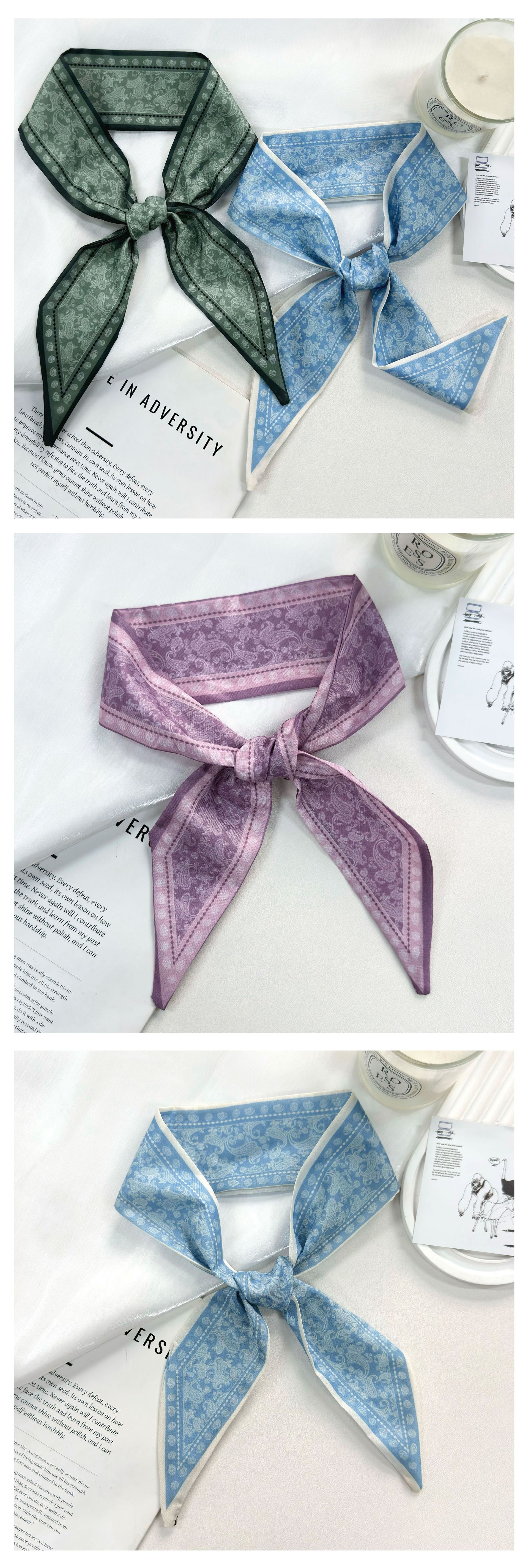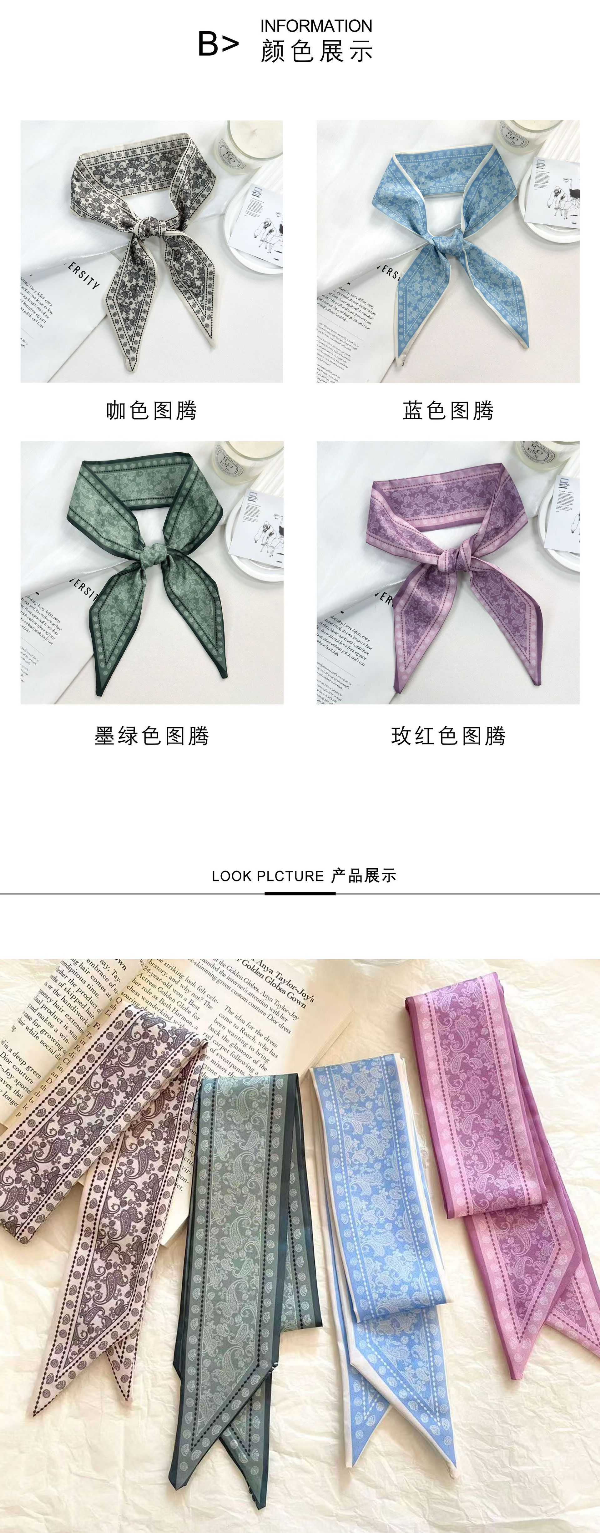 프랑스 스타일 레트로 플로랄 실크 스카프 2024 새로운 올 매치 스카프 넥타이 가방 핸들 장식 우아한 헤어 밴드 리본