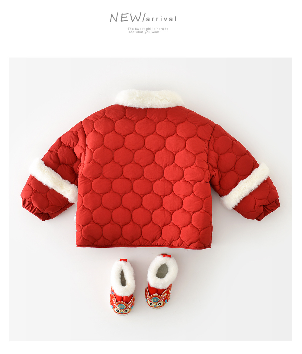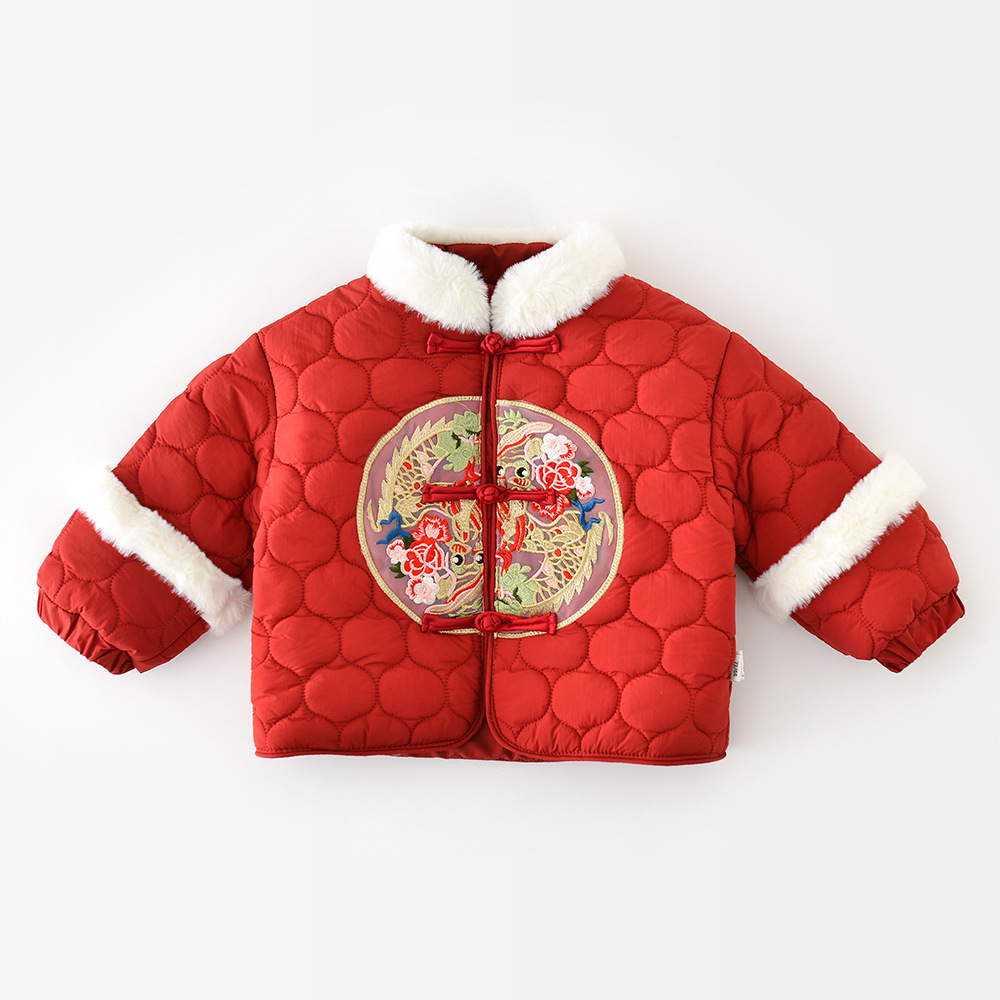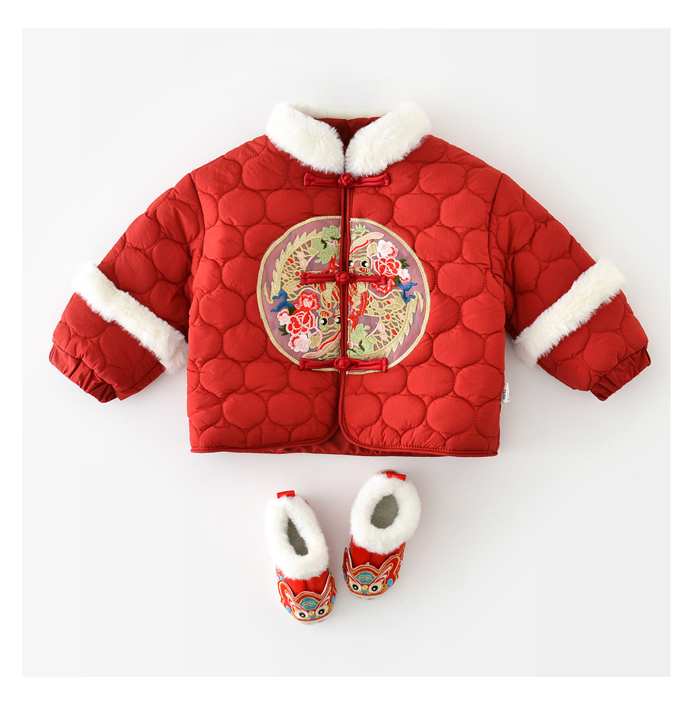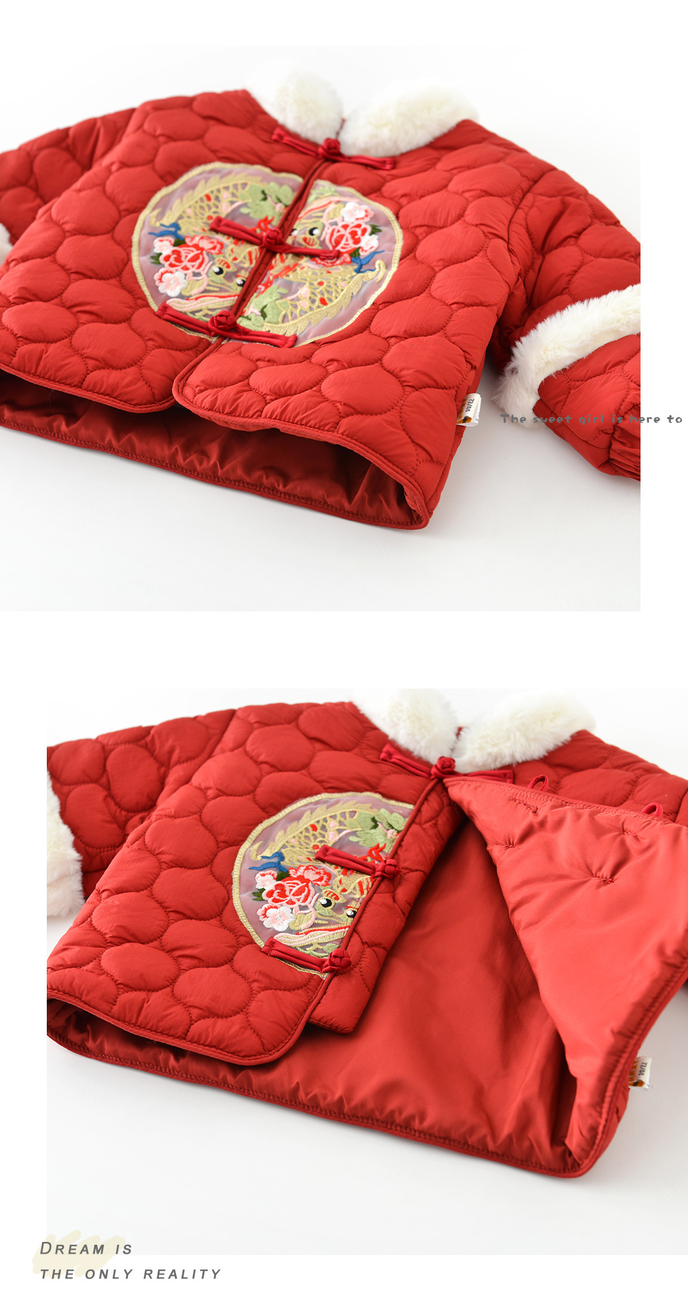 2024 년 새해 방풍 따뜻한 어린이 연차복 버클과 모피 95771 어린 아이들의 중국 스타일 코트스토어 가기