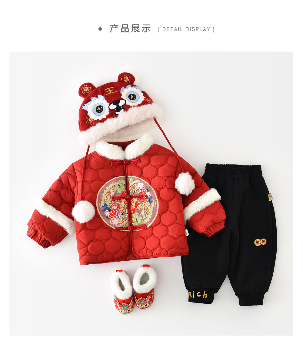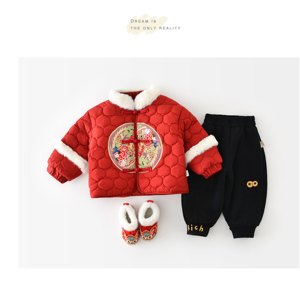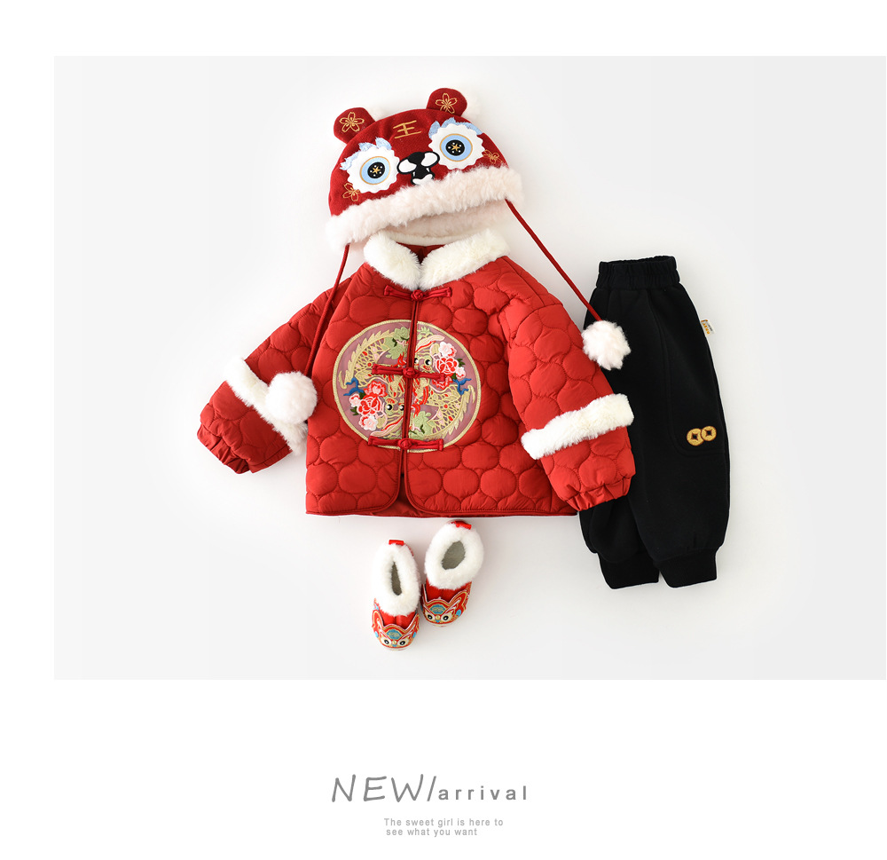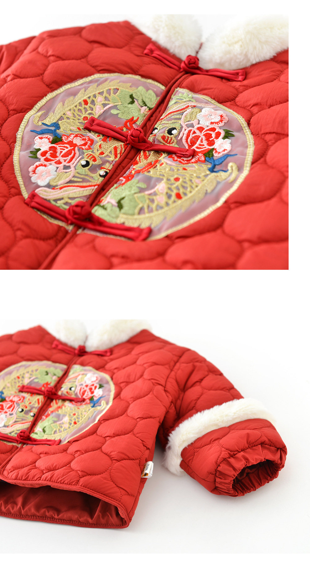 2024 년 새해 방풍 따뜻한 어린이 연차복 버클과 모피 95771 어린 아이들의 중국 스타일 코트스토어 가기